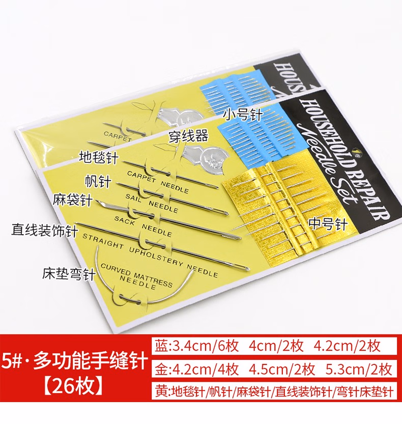 威安家用缝衣针缝被子针毛衣十字绣针缝纫针手工针线手缝针大号线针盒 黑色金尾手缝针一盒