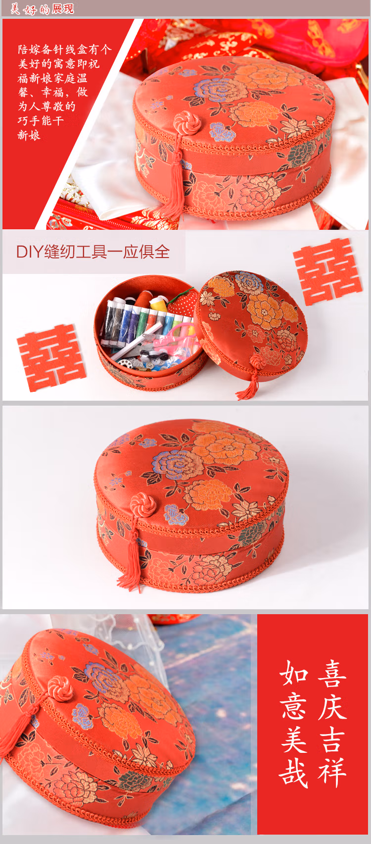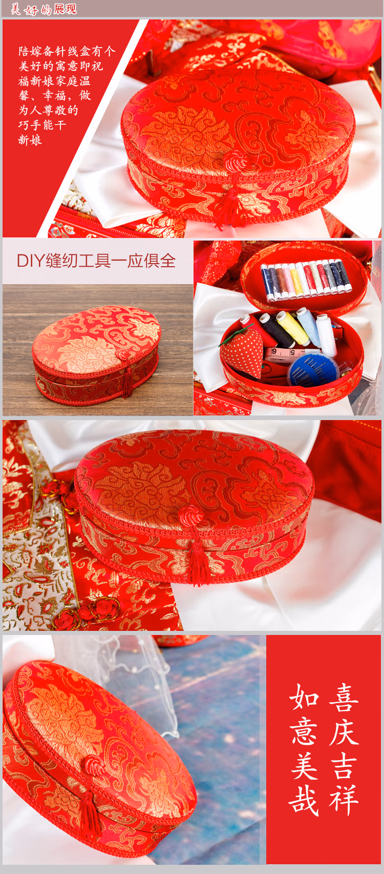 好俏俏针线盒结婚针线包家用针线包套装婚庆嫁妆新娘用百宝箱带针线 国风牡丹
