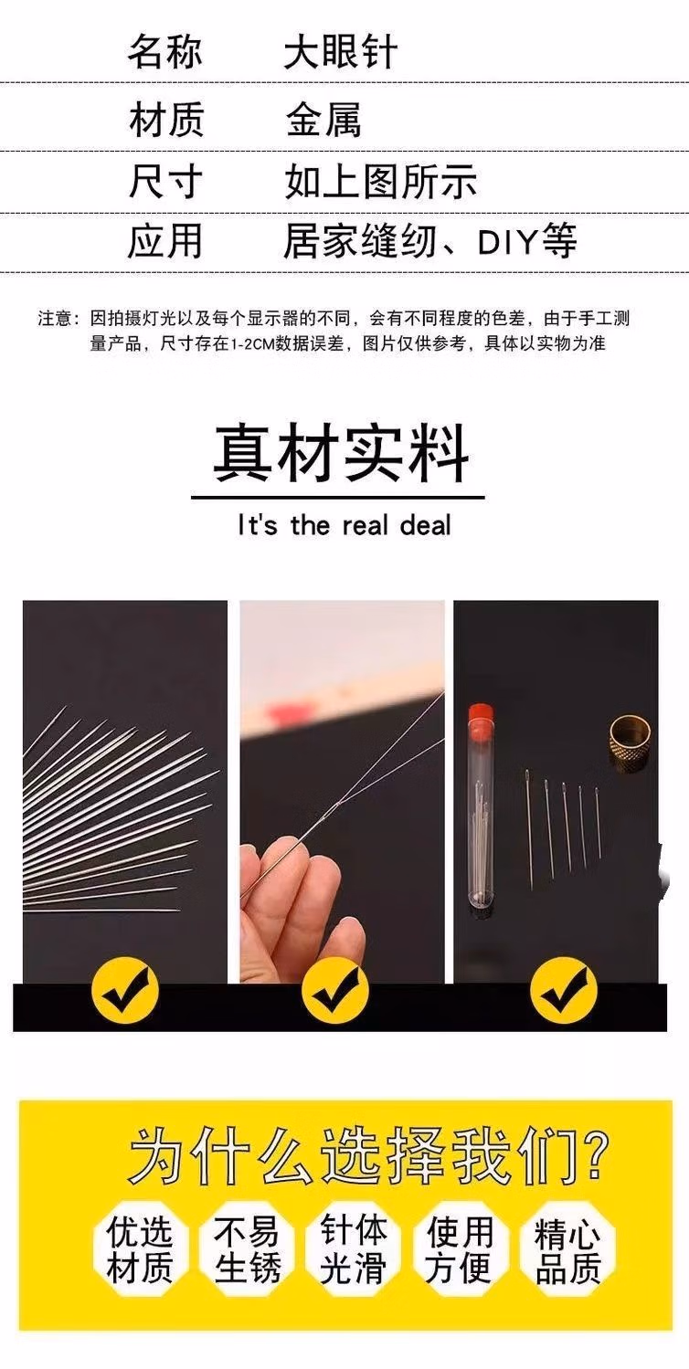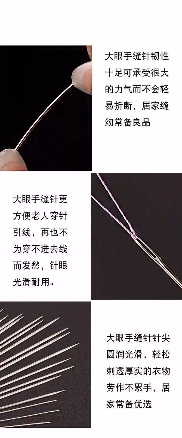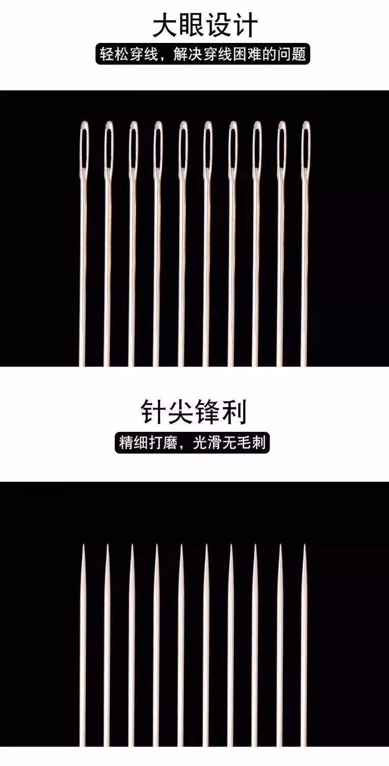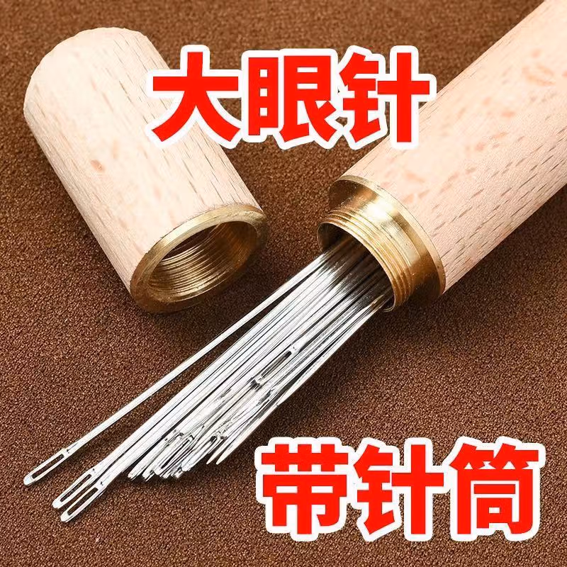 大眼针手缝针老人针家用大眼细长传统手工缝衣缝被子木桶针线盒缝薄被子-6厘米 木桶顶针 50根一件