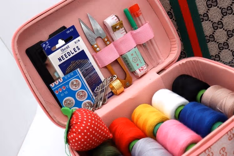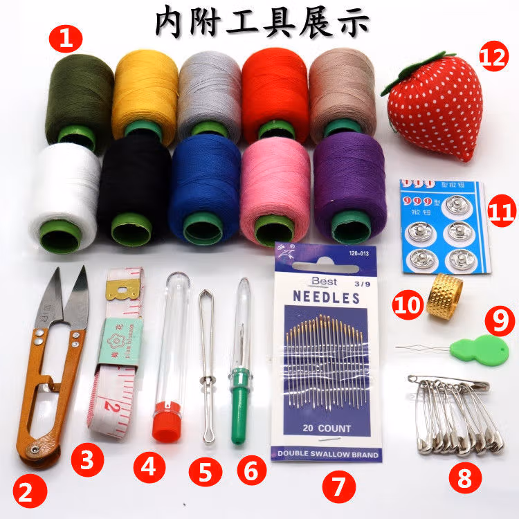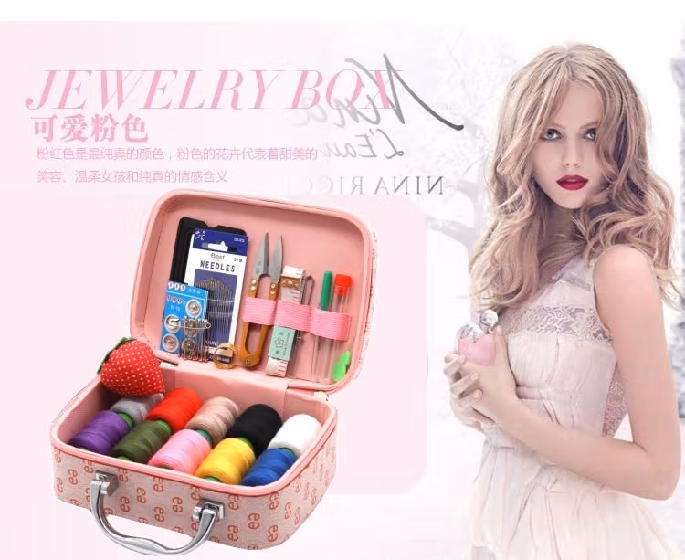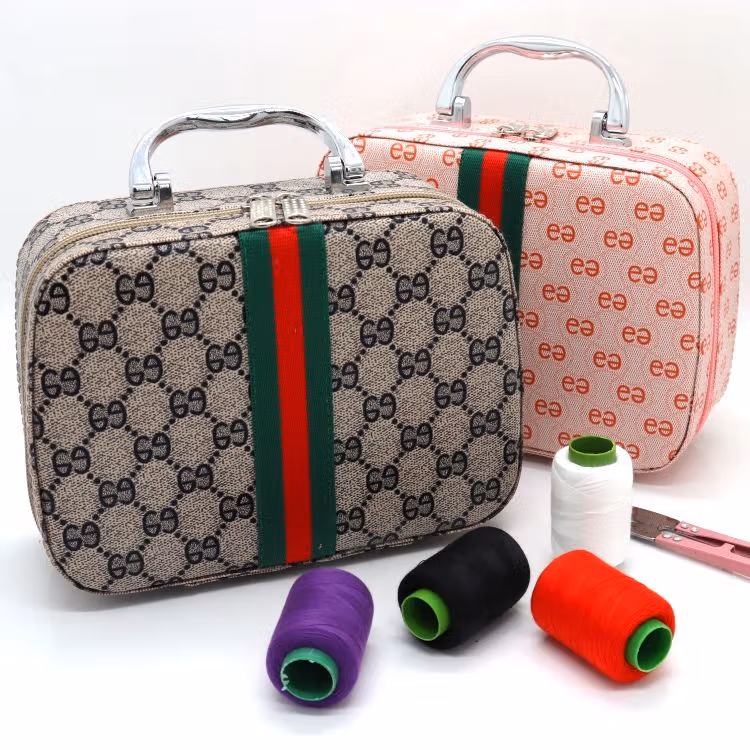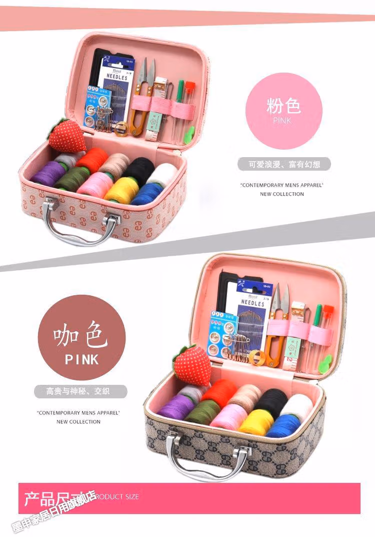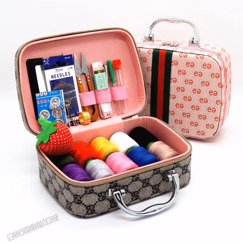 针线家用针线盒套装手提便携式针线工具收纳箱手工缝补衣服针线包针线箱套装-(咖色)