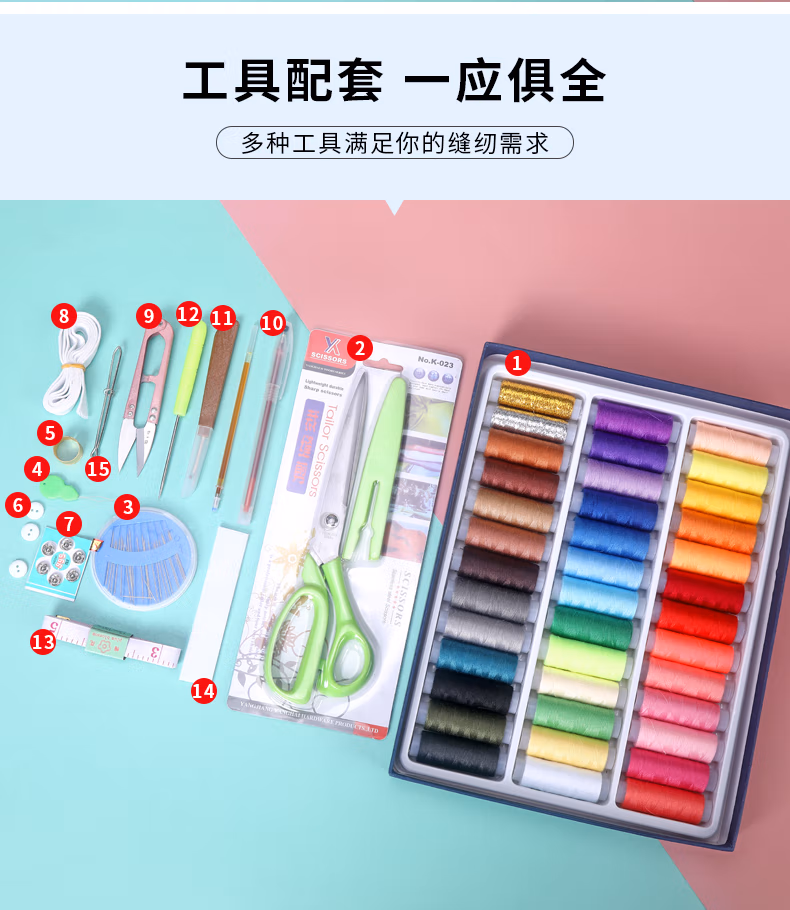 鸿迪针线盒套装多功能家用针线包手缝便携缝补针线工具衣服线缝纫线缝纫机线套装含多种色线配件套装含多种配件