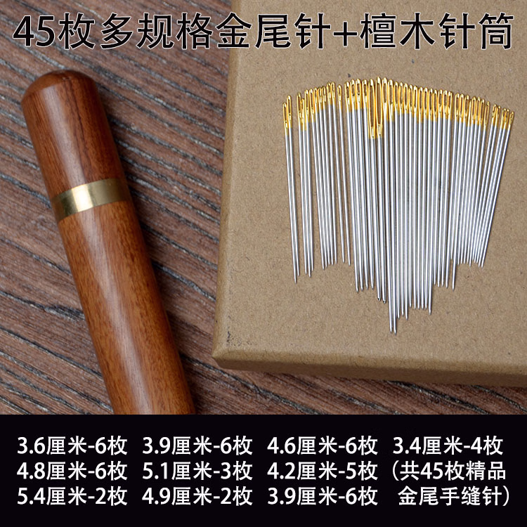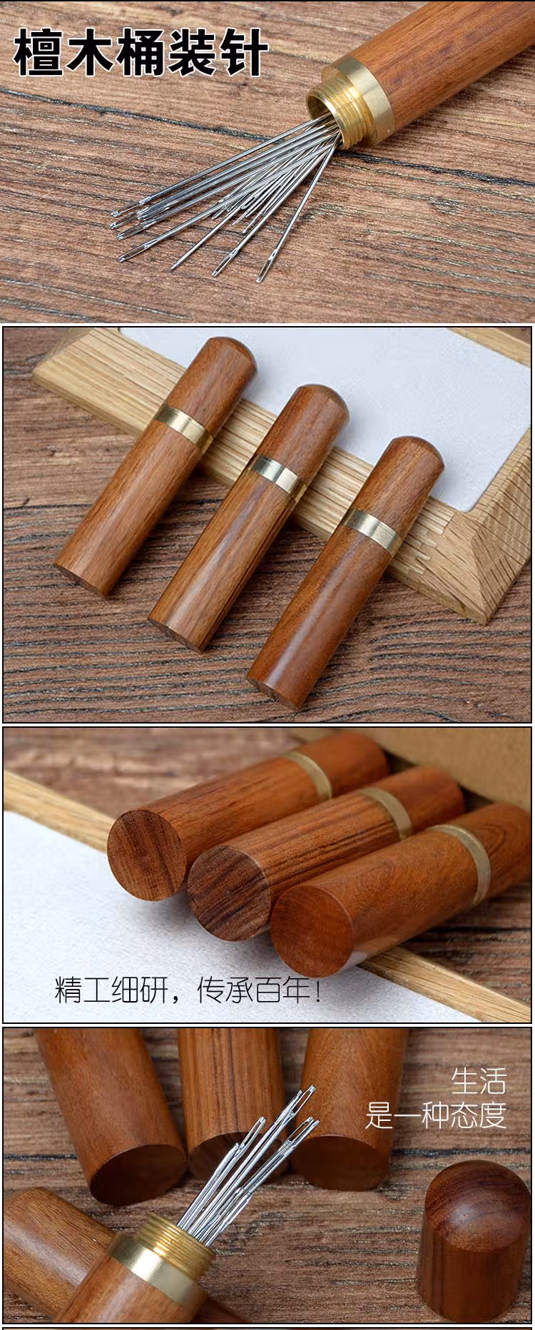 檀木圆筒精装针缝衣针家用手缝针手工绣花缝被子钢针衣服针线45枚多规格手缝针 檀木桶一个