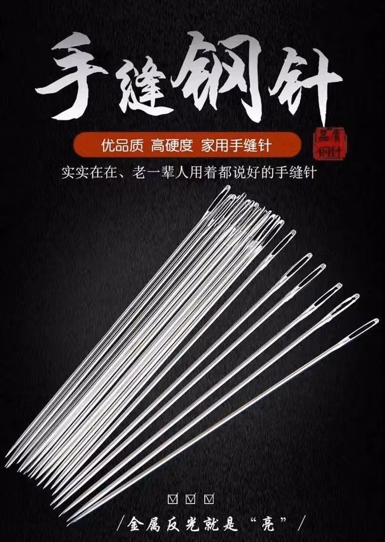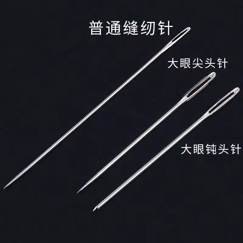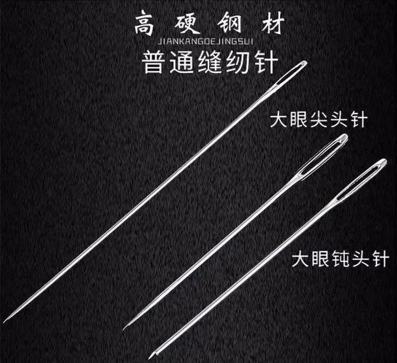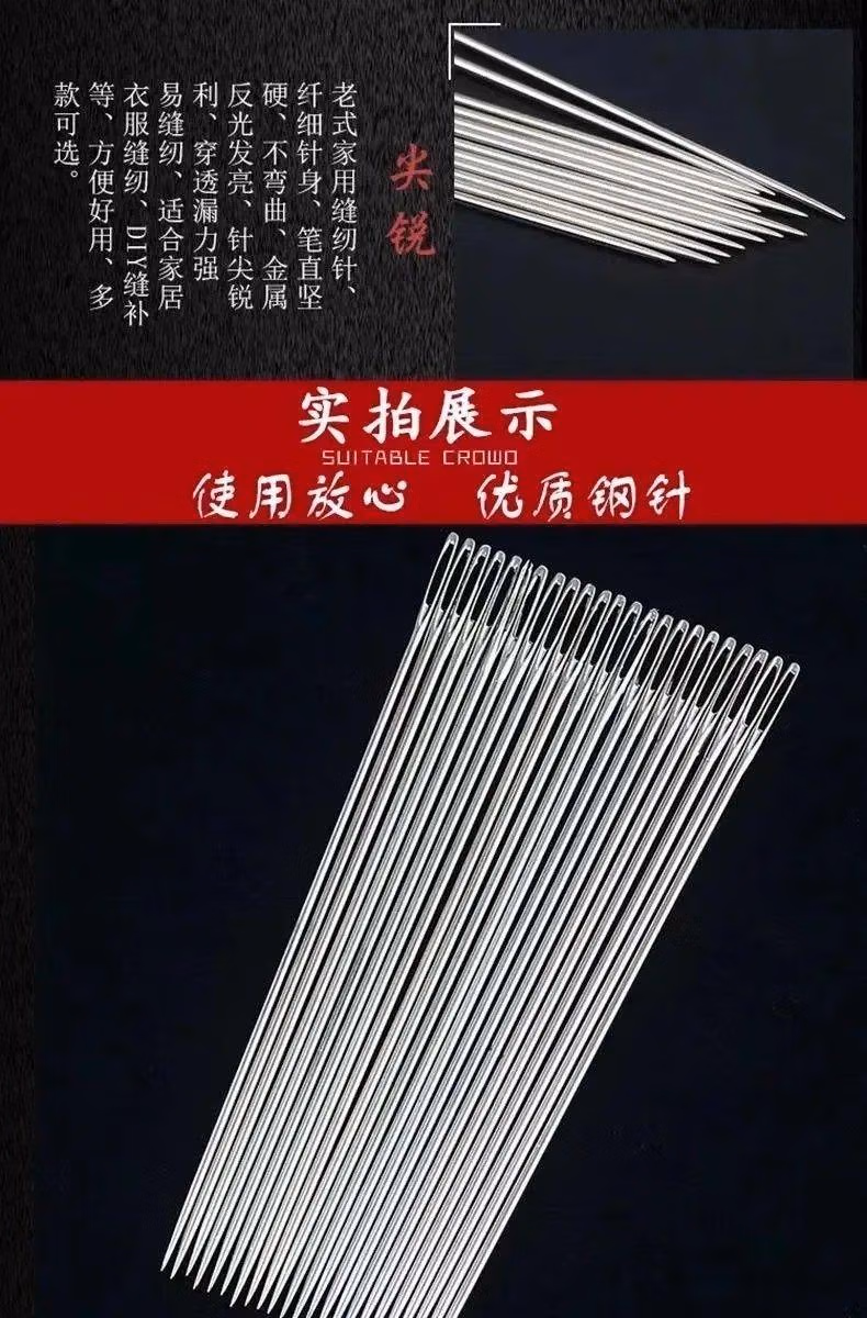 大眼针手缝针老人针家用大眼细长传统手工缝衣缝被子木筒针线盒24根 檀木桶装送顶针 五种尺寸混合大眼针