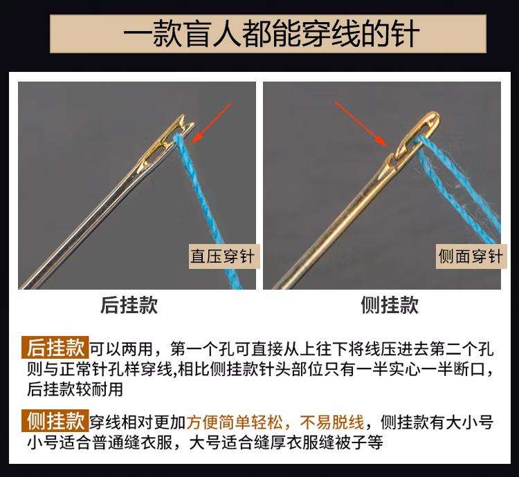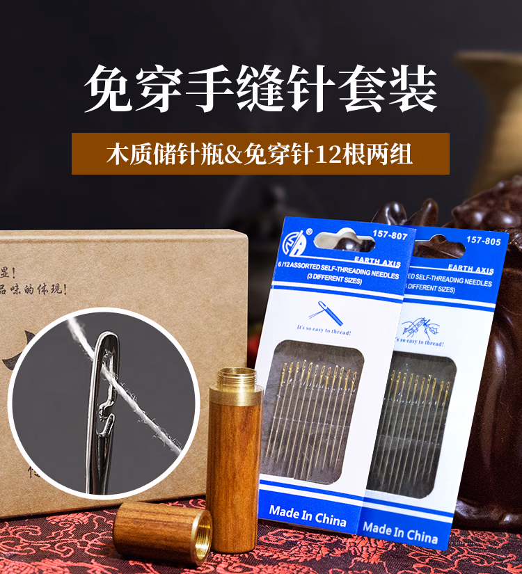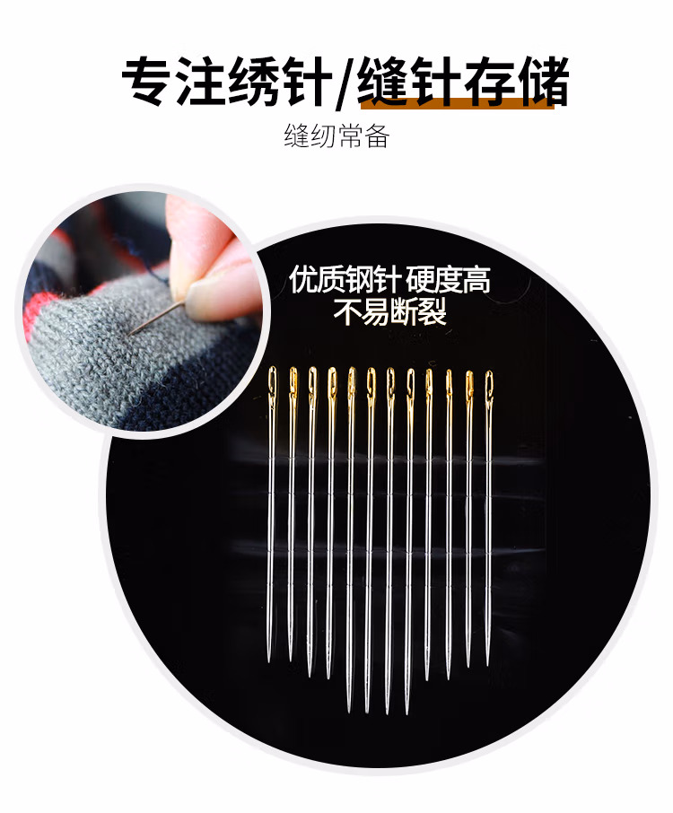 班哲尼针线盒家用手缝被子衣服金尾免穿针多用途旅行便携缝纫缝补工具针线包手工十字绣针筒 24枚套装