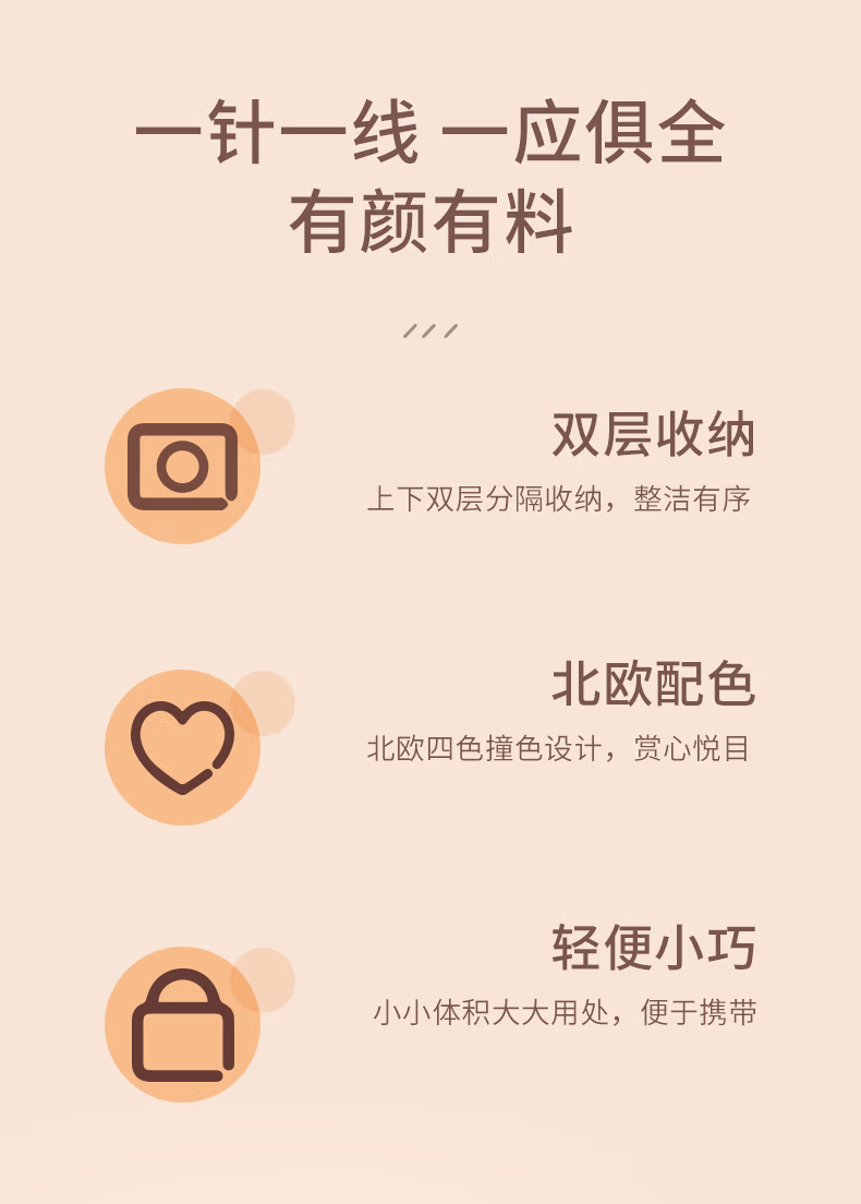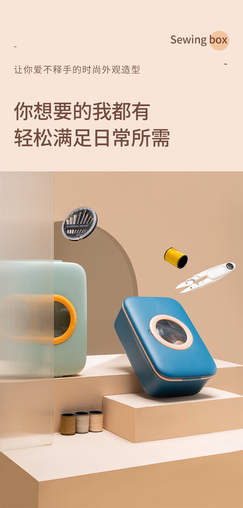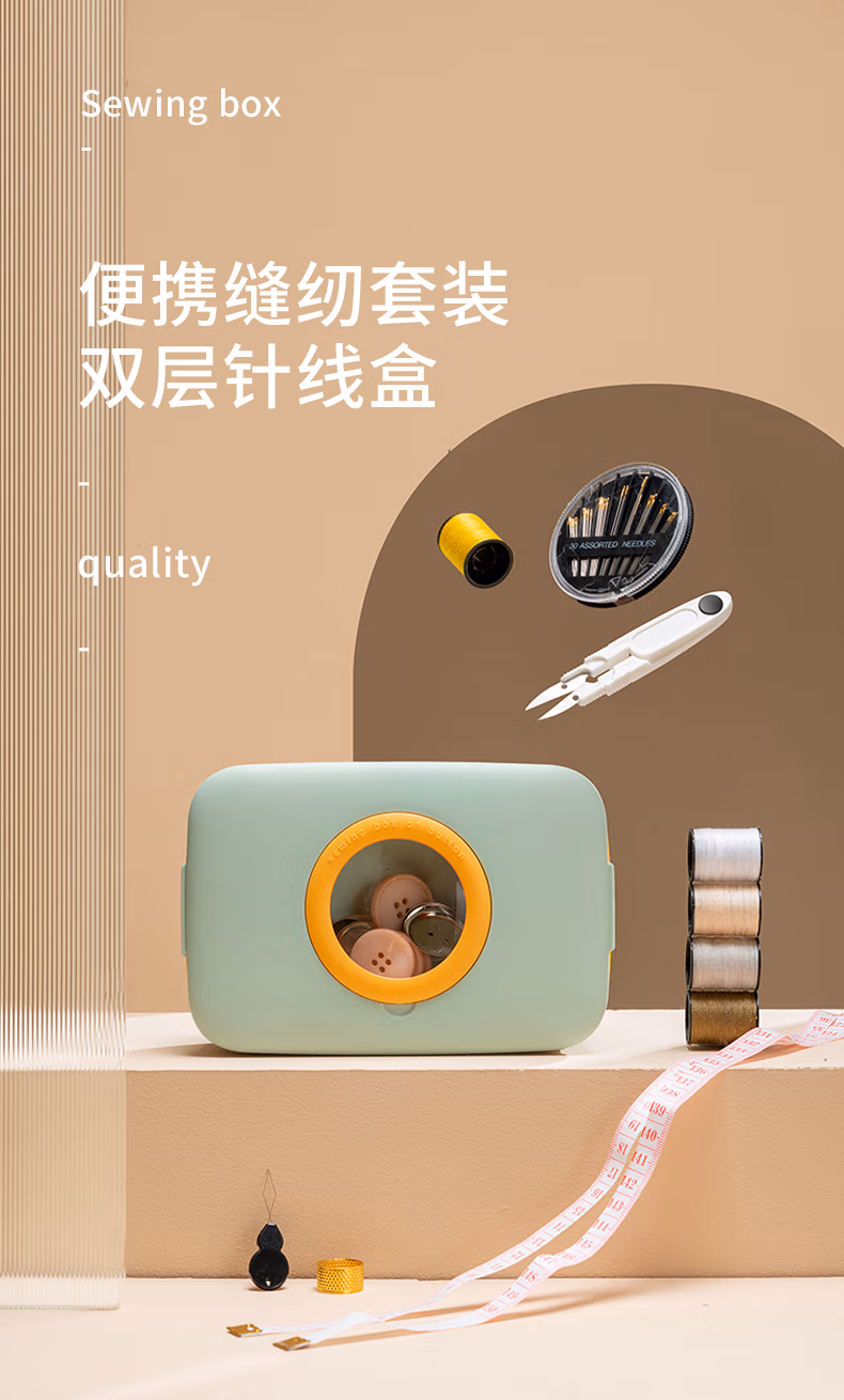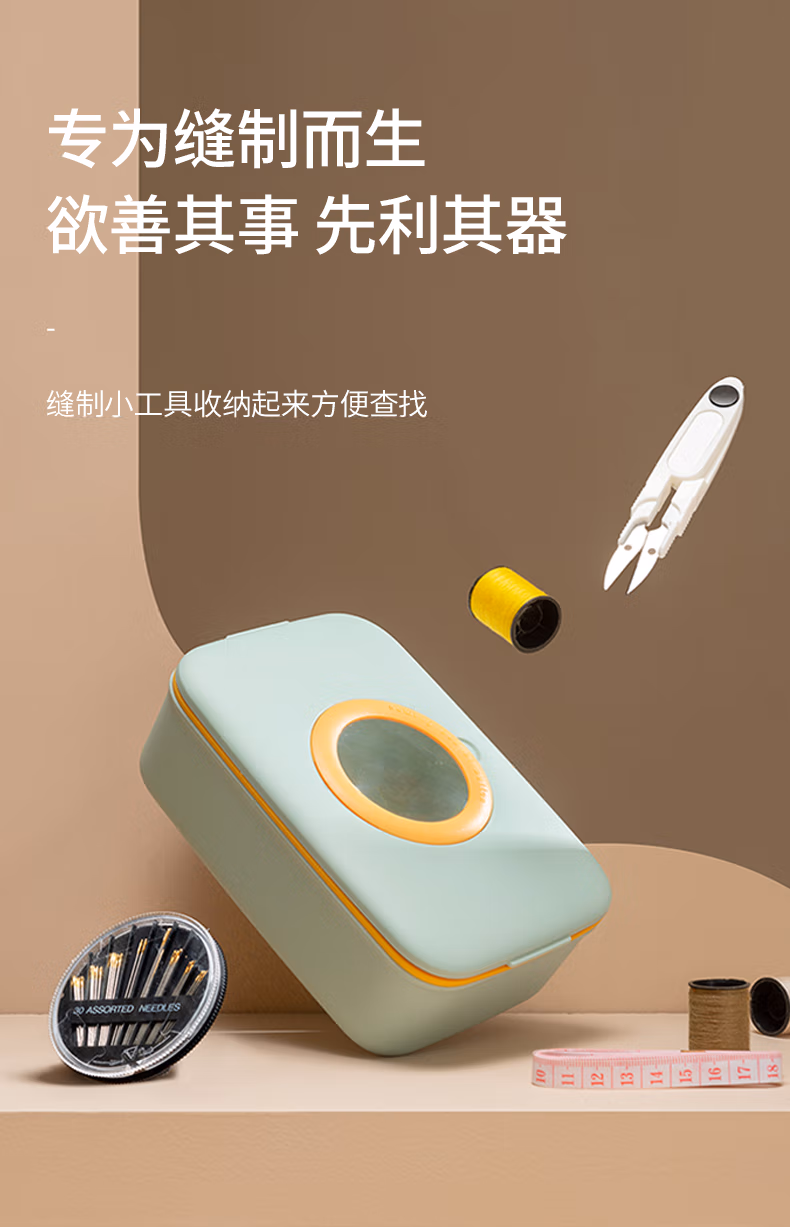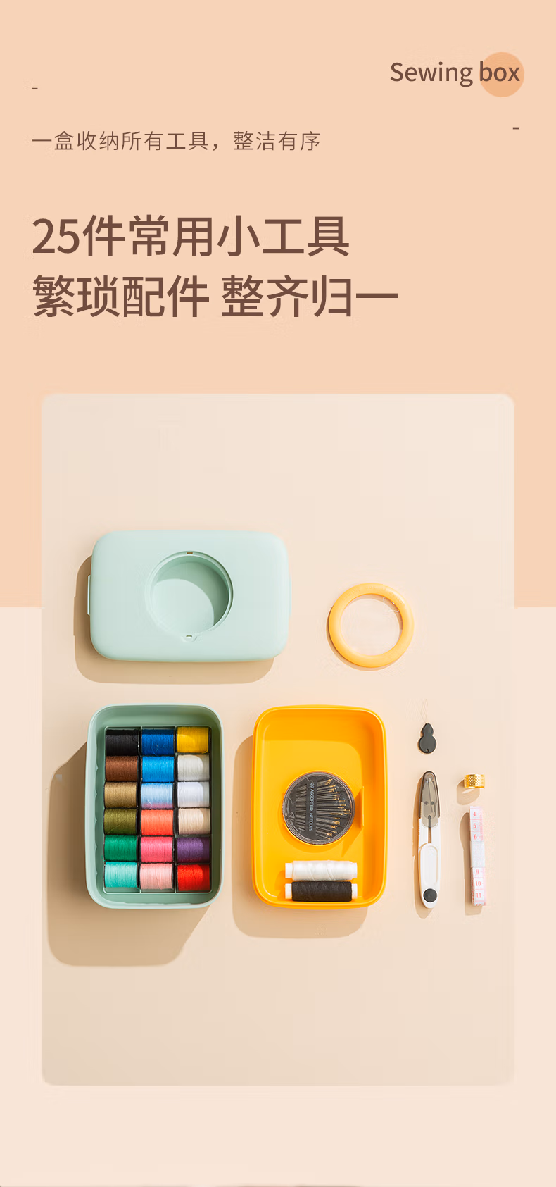 洁神家用针线盒多功能套装手工收纳针线盒大容量小手缝针线包套装学生宿舍便携式 北欧黄【25件套针线盒套装】