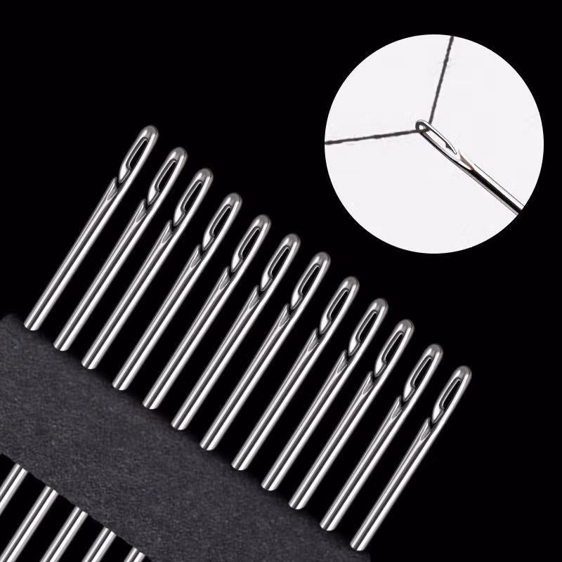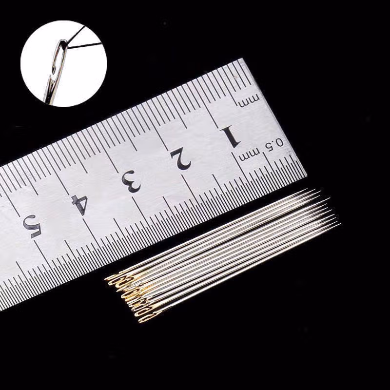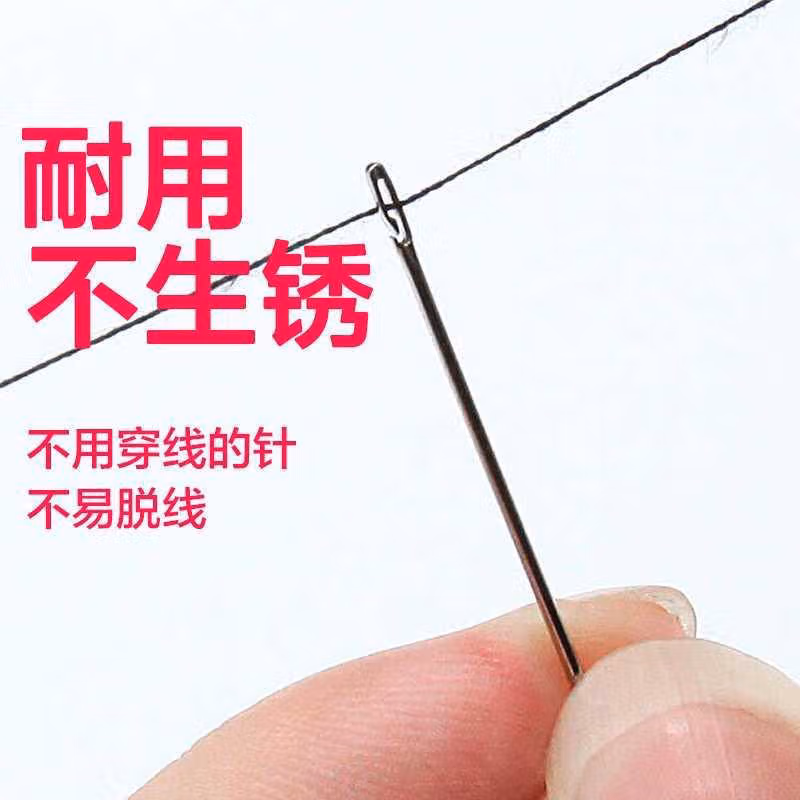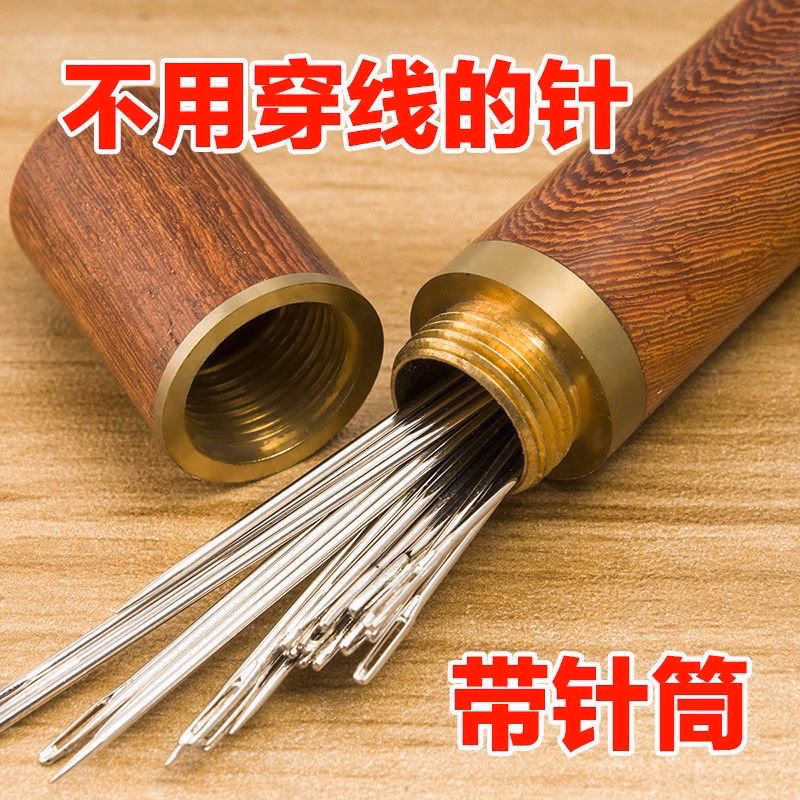 2022新款可狄(kedi) 老人不用穿线的针免穿针免认盲人针家用缝衣针木筒手缝针线盒套装, 10【檀木针筒装】 侧穿针-6个尺寸混合