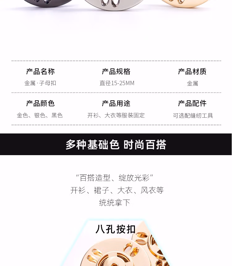 【6付装】星恒梦大衣暗扣金属扣上衣纽扣子母扣摁扣隐形防走光风衣羊绒衣服按扣百搭 21mm 黑色【6付 针线包 收纳盒】