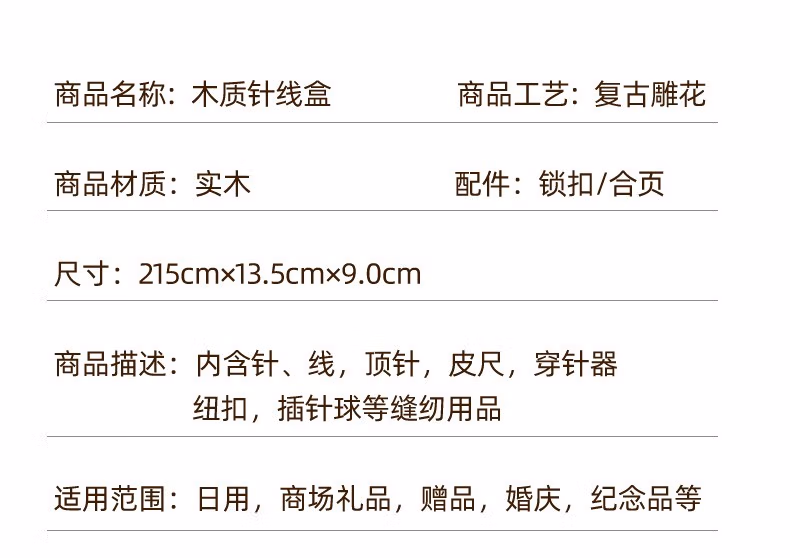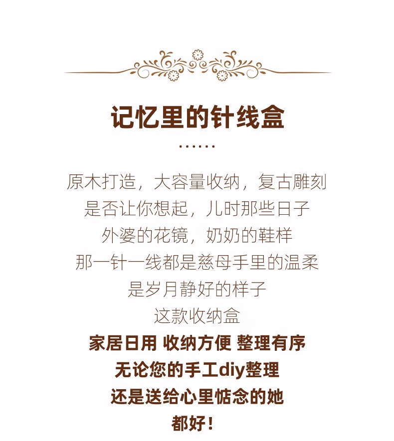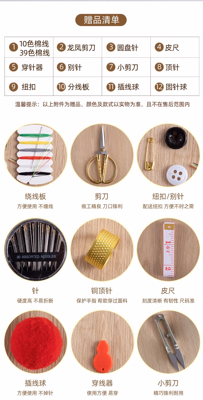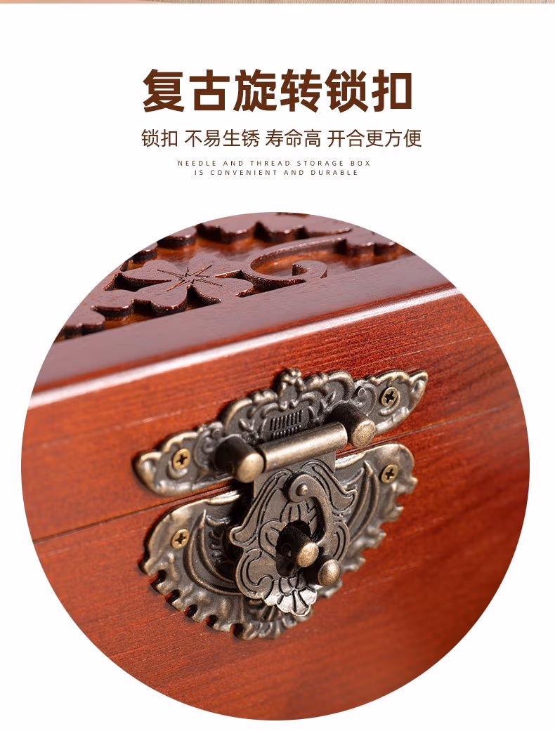 家用实木针线盒高档多功能结婚高质量大容量实用针线包收纳盒套装雕花实木针线盒套装(10色线)