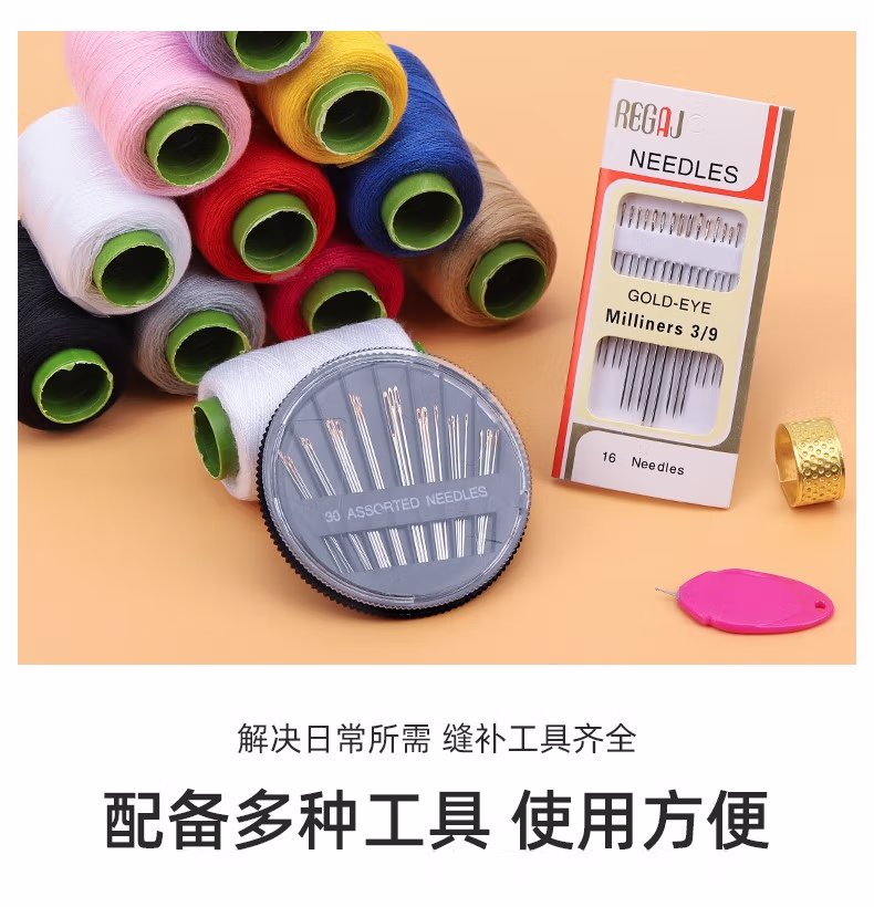 柒蓝家用缝纫线缝补衣服针线套餐手工diy缝补线黑白手缝线彩色缝衣线 黑白线 黑盒针 顶针 穿针器