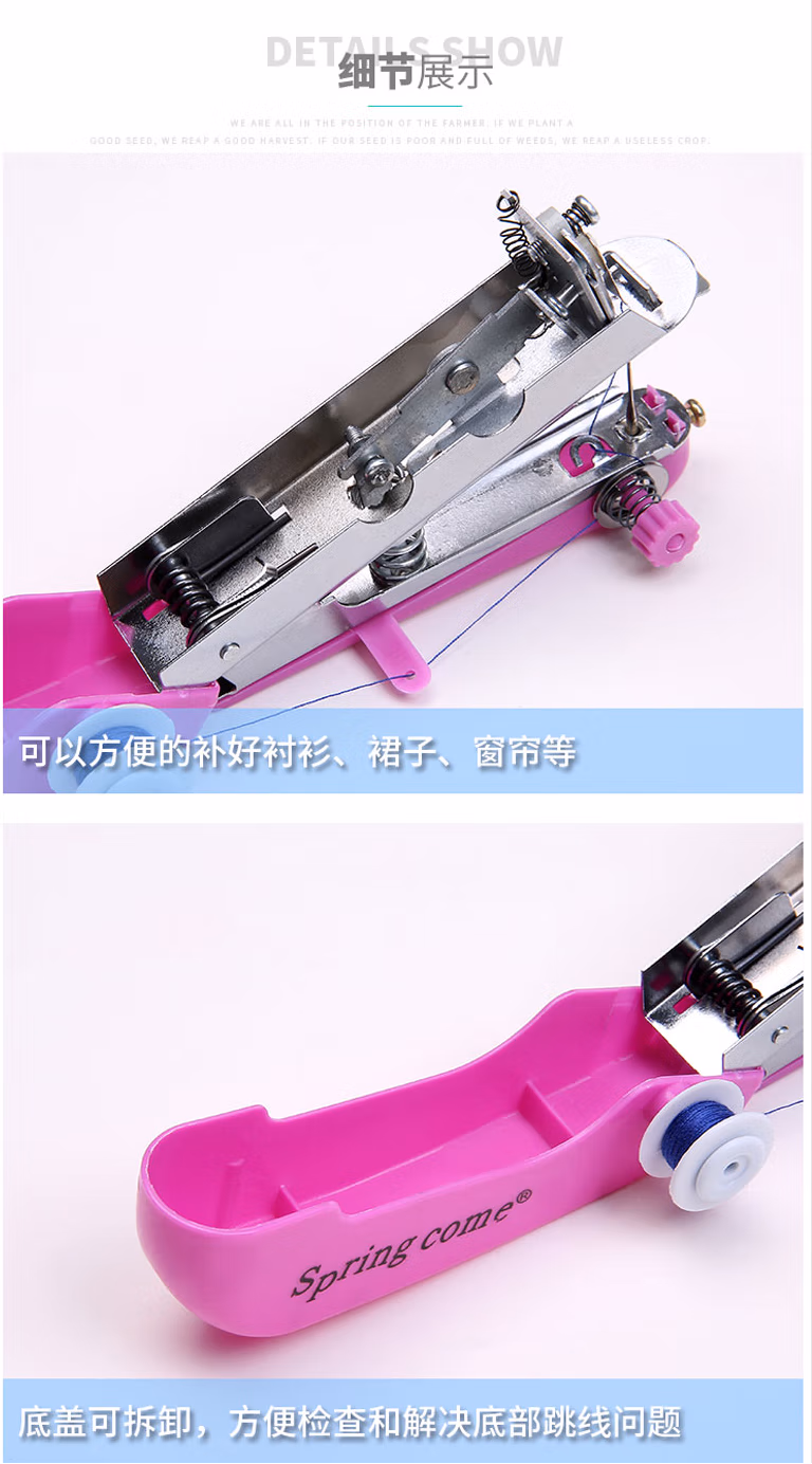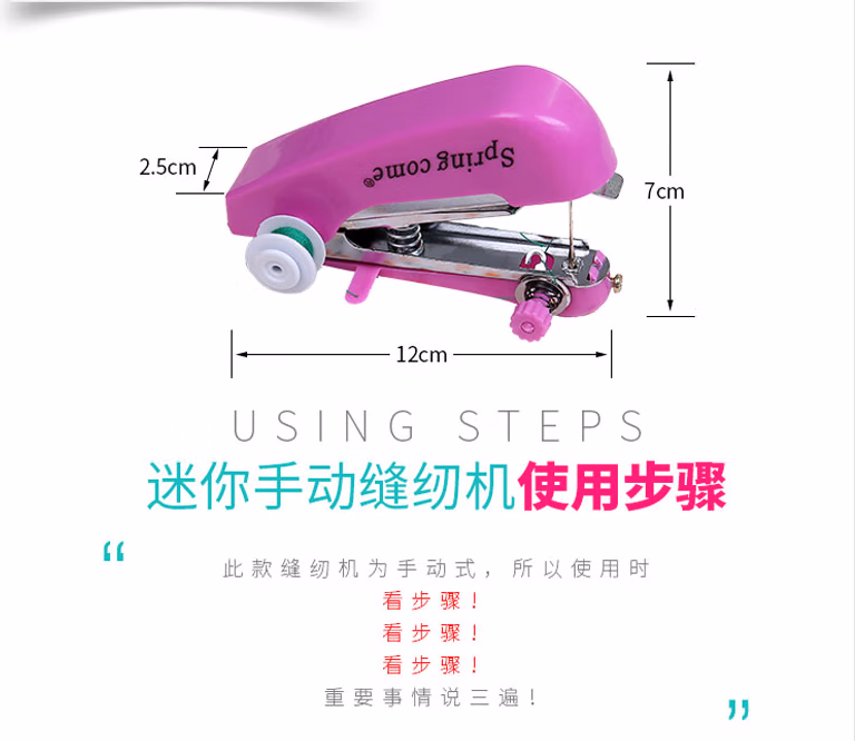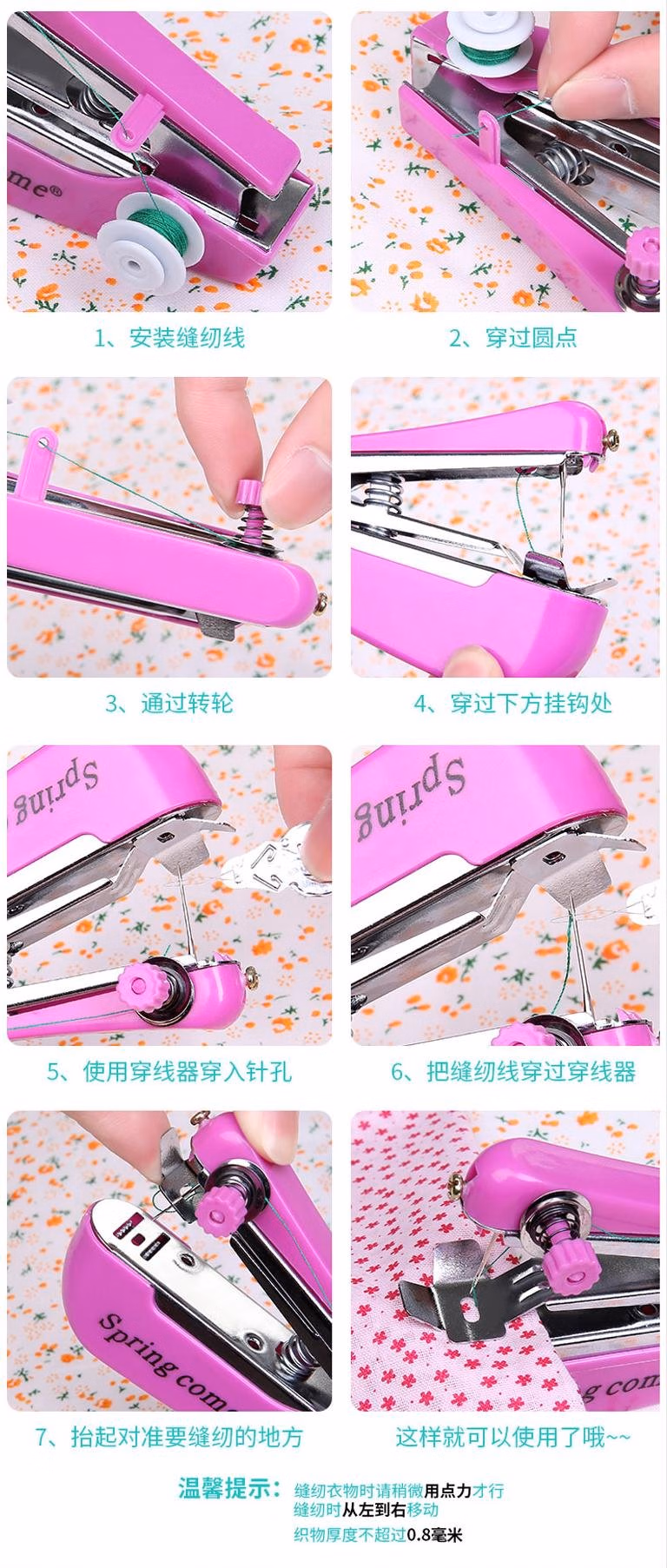 朗栩莲手动缝纫机迷你全自动手持便携式家用小袖珍型吃厚缝衣机套装升级加强版针线盒15件套 缝纫机组合套装