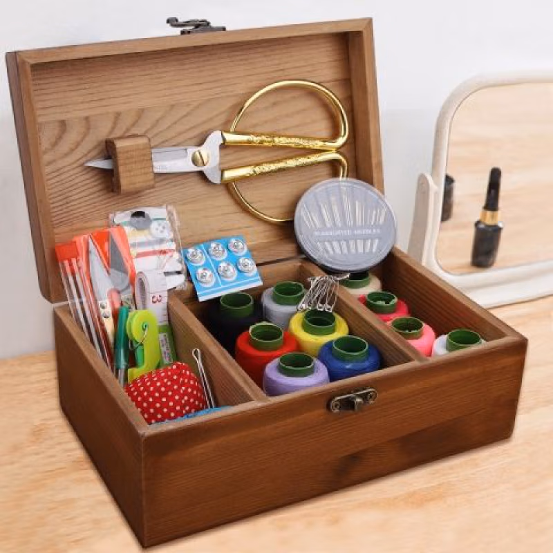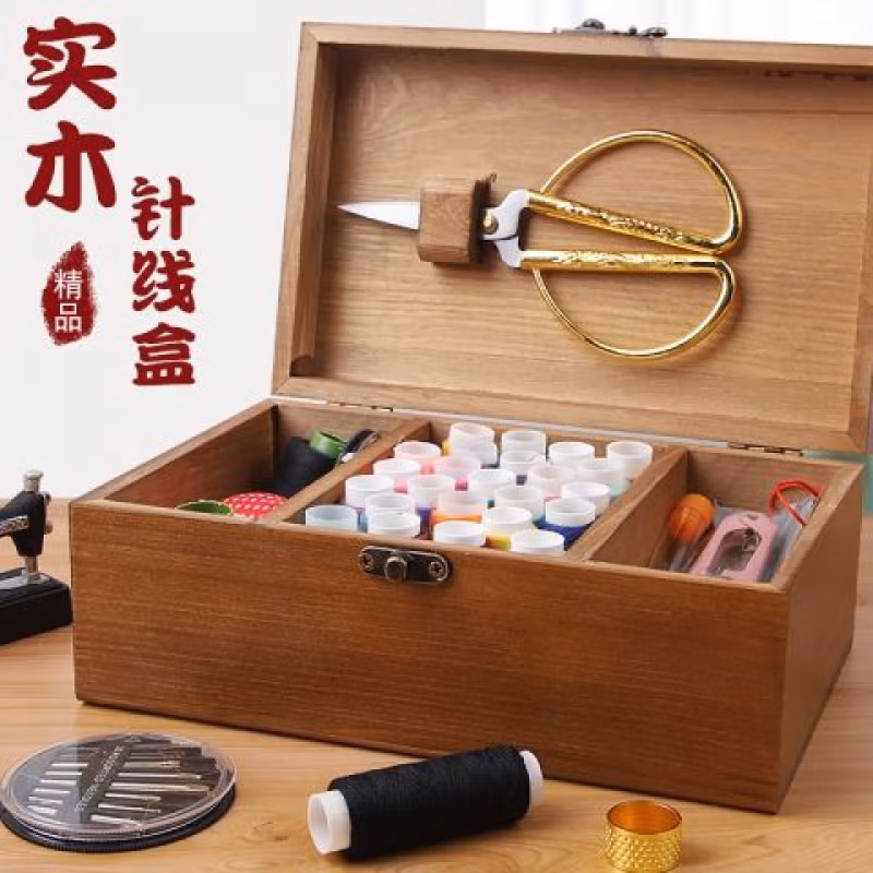 针线盒家用针线盒实木针线包小工具便携多功能缝衣针线套装学生宿舍实木针线盒(空盒)