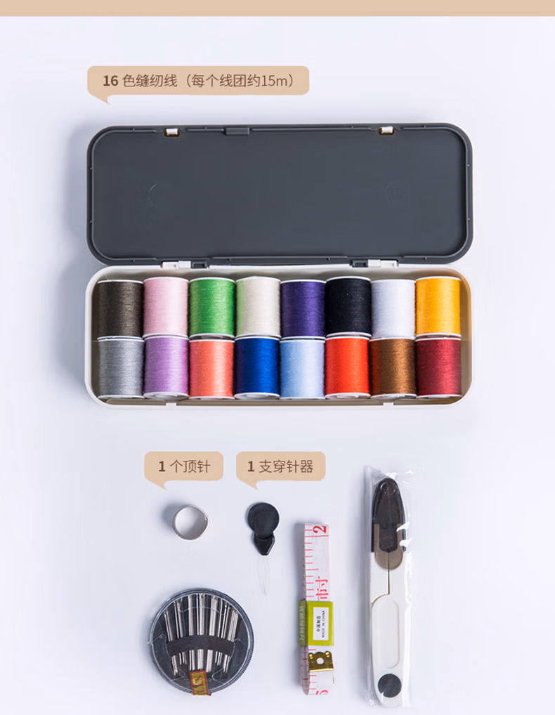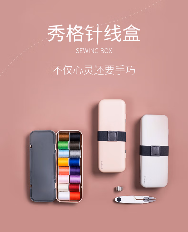 爽居家用针线盒套装 旅行便携式多功能针线包手工缝纫缝补多功能小型工具盒针线收纳盒 浅粉