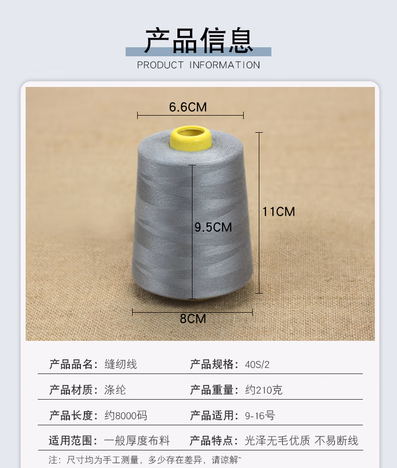 景超富康缝纫线大卷8000码缝衣服线家用手缝线402涤纶宝塔线缝纫机线针线黑色8000码【1卷】