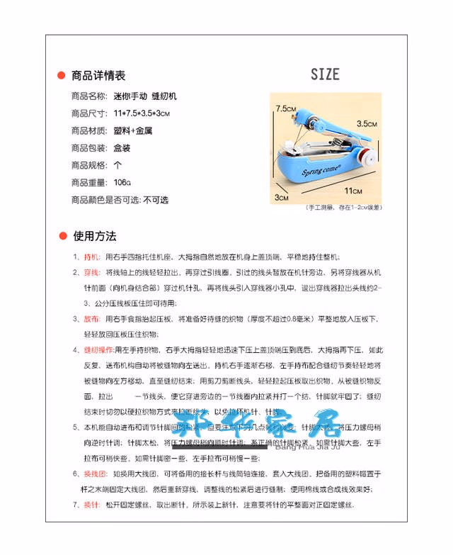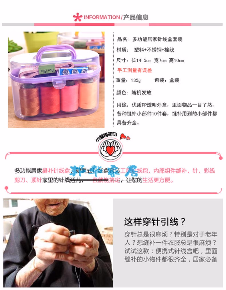 针线盒全套装迷你手动工家用缝衣服不用免穿针的针线包神器上新迷你缝纫机 5根机针