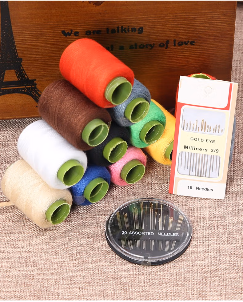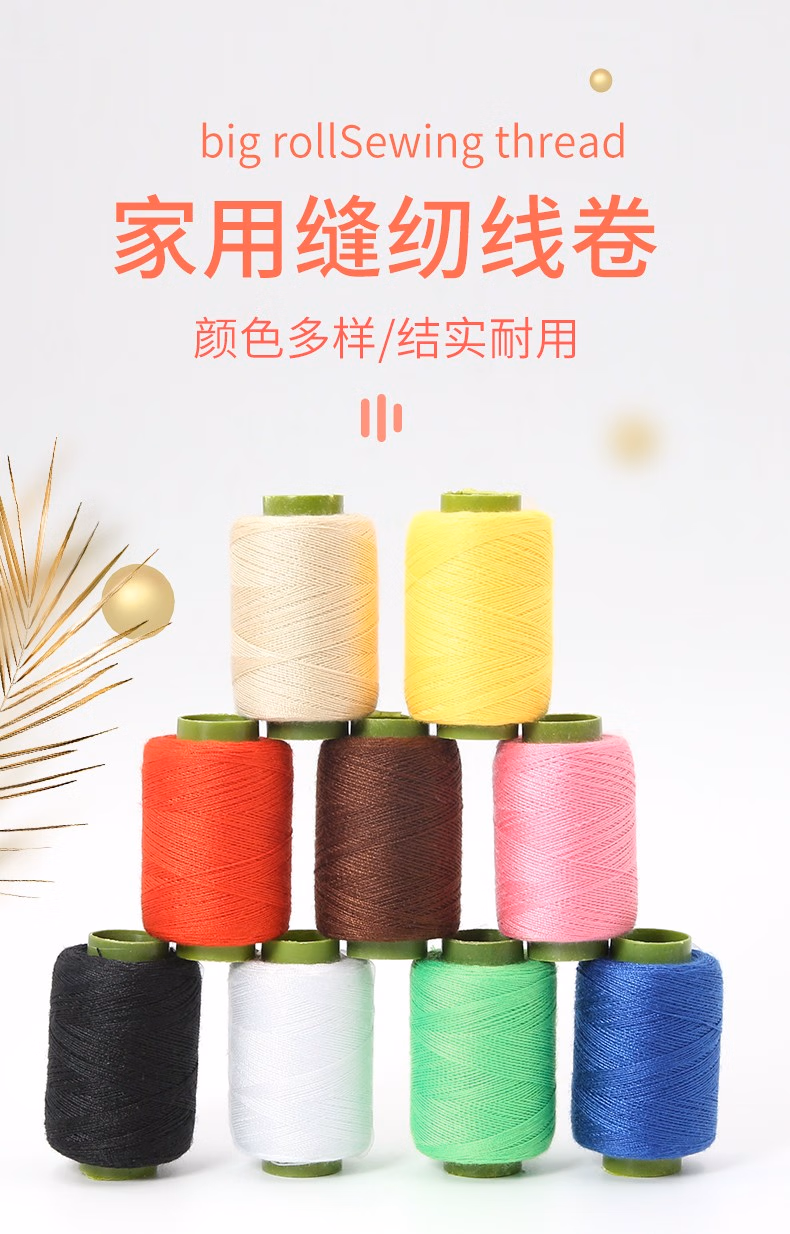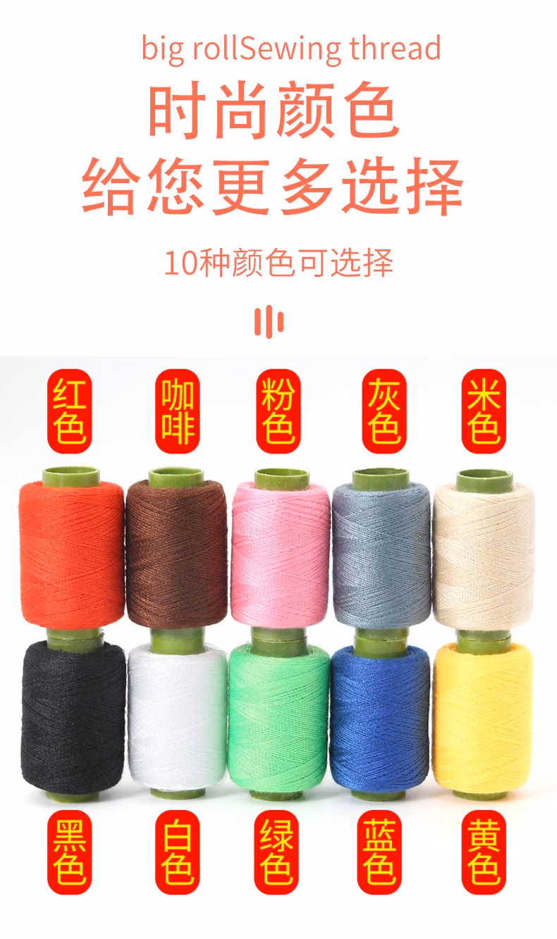 maccoco彩色缝衣线缝纫机线家用手工针线套装302小线卷宝塔线手缝针线盒 黑白红米灰【各1卷】