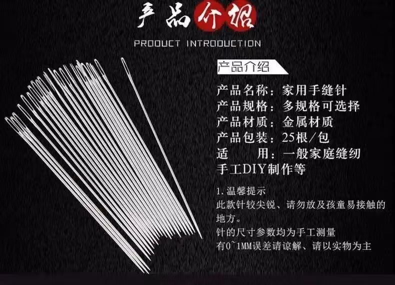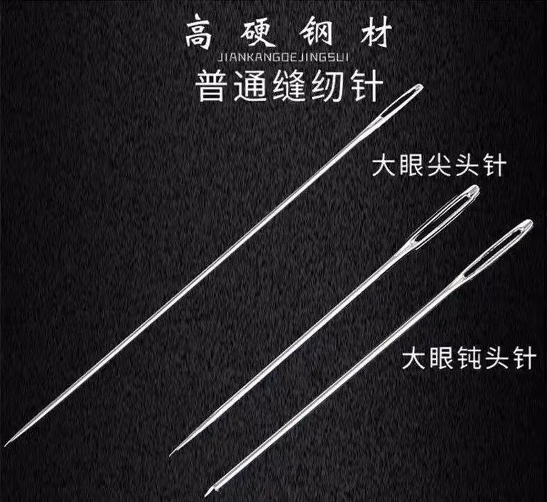 朗栩莲大眼针手缝针老人针家用大眼细长传统手工缝衣缝被子木筒针线盒24根 檀木桶装送顶针 五种尺寸混合大眼针