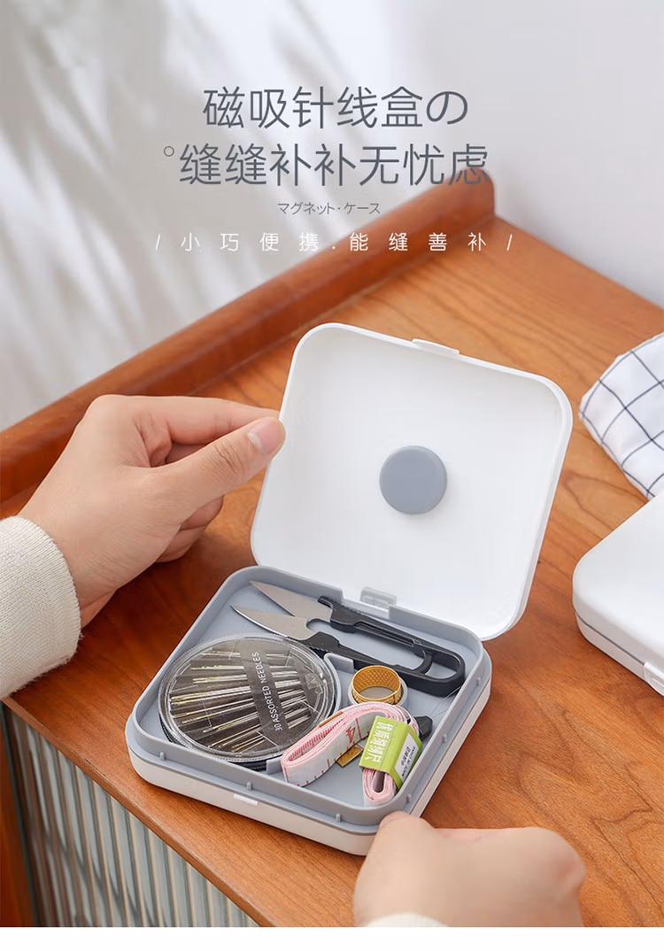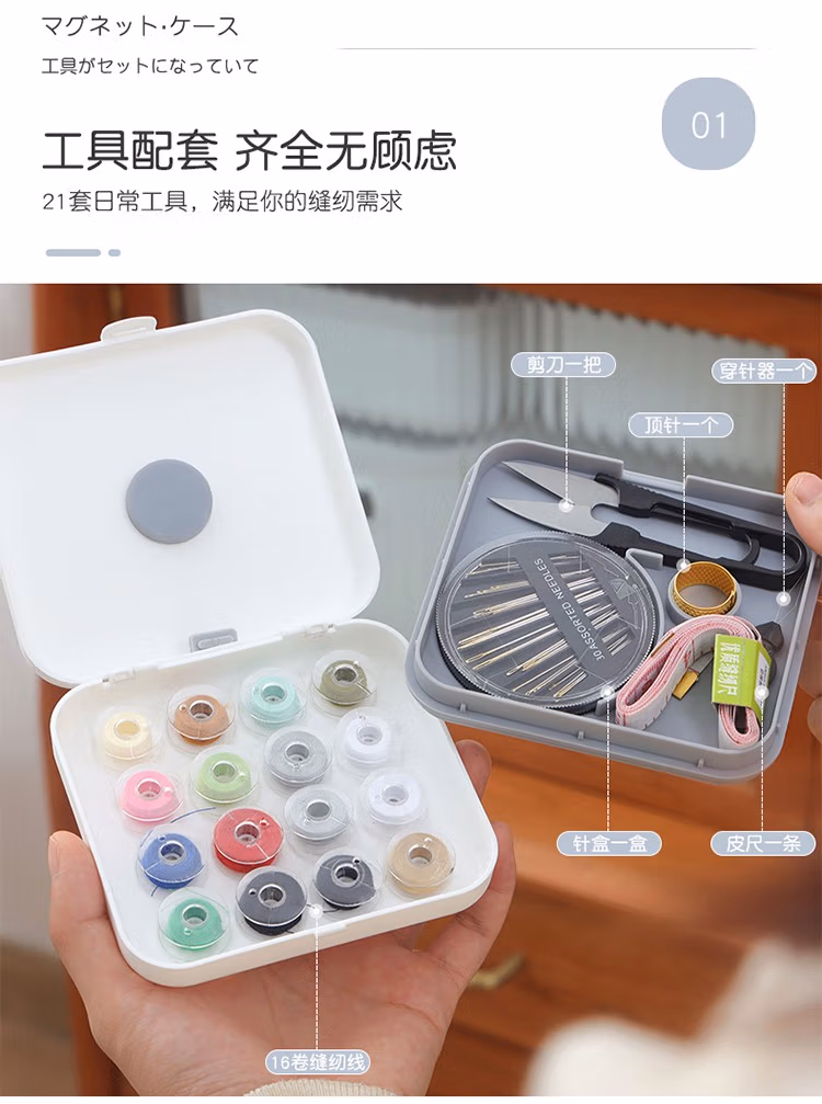 家用针线包旅行针线盒套装缝补针线盒便捷磁吸针线盒手工缝补双层收纳21件套 纳21件套