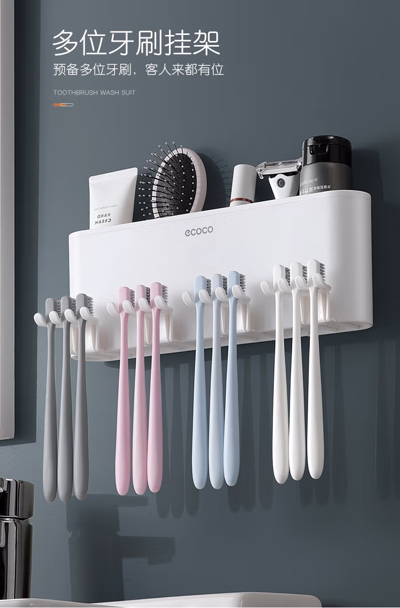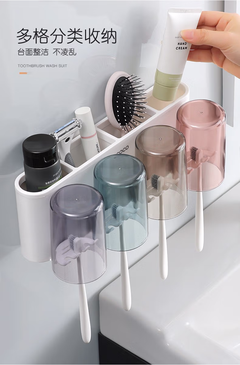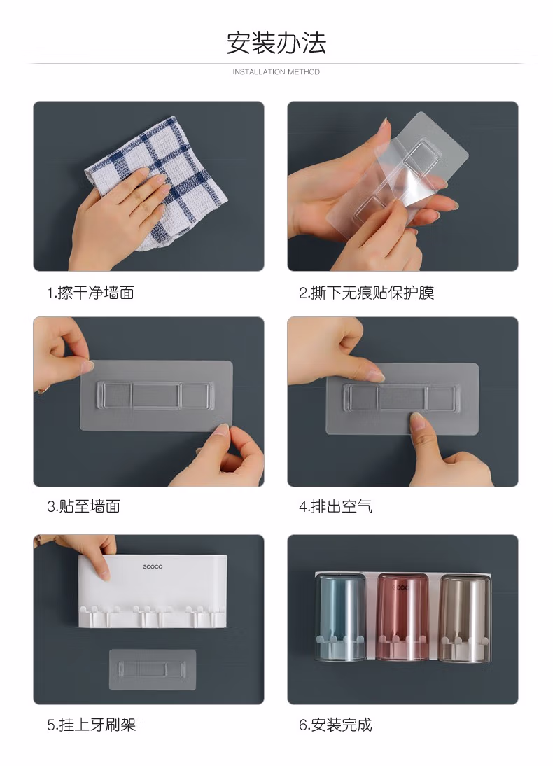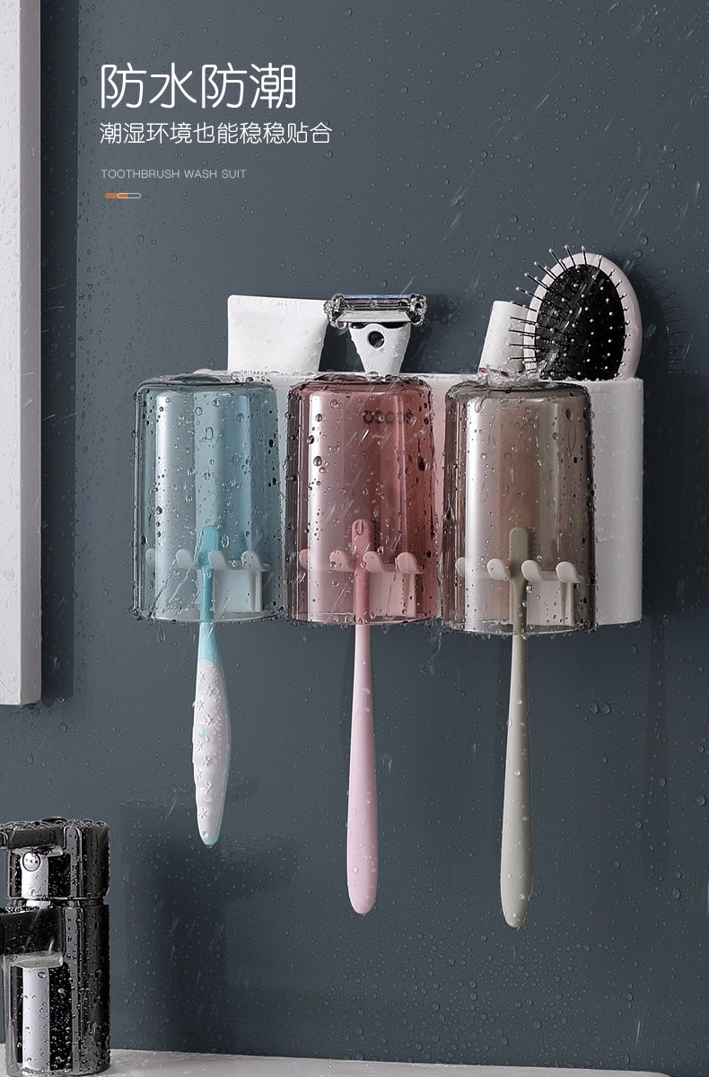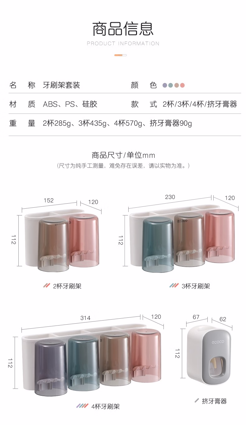 意可可(ecoco)吸盘牙刷架免打孔漱口杯卫生间壁挂式刷牙杯套装浴室洗漱置物架吸壁式牙缸洗漱用品幸福三杯 挤牙膏器(黑色)