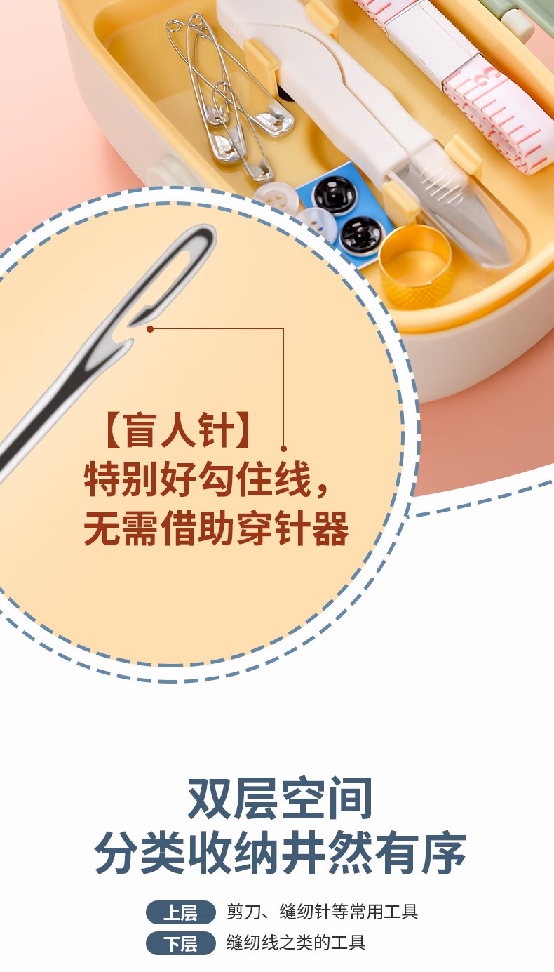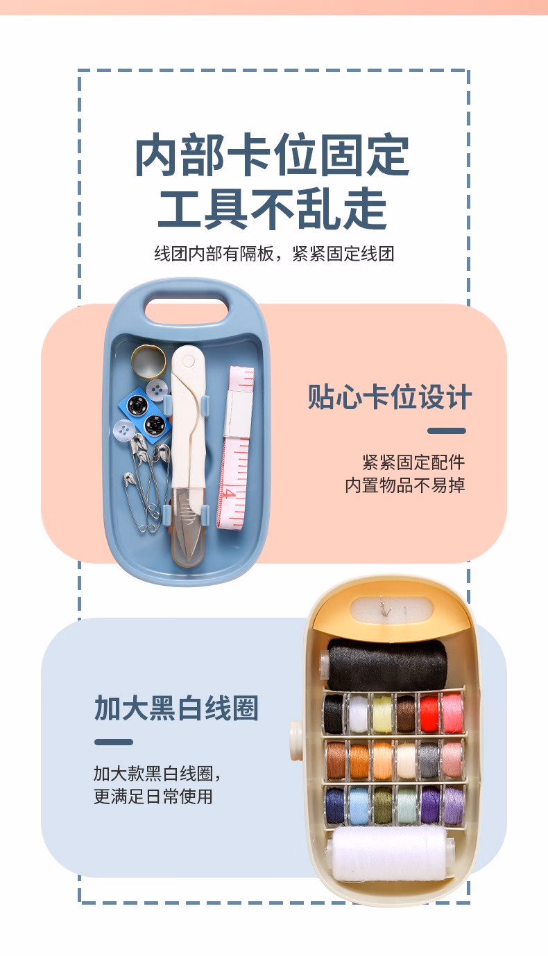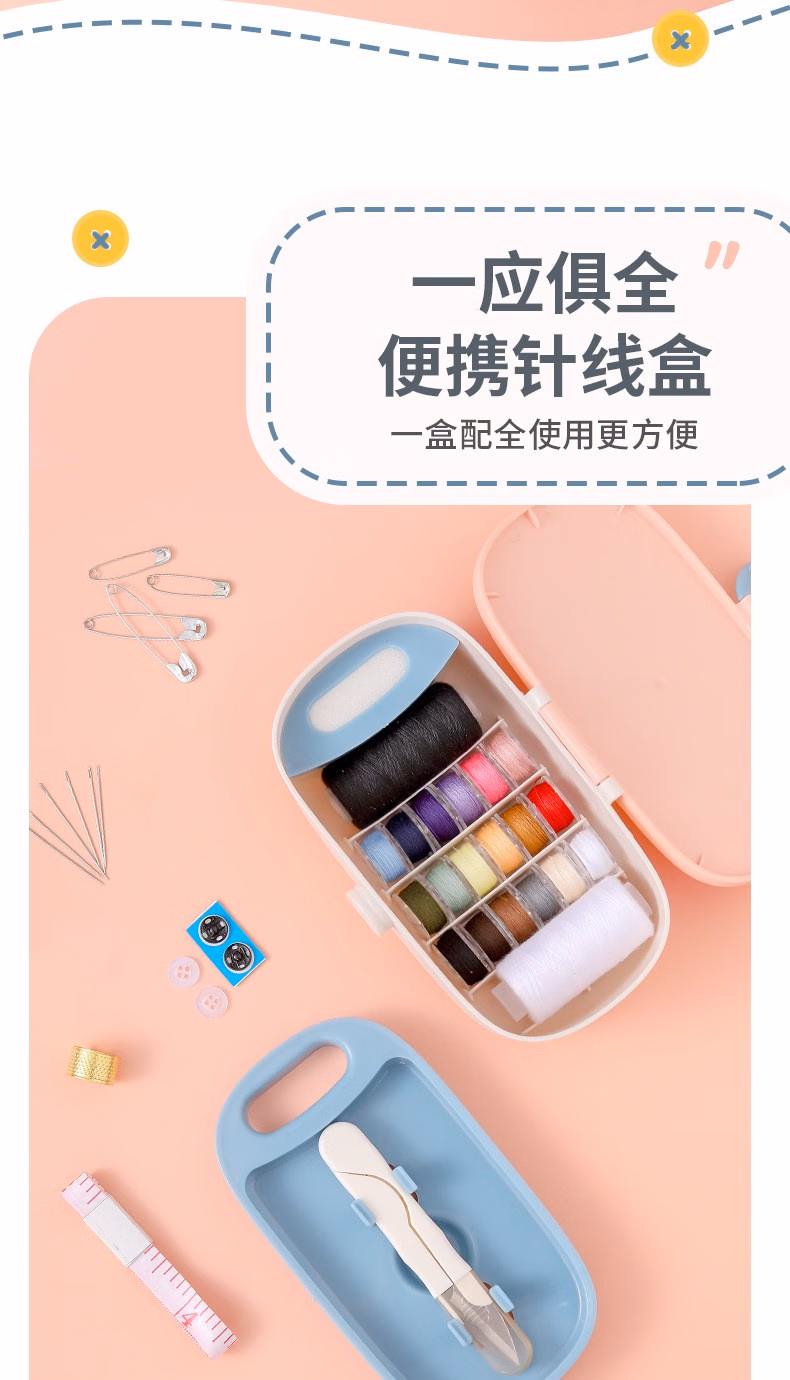囍器针线盒家用收纳盒针线包套装多功能小型收纳盒学生宿舍便携式 针线收纳盒【蓝粉】