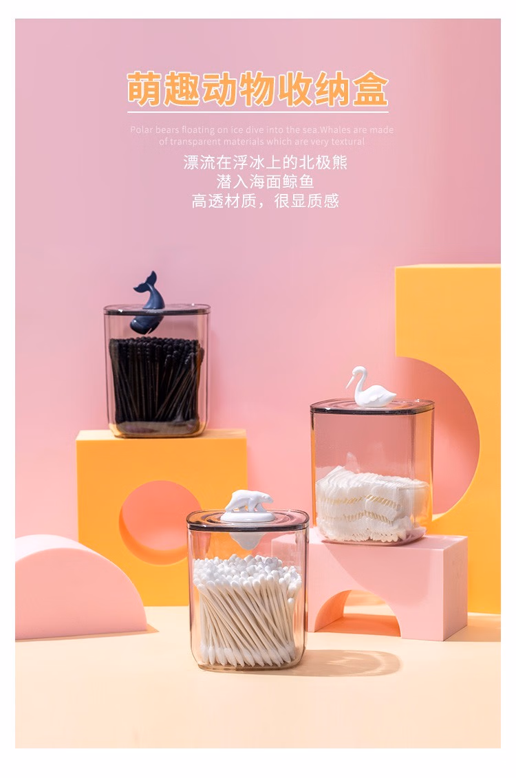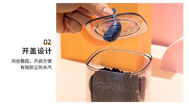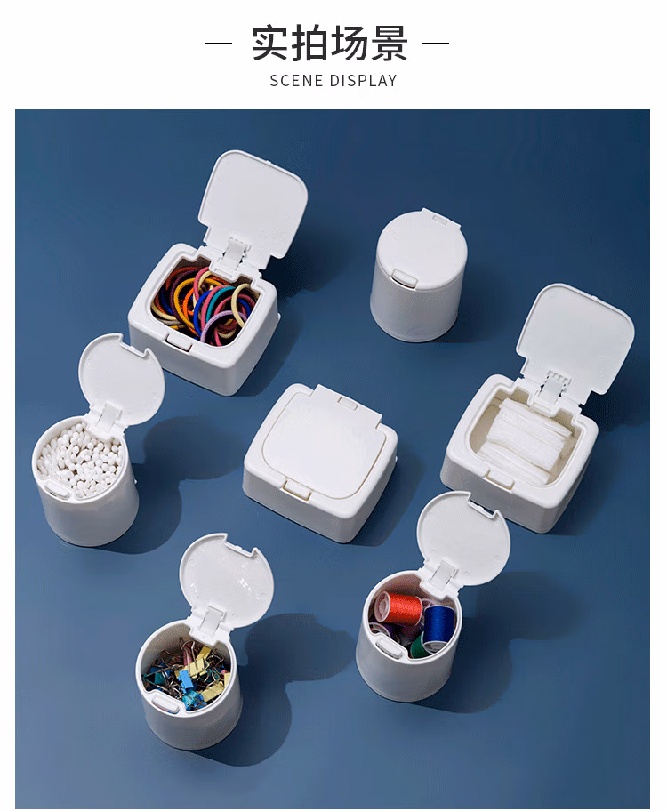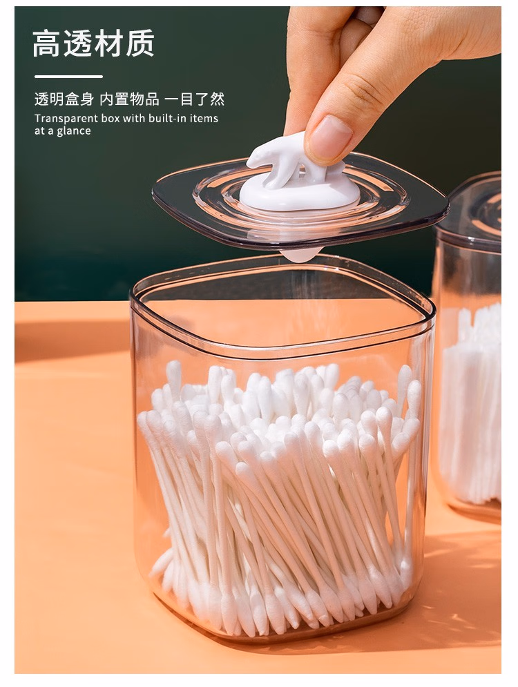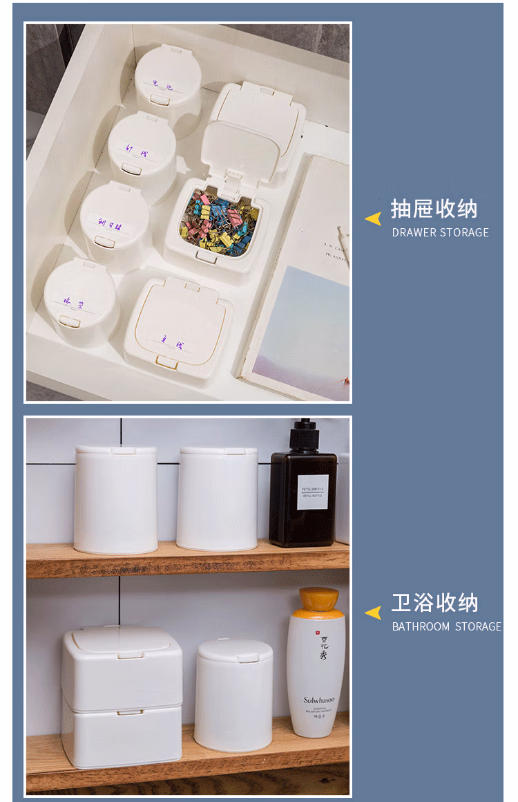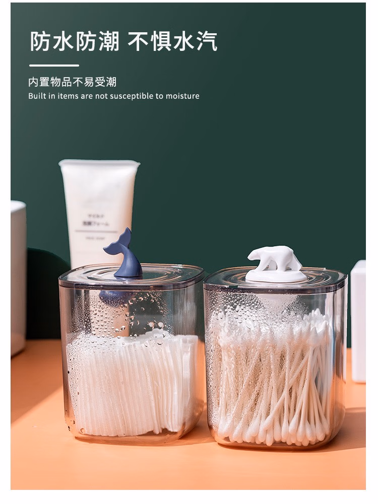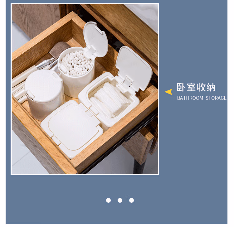 聚可爱桌面棉签盒化妆棉棒收纳桶带盖牙签针线抽屉小盒子家用零件储物盒 圆形