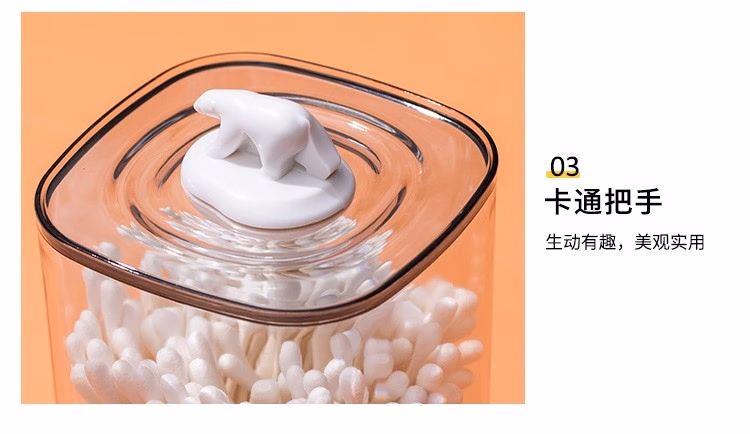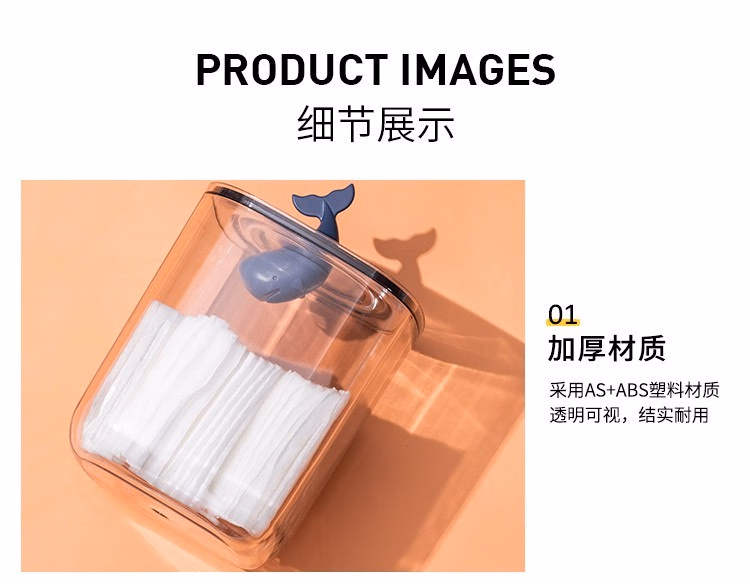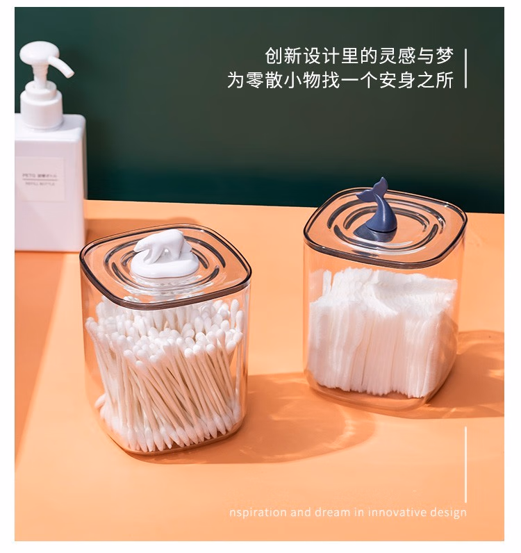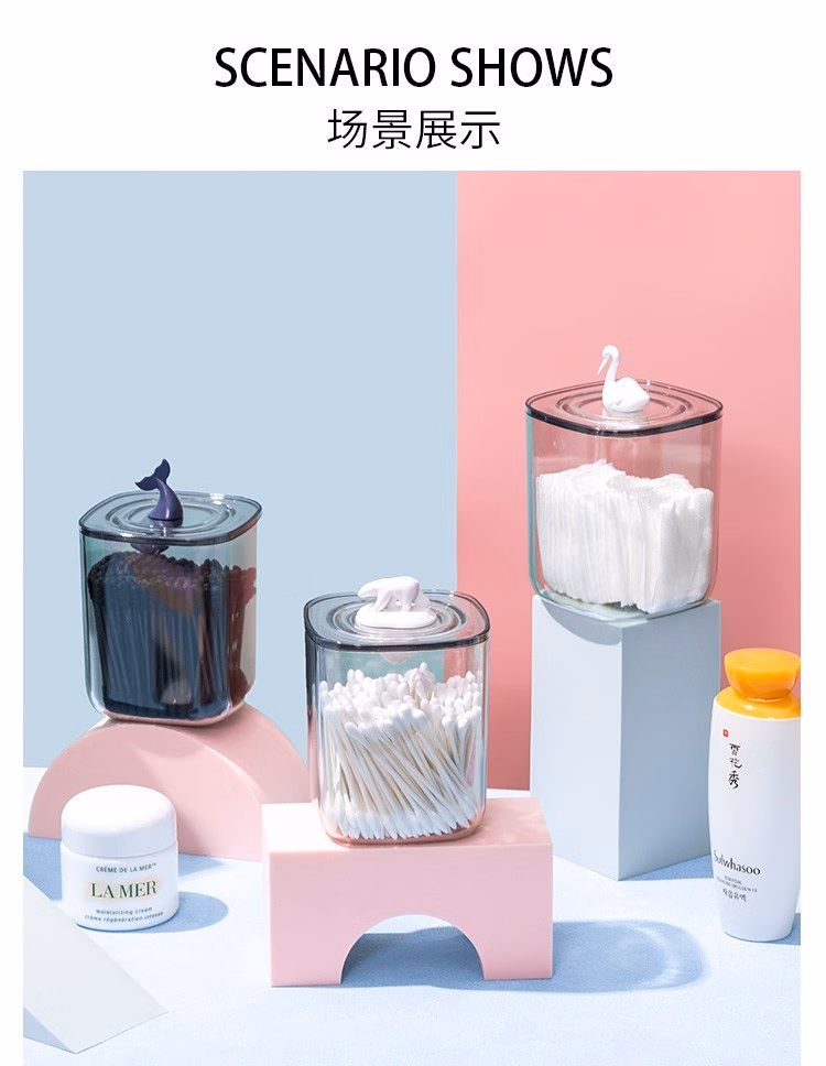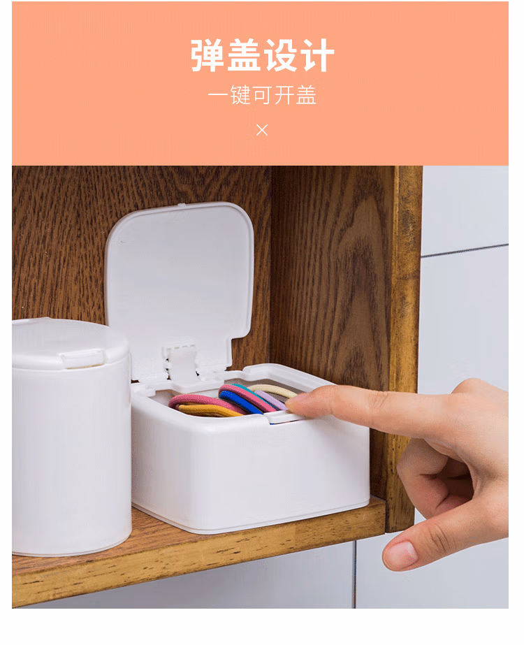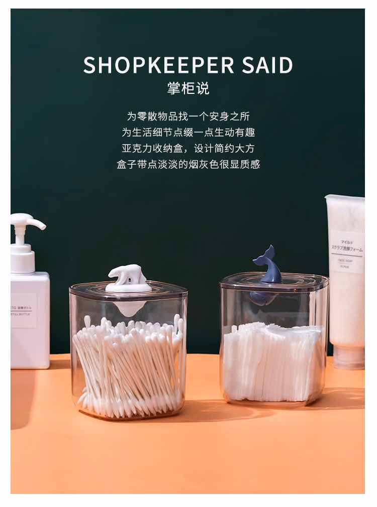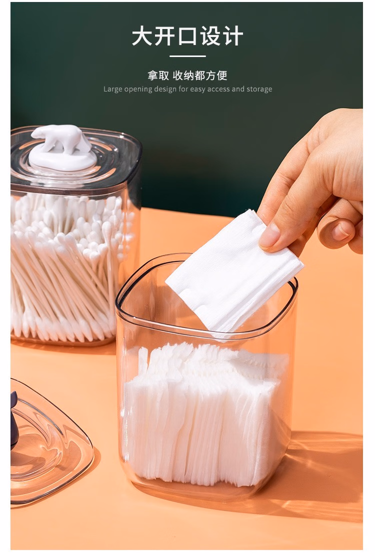 聚可爱桌面棉签盒化妆棉棒收纳桶带盖牙签针线抽屉小盒子家用零件储物盒 圆形