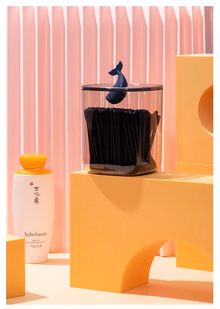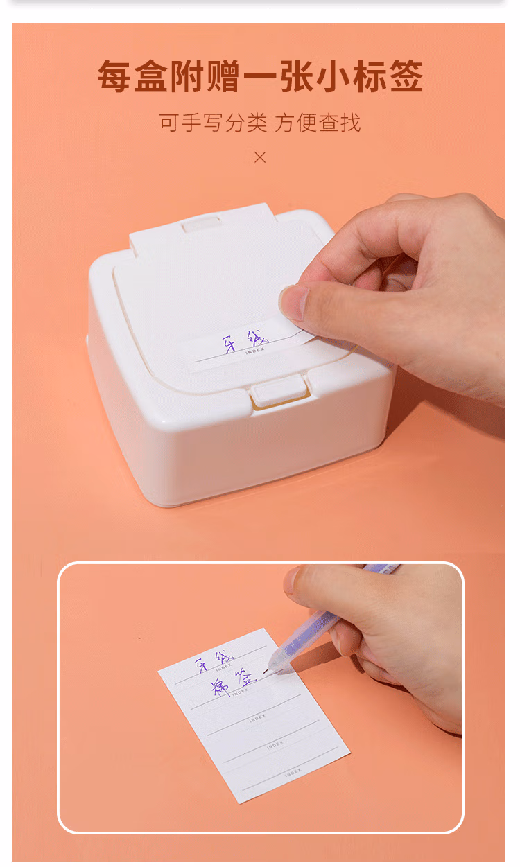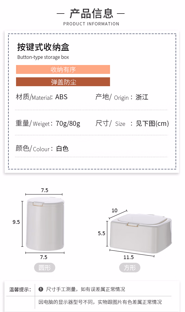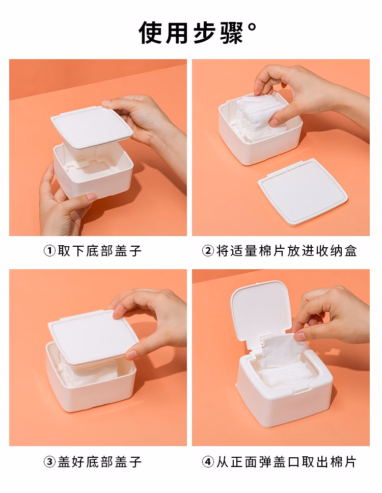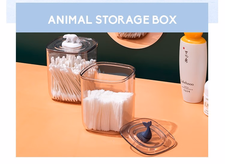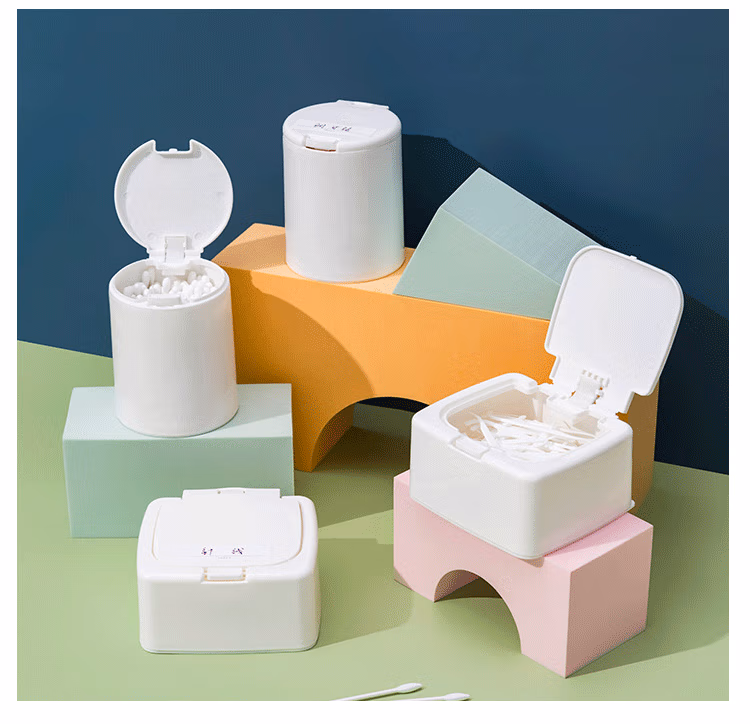 聚可爱桌面棉签盒化妆棉棒收纳桶带盖牙签针线抽屉小盒子家用零件储物盒 圆形