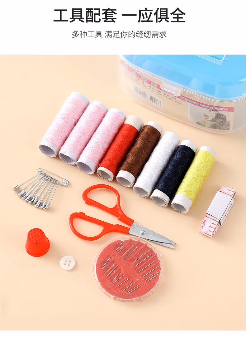 莱杉家用针线盒针线包套装手提便携式针线缝补手缝手工DIY24件套 大号