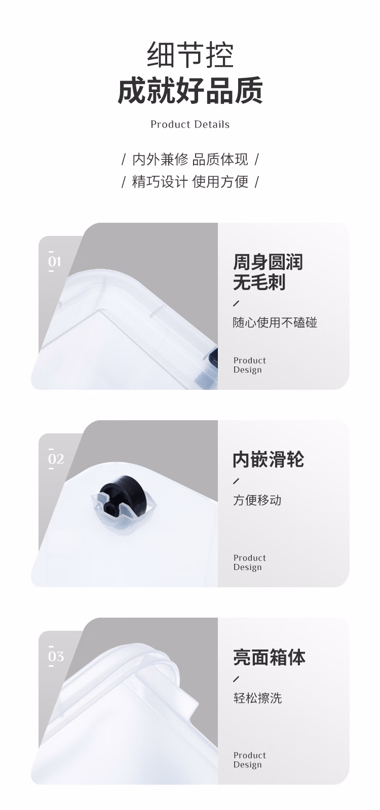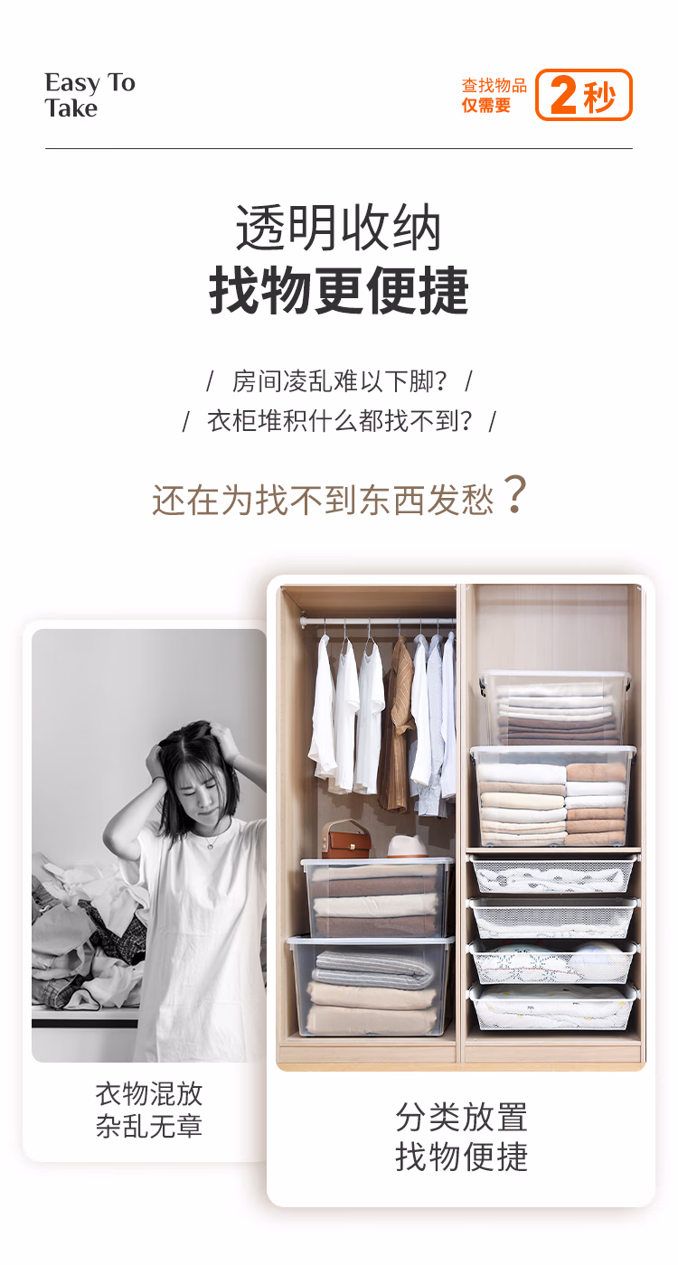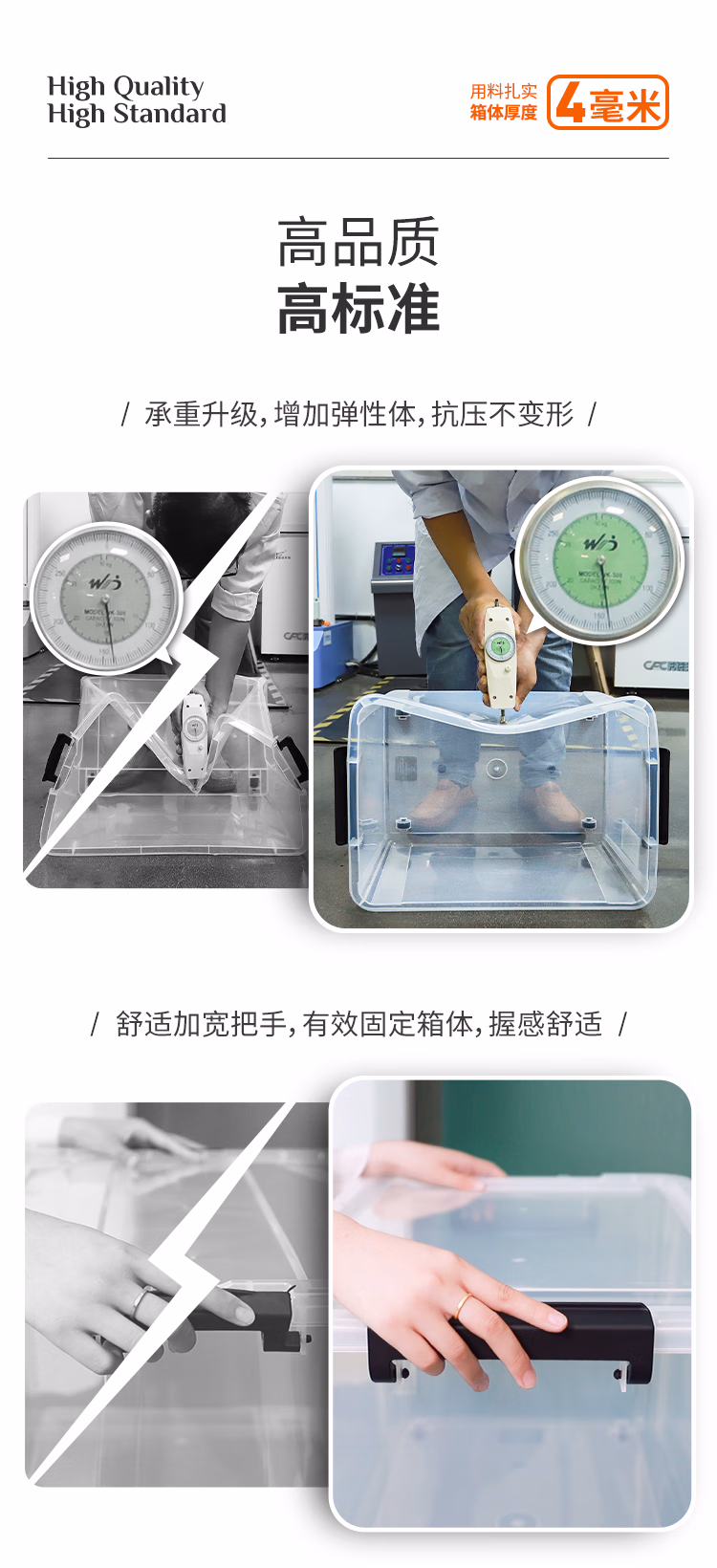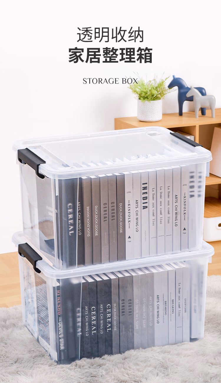 禧天龙加厚衣服收纳箱大号55升3个装 儿童玩具整理箱 搬家箱打包箱 透明储物箱带轮