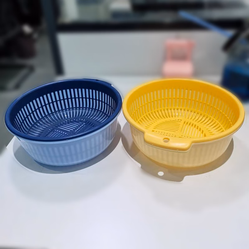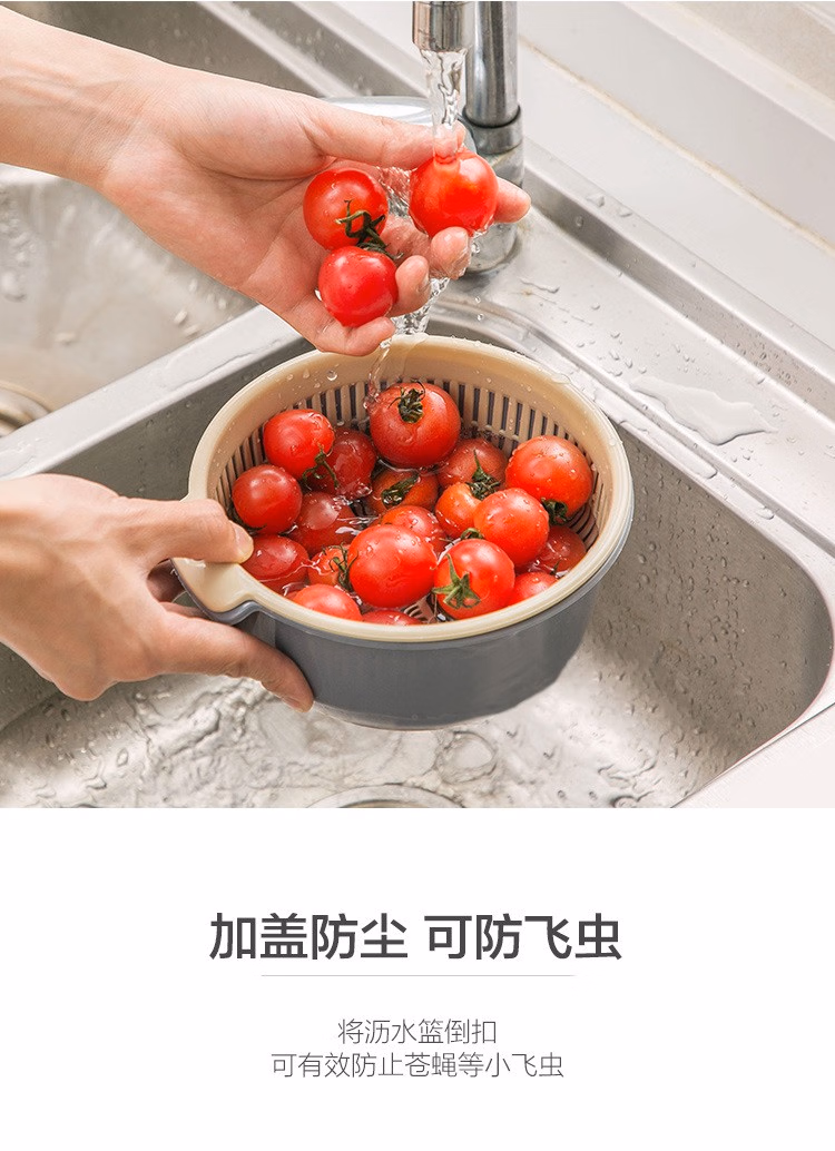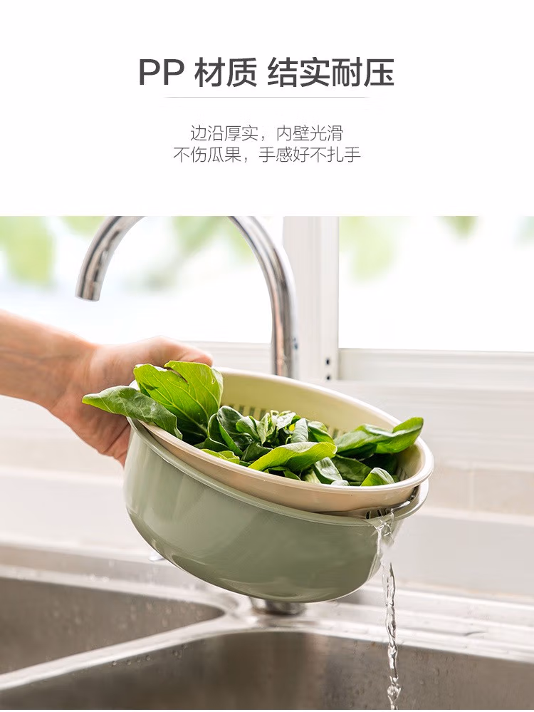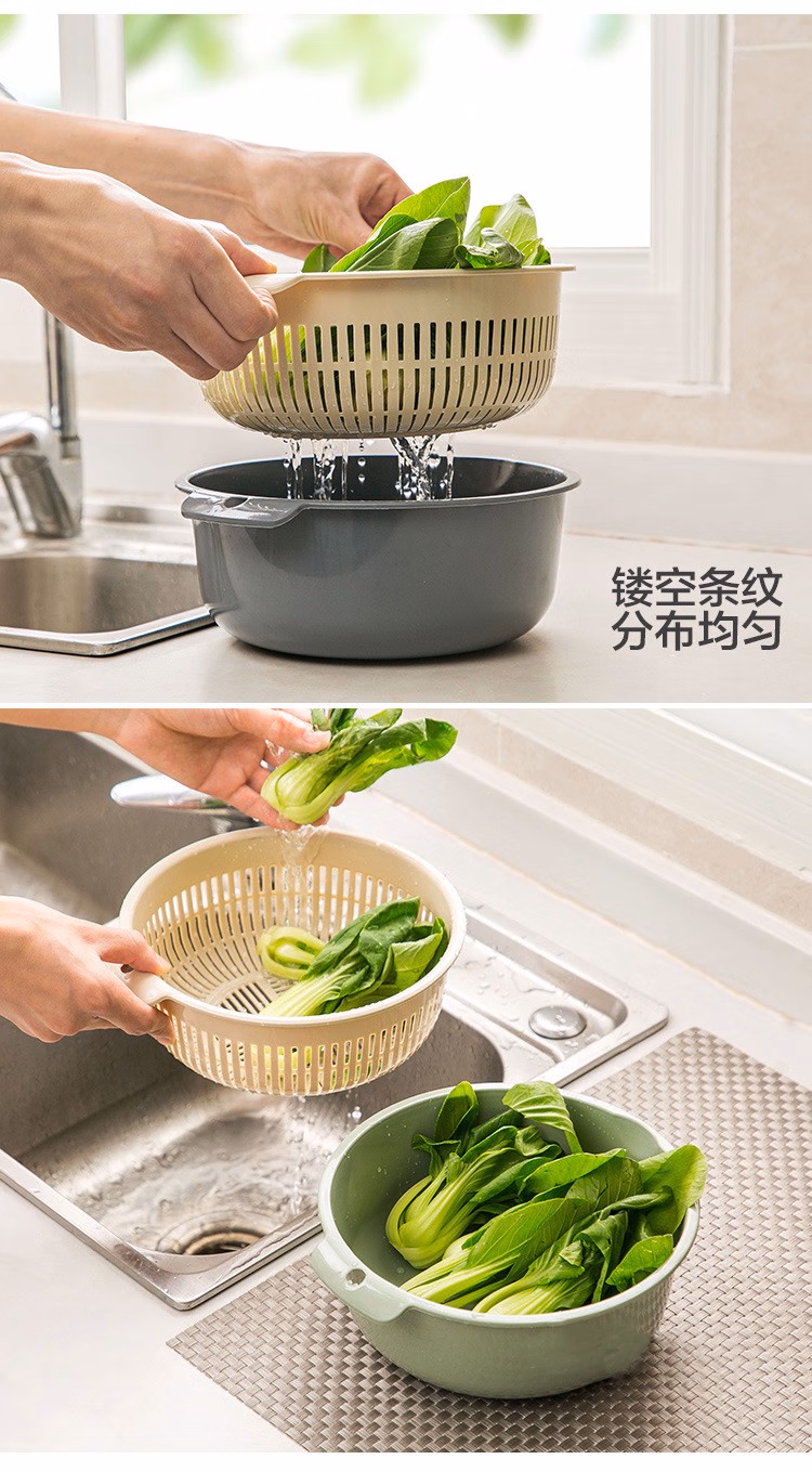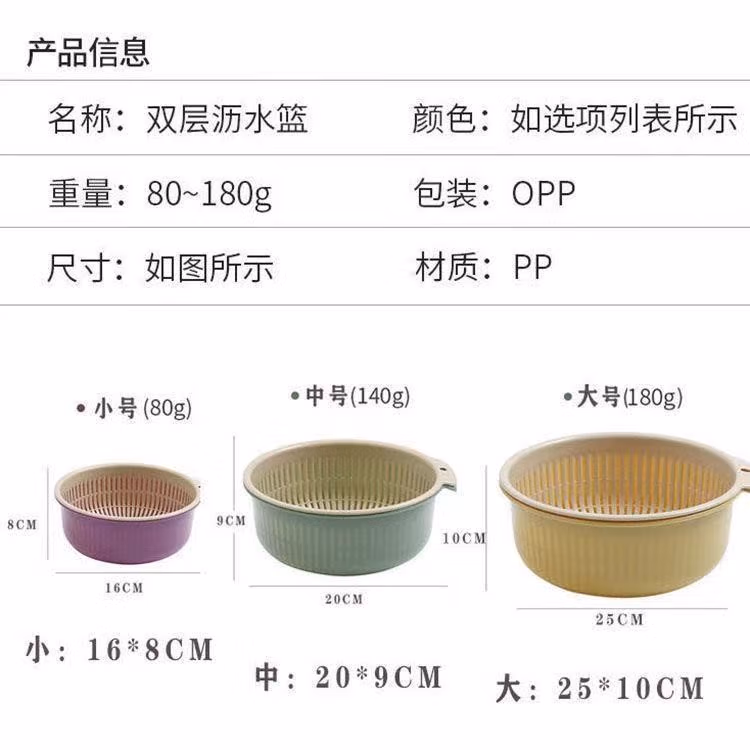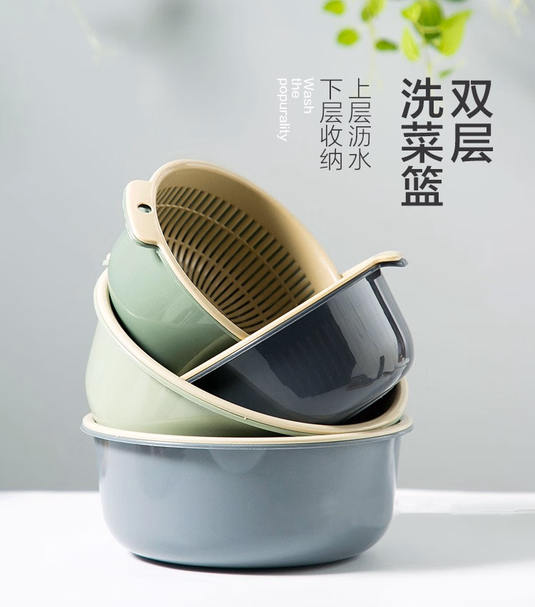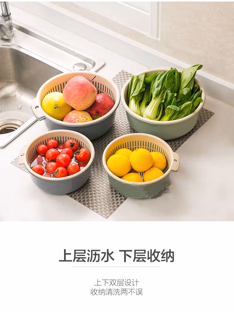 铁群岛6件套双层沥水篮洗菜盆厨房沥水神器家用多功能漏水篮水果篮子 双层洗菜篮小号 中号 大号(3个装6件套)混合颜色