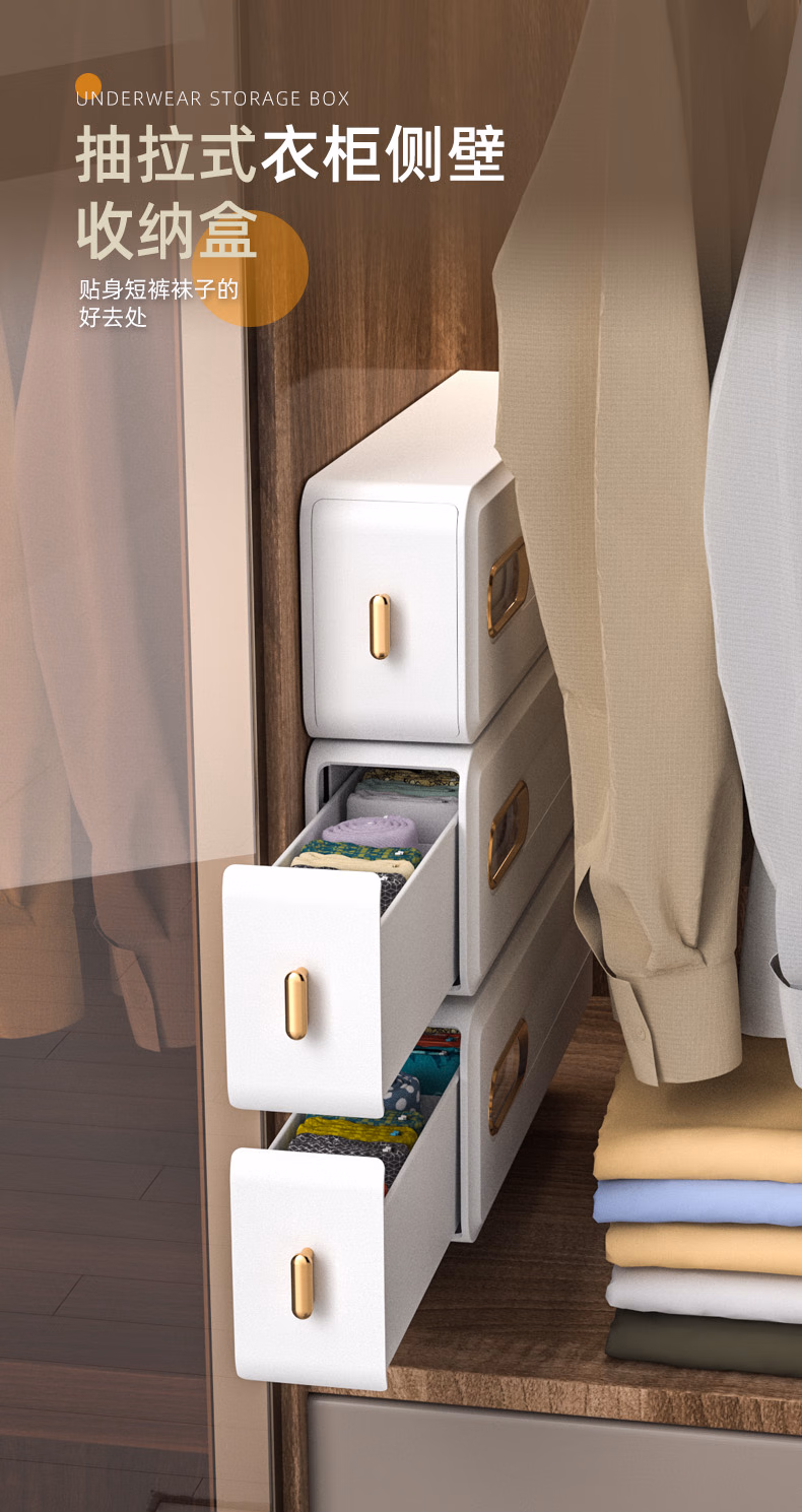 欧轩壁挂式分格内衣收纳盒三合一袜子内裤文胸抽屉式家用衣柜整理神器 7203内衣收纳盒