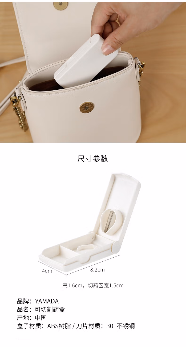 YAMADA切药器带盖药物收纳盒便携药盒家用小药盒迷你分药神器可切割药盒