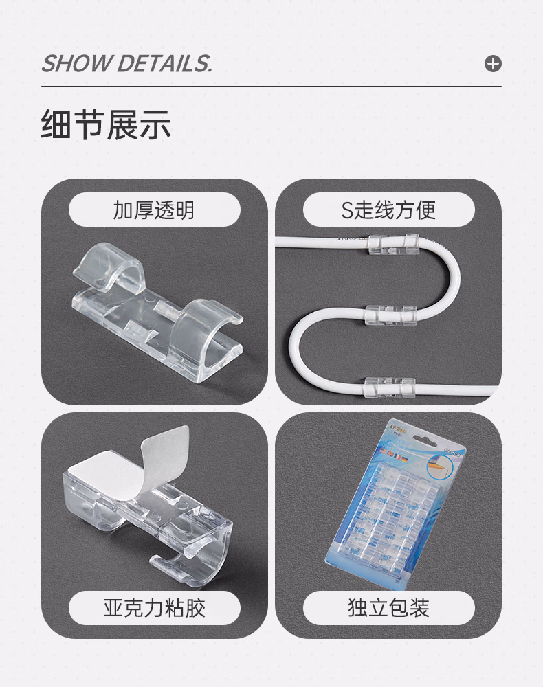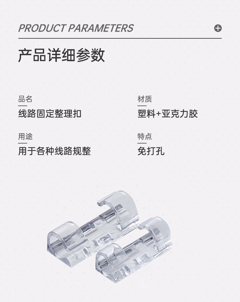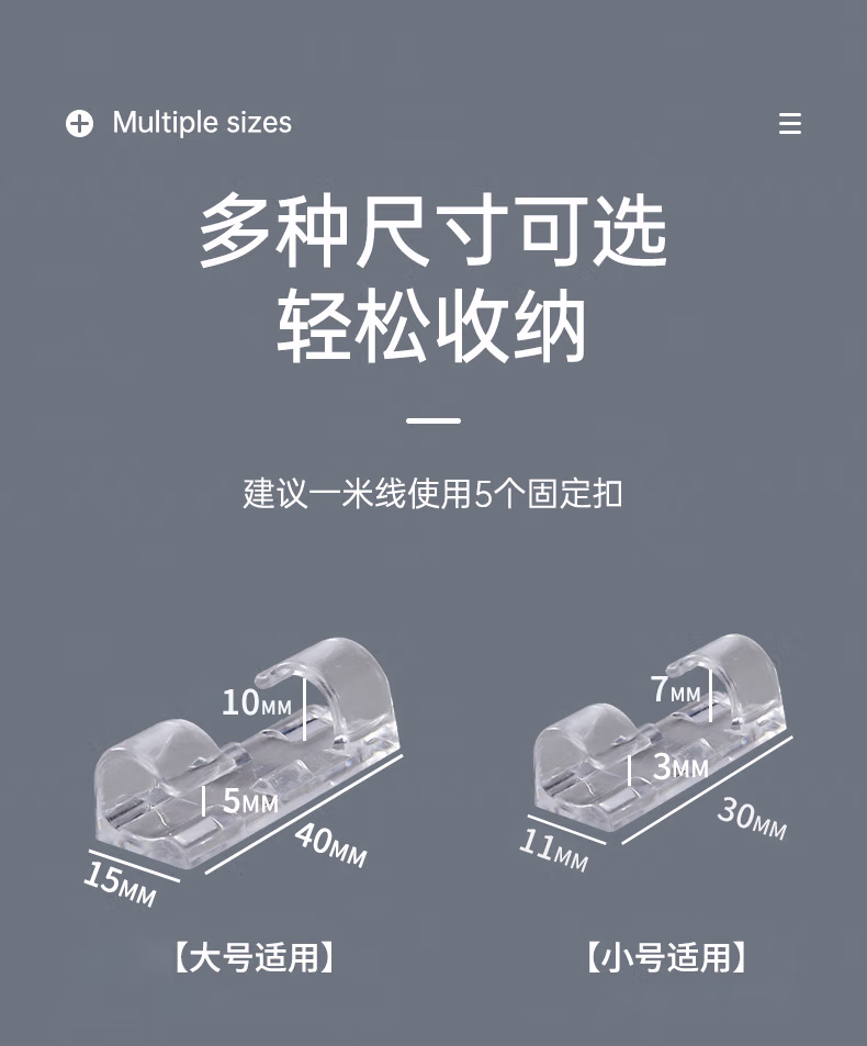 登比理线器【升级款强力背胶】电线固定扣免钉无痕线卡整理走线夹网线卡扣自粘神器卡子 小号透明20只