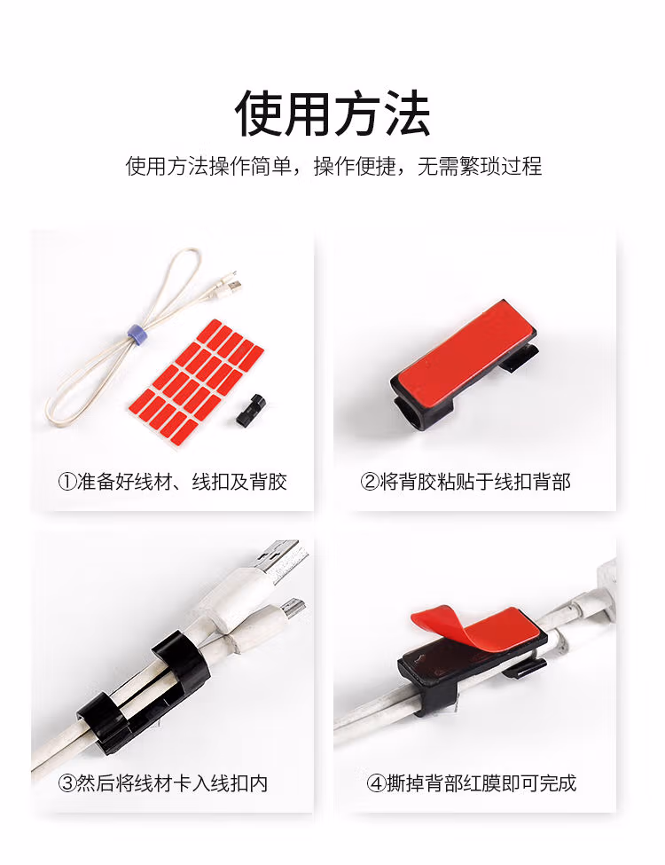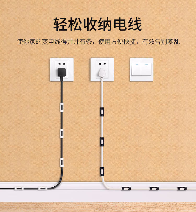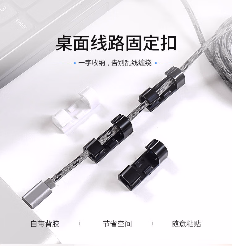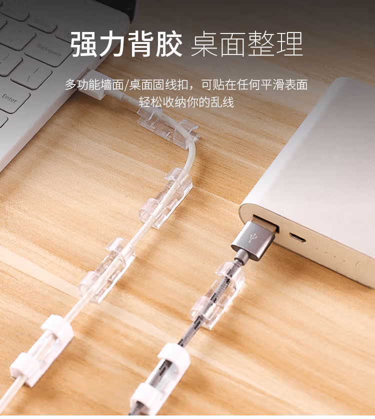 境坊间【40个】电线卡扣走线自粘数据网线排插电线固定器墙面免打孔线卡子电线固定扣理线器透明 小号20个 大号20个 C