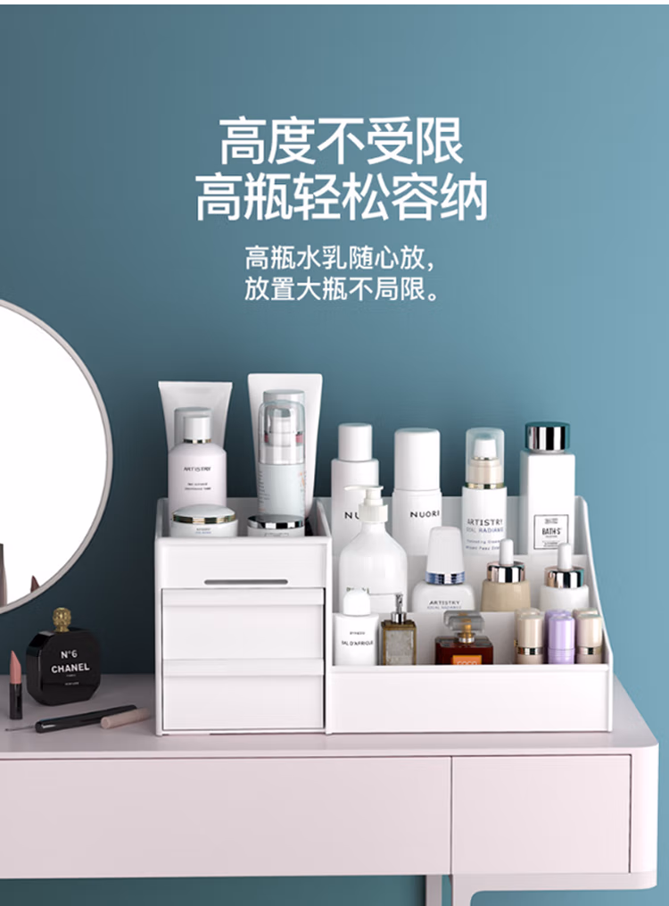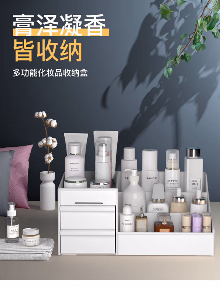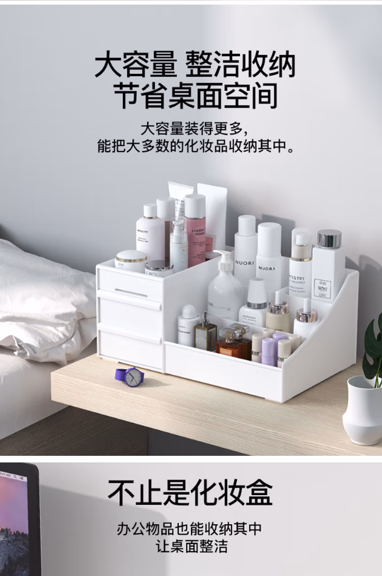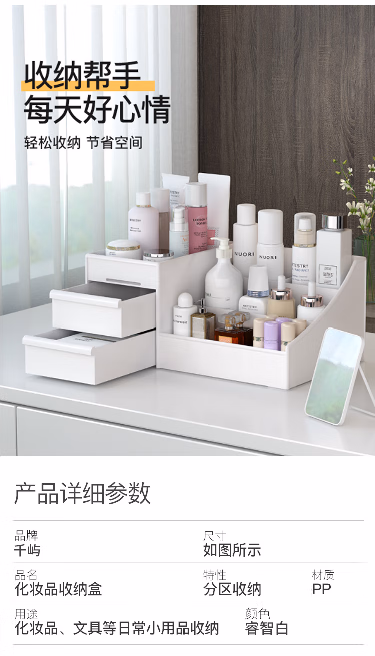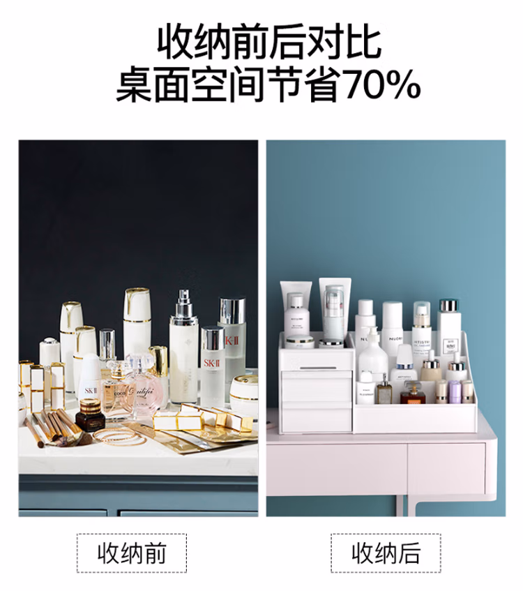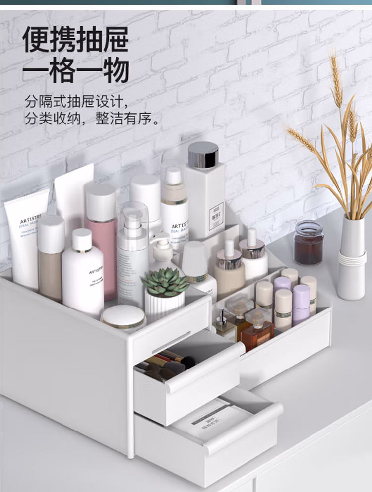 千屿网红化妆品收纳盒护肤品口红防尘置物架宿舍整理桌面梳妆台收纳框