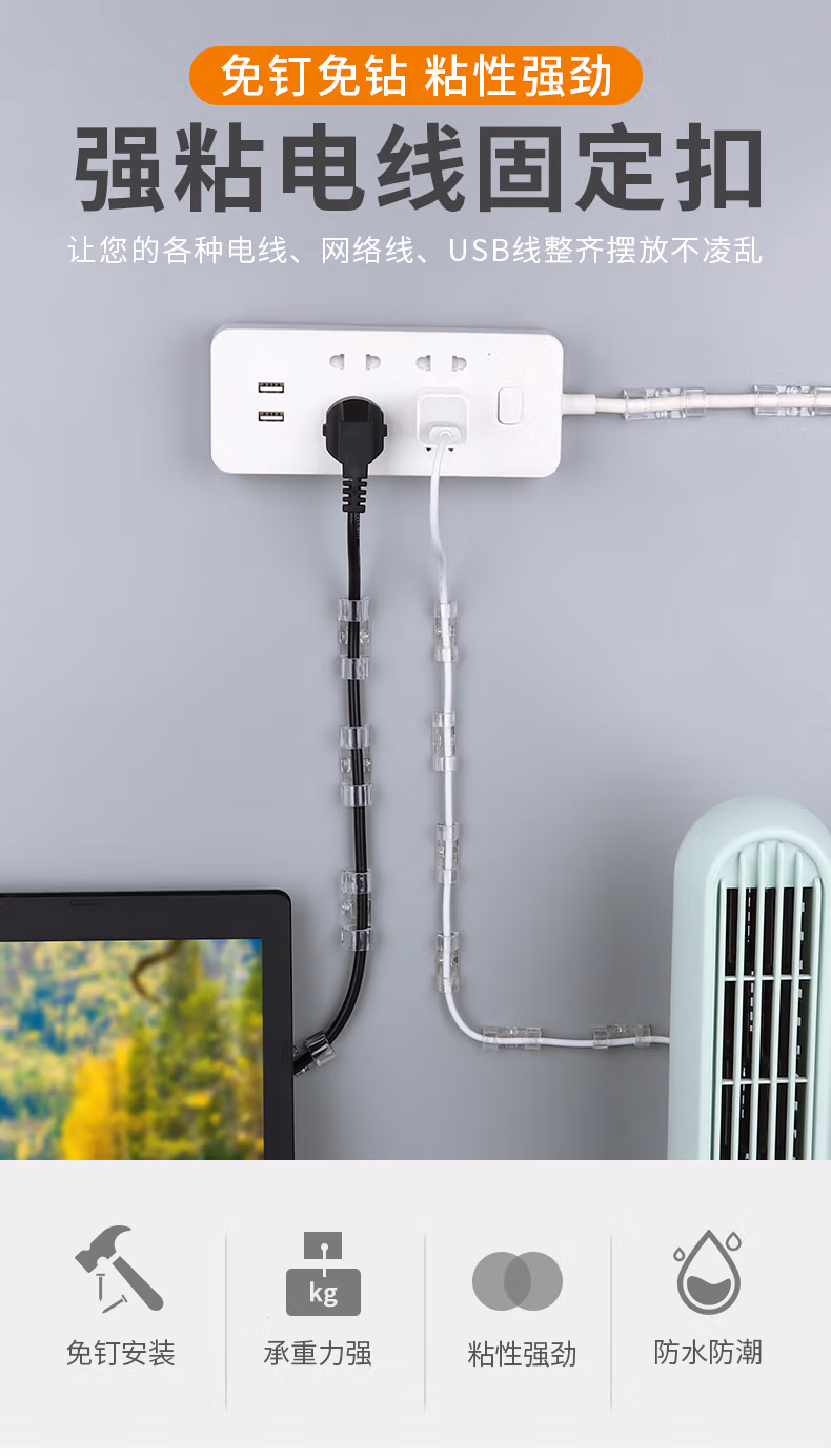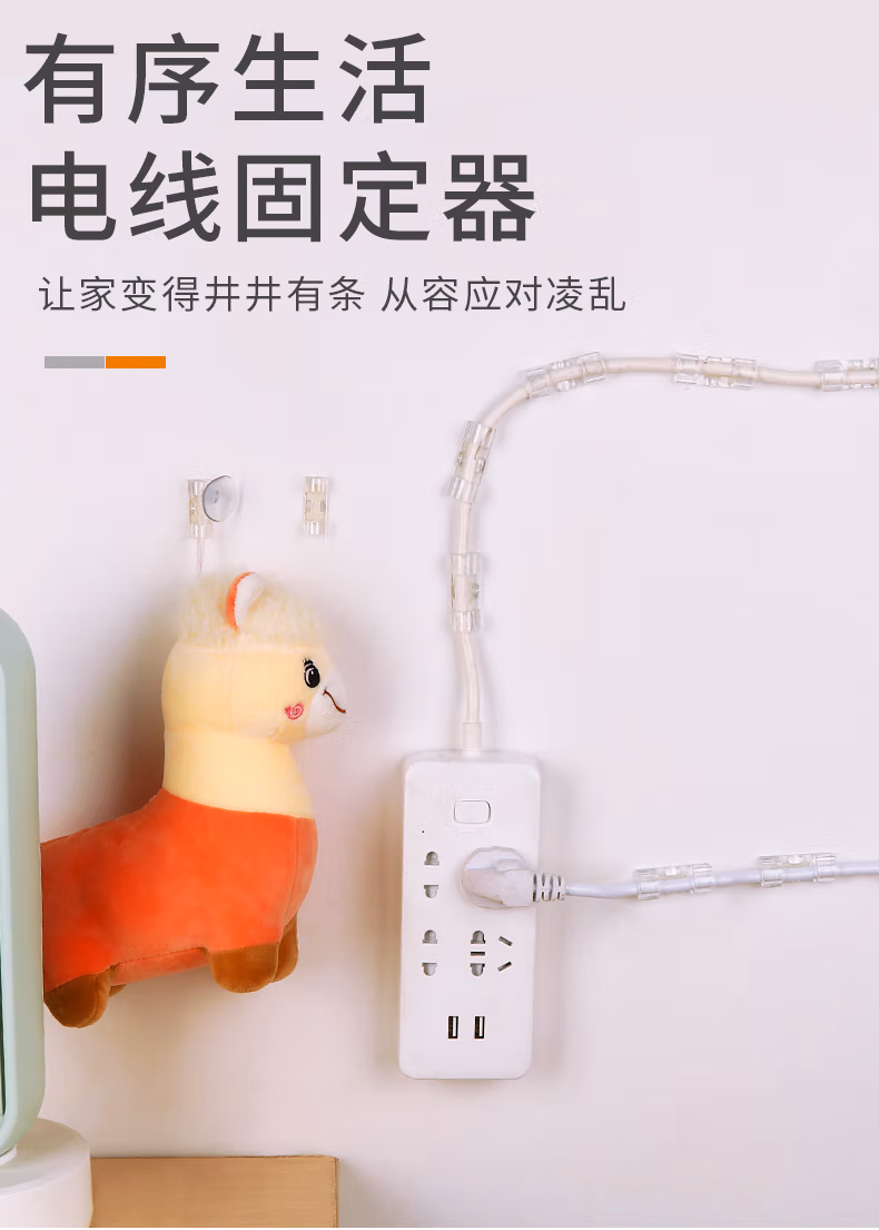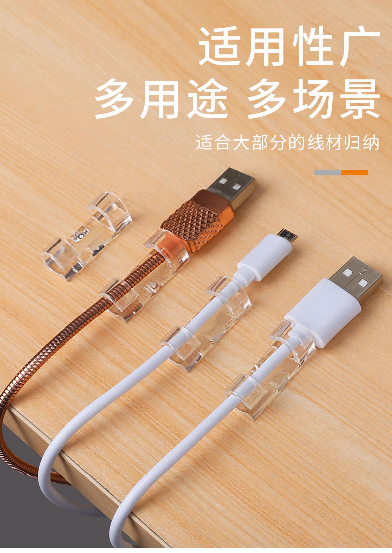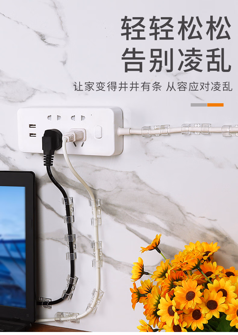 米乐奇电线固定器理线夹线卡子数据线路网线卡扣墙上桌面收纳自粘贴插板固定器走线神器大号【透明款48个】排插线/空调线/护套线/音频线