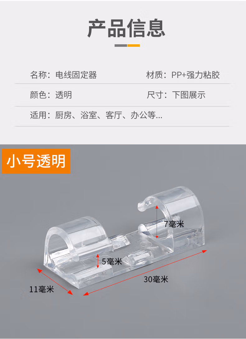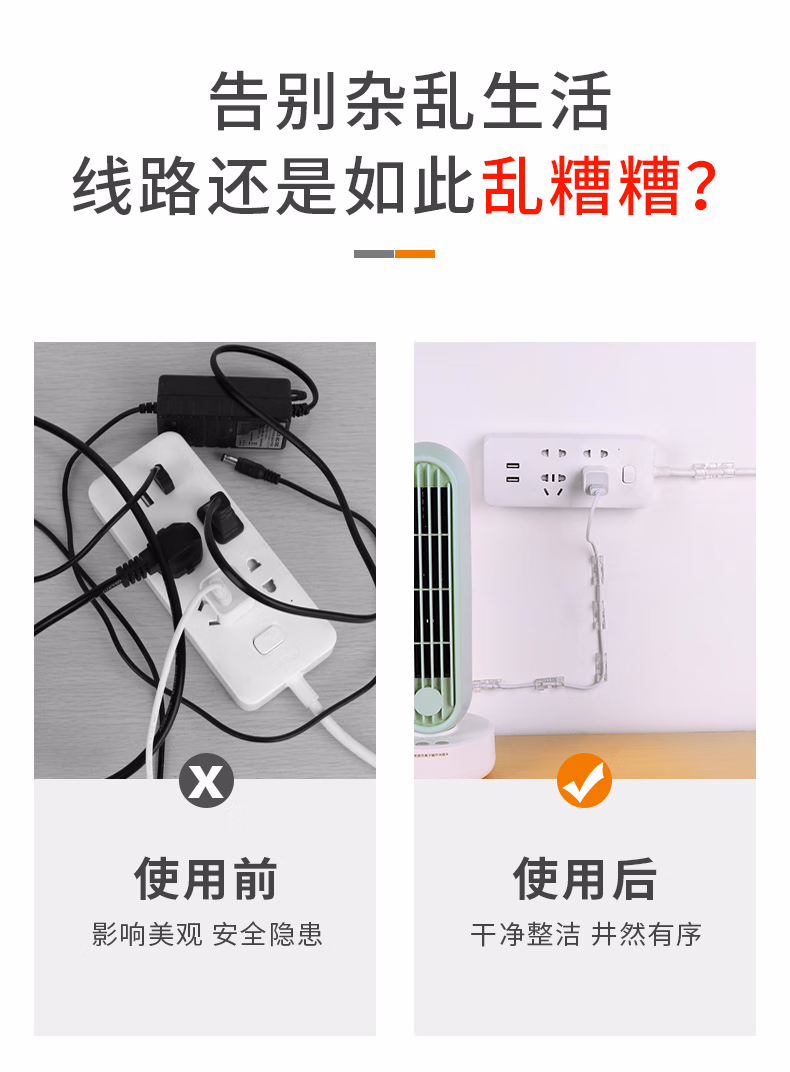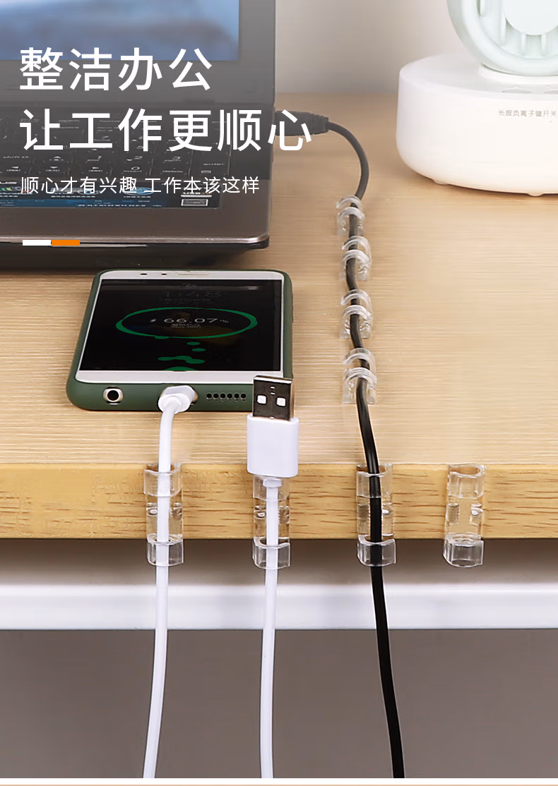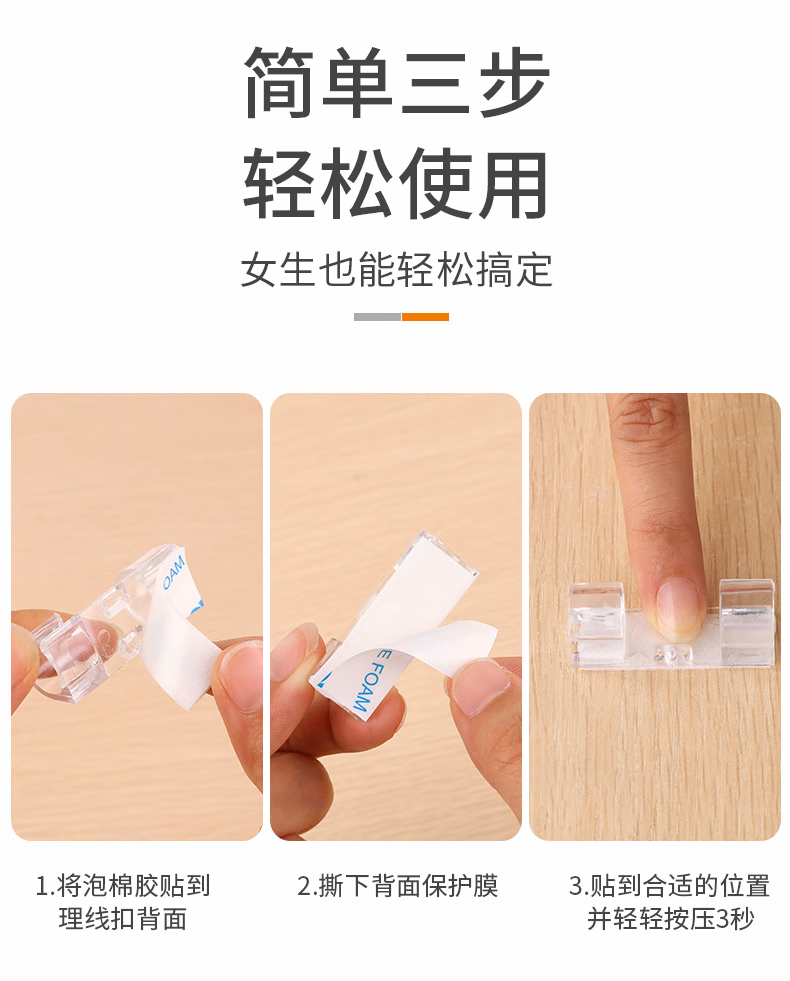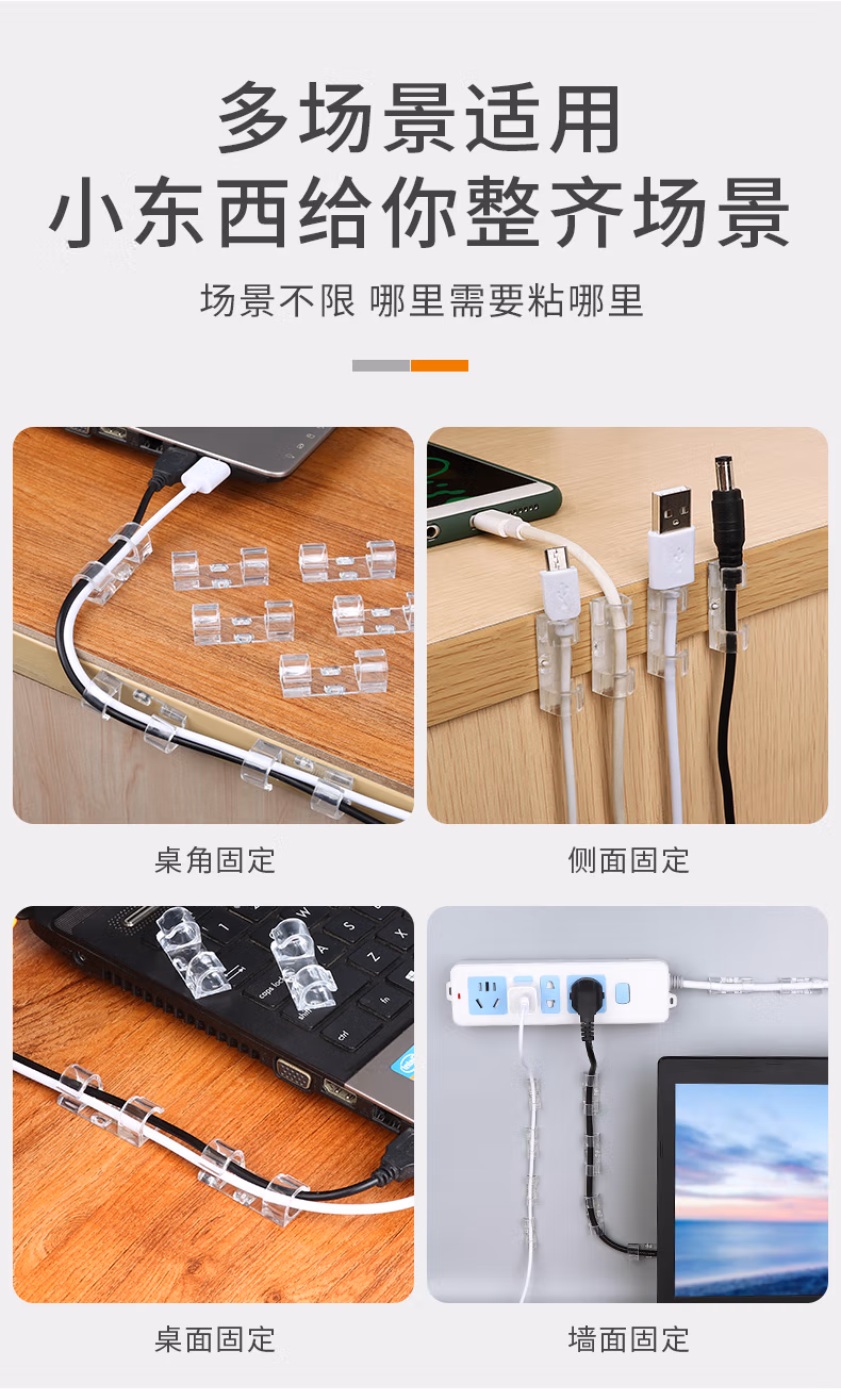 米乐奇电线固定器理线夹线卡子数据线路网线卡扣墙上桌面收纳自粘贴插板固定器走线神器大号【透明款48个】排插线/空调线/护套线/音频线