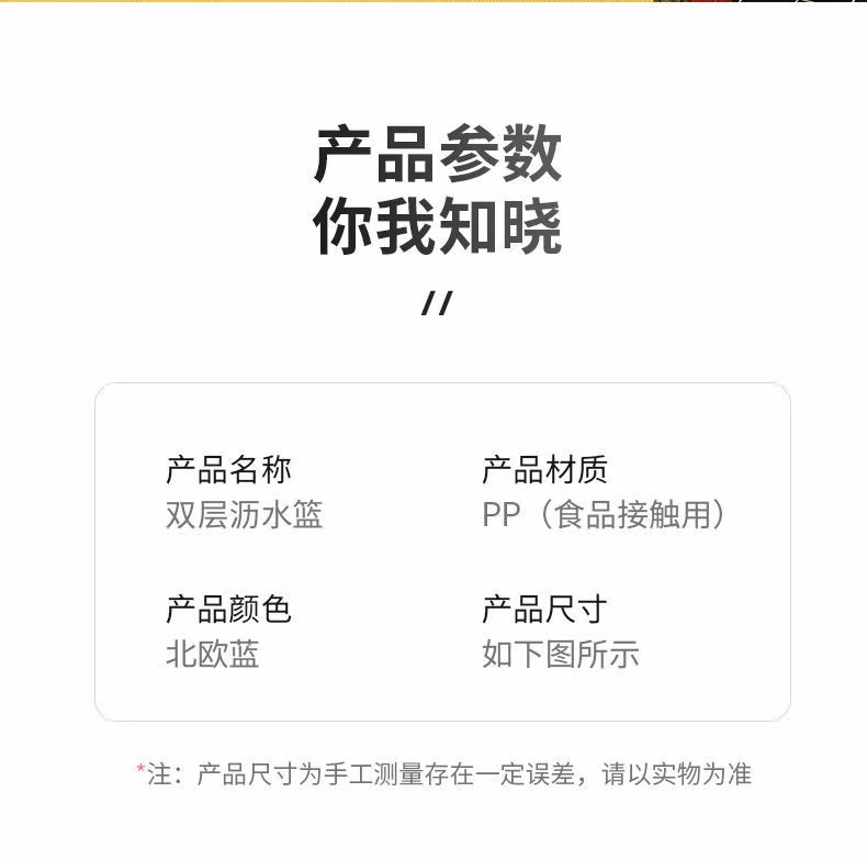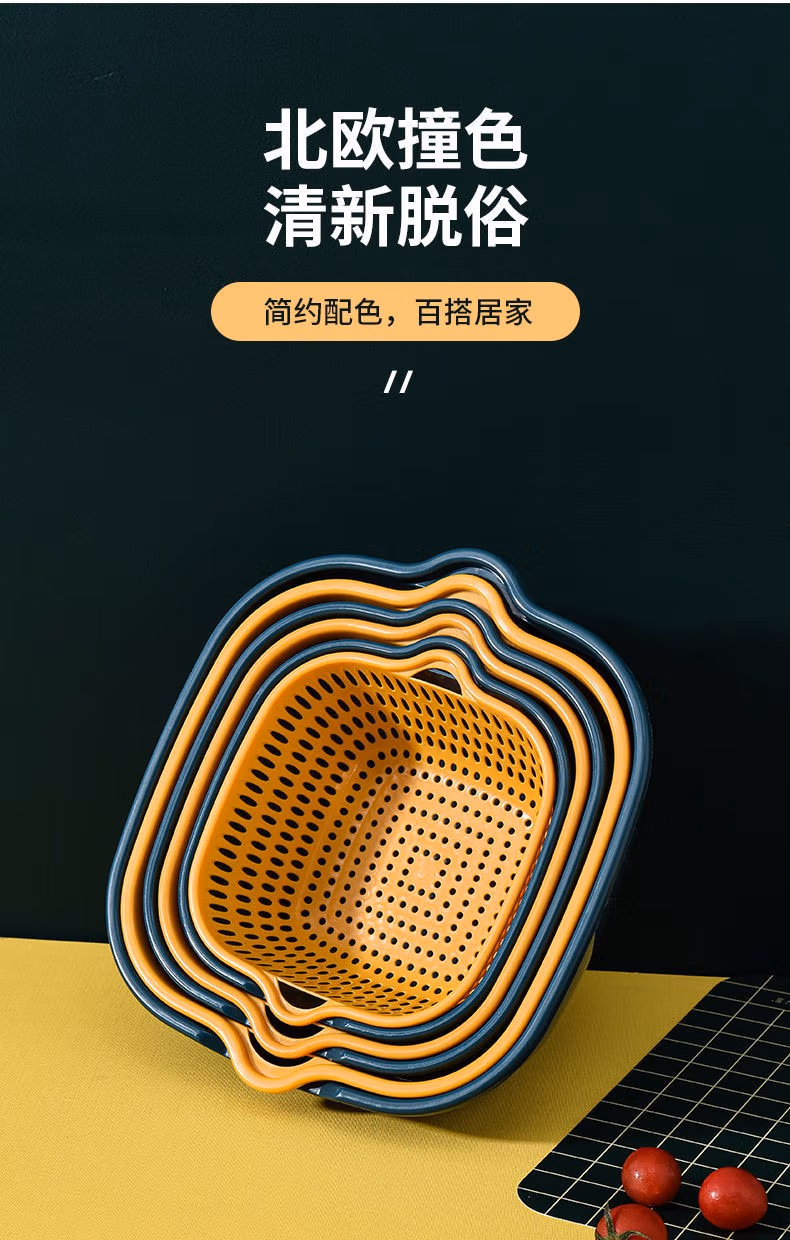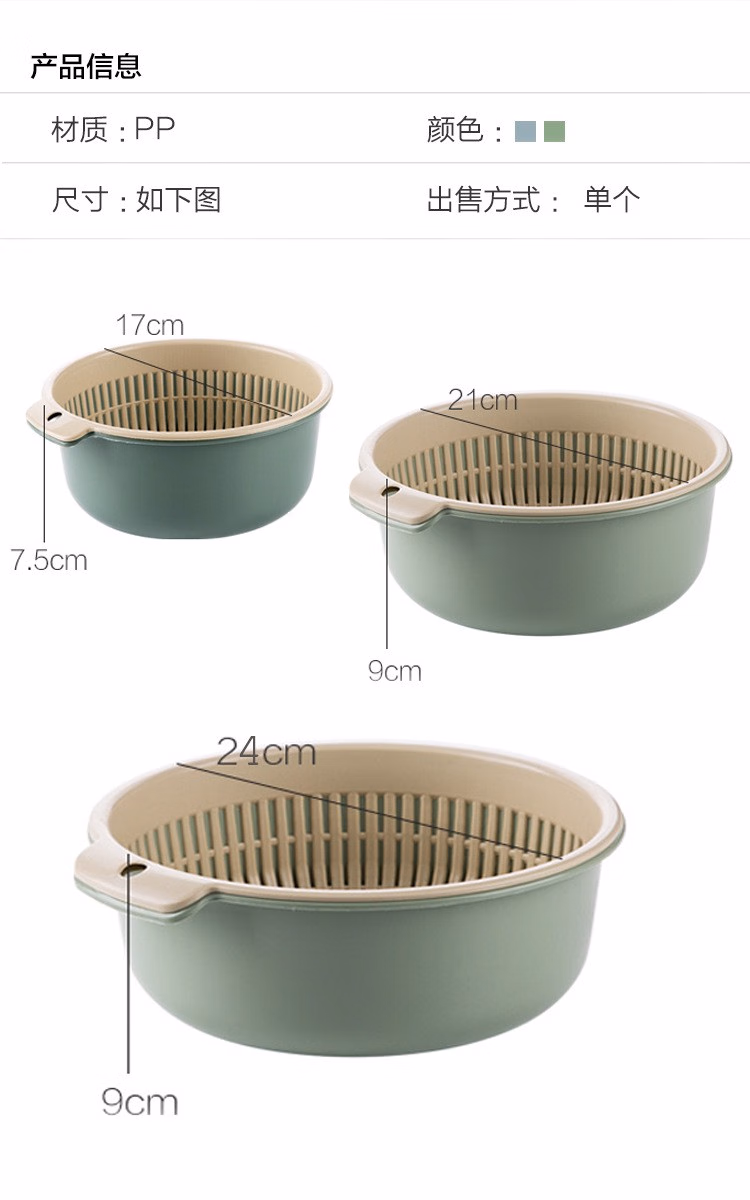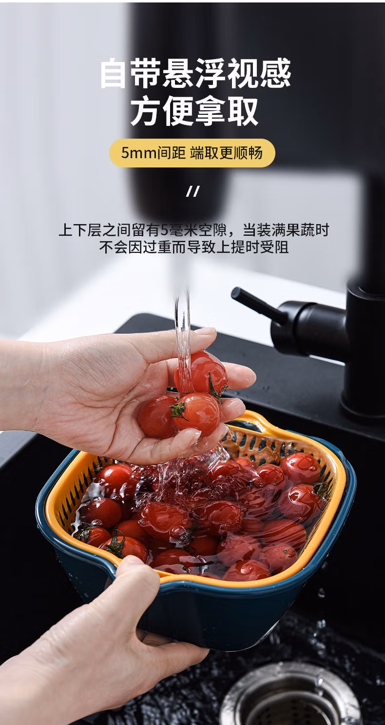铁群岛6件套双层沥水篮3个洗菜盆厨房沥水神器家用多功能漏水篮水果篮子 双层洗菜篮小号 中号 大号(3个6件套)-颜色混搭