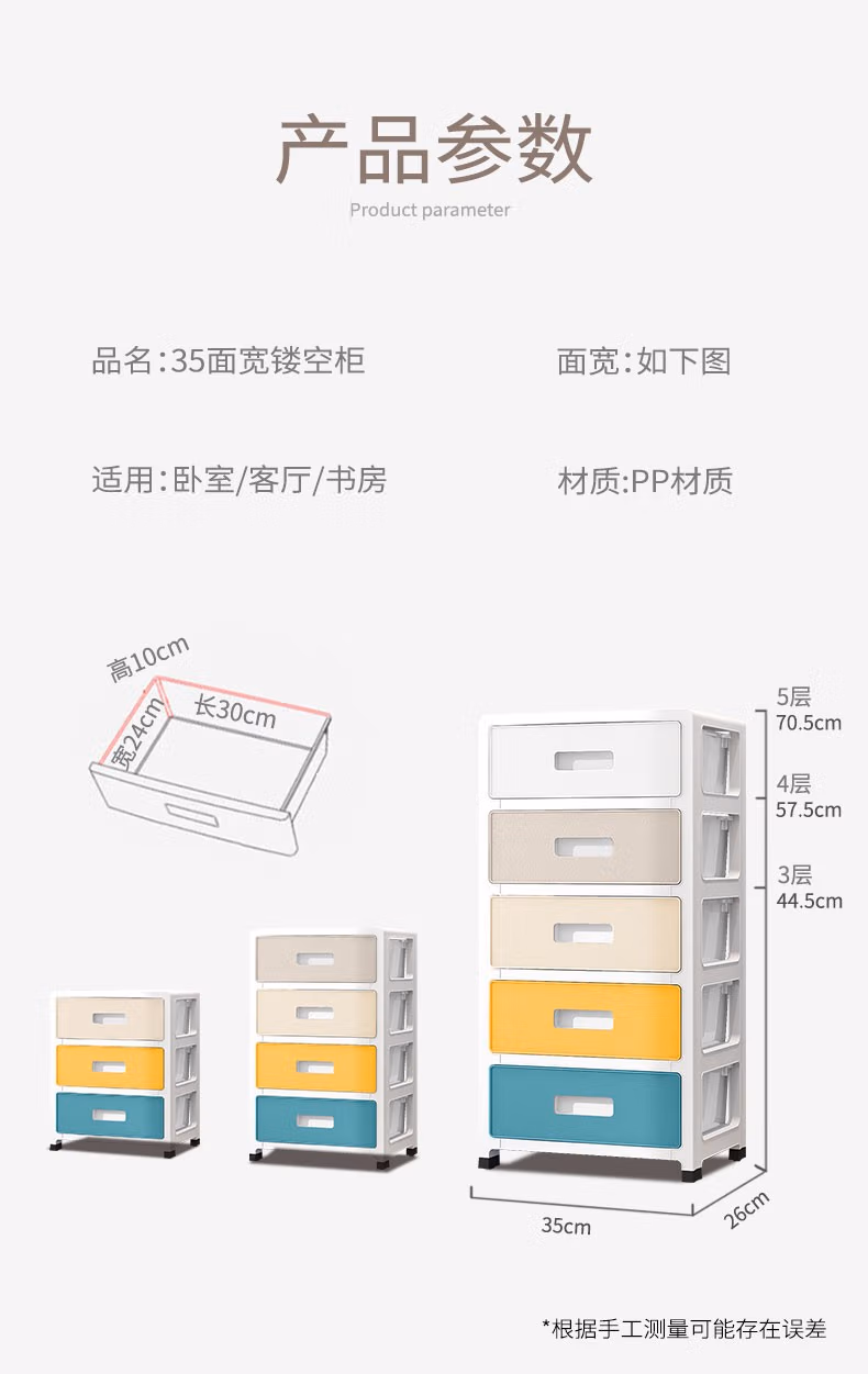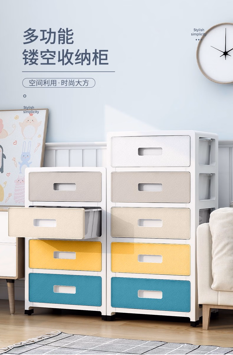 纳份爱多功能镂空收纳柜抽屉式储物柜杂物整理柜儿童玩具收纳箱衣柜收纳五斗柜 35面宽新盒子混色收纳柜 五层