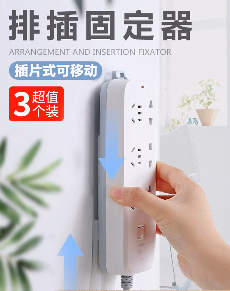 晟旎尚品【超值3只装】插排固定器桌子墙上免打孔粘贴插线板插座固定 壁挂路由器收纳盒电线卡网线走线神器