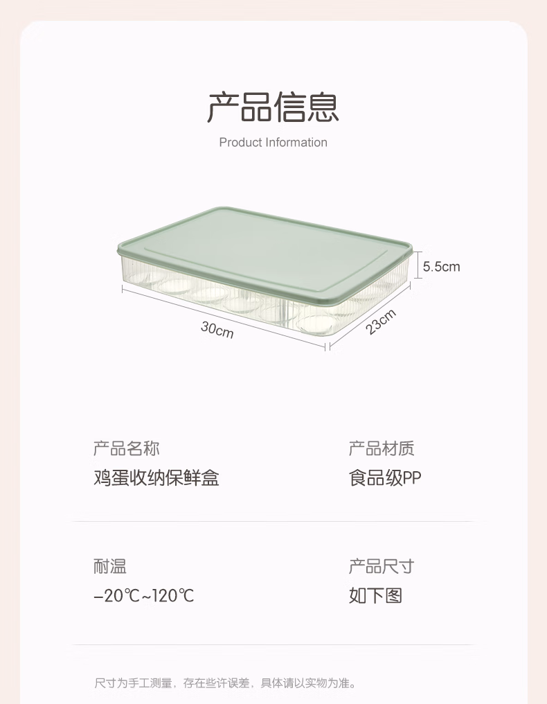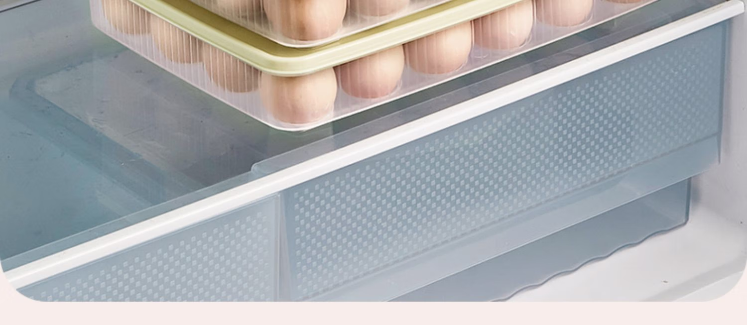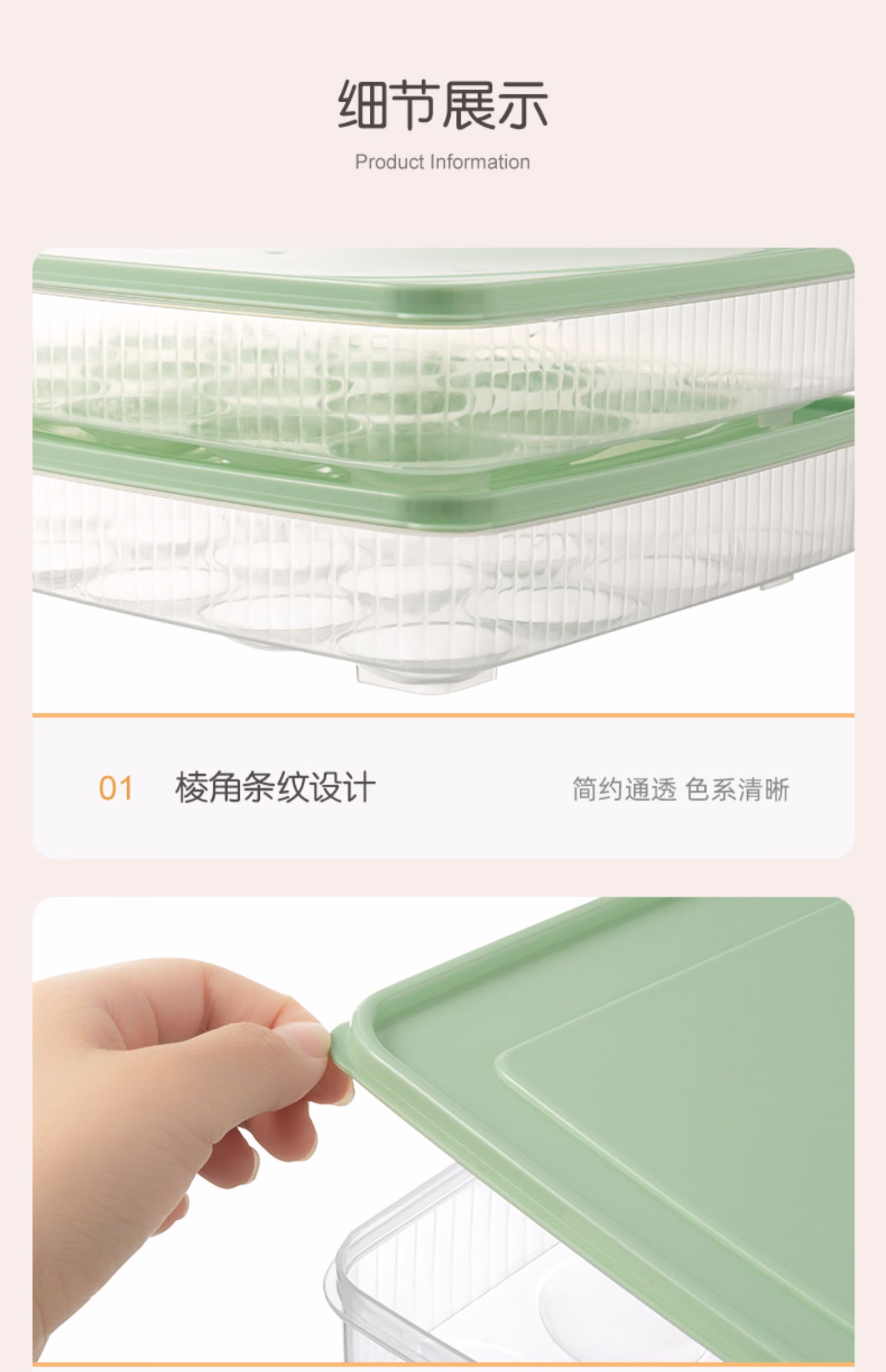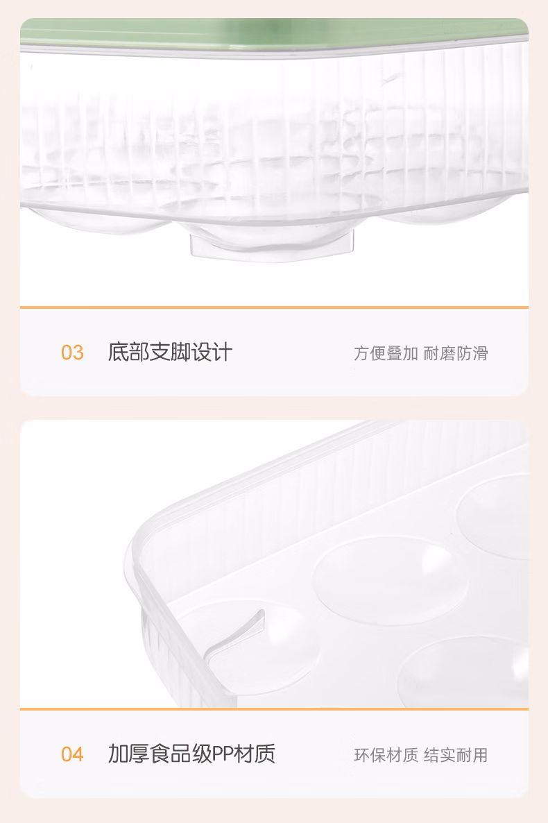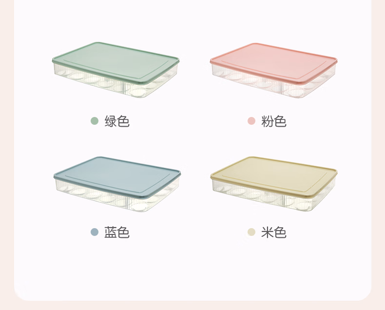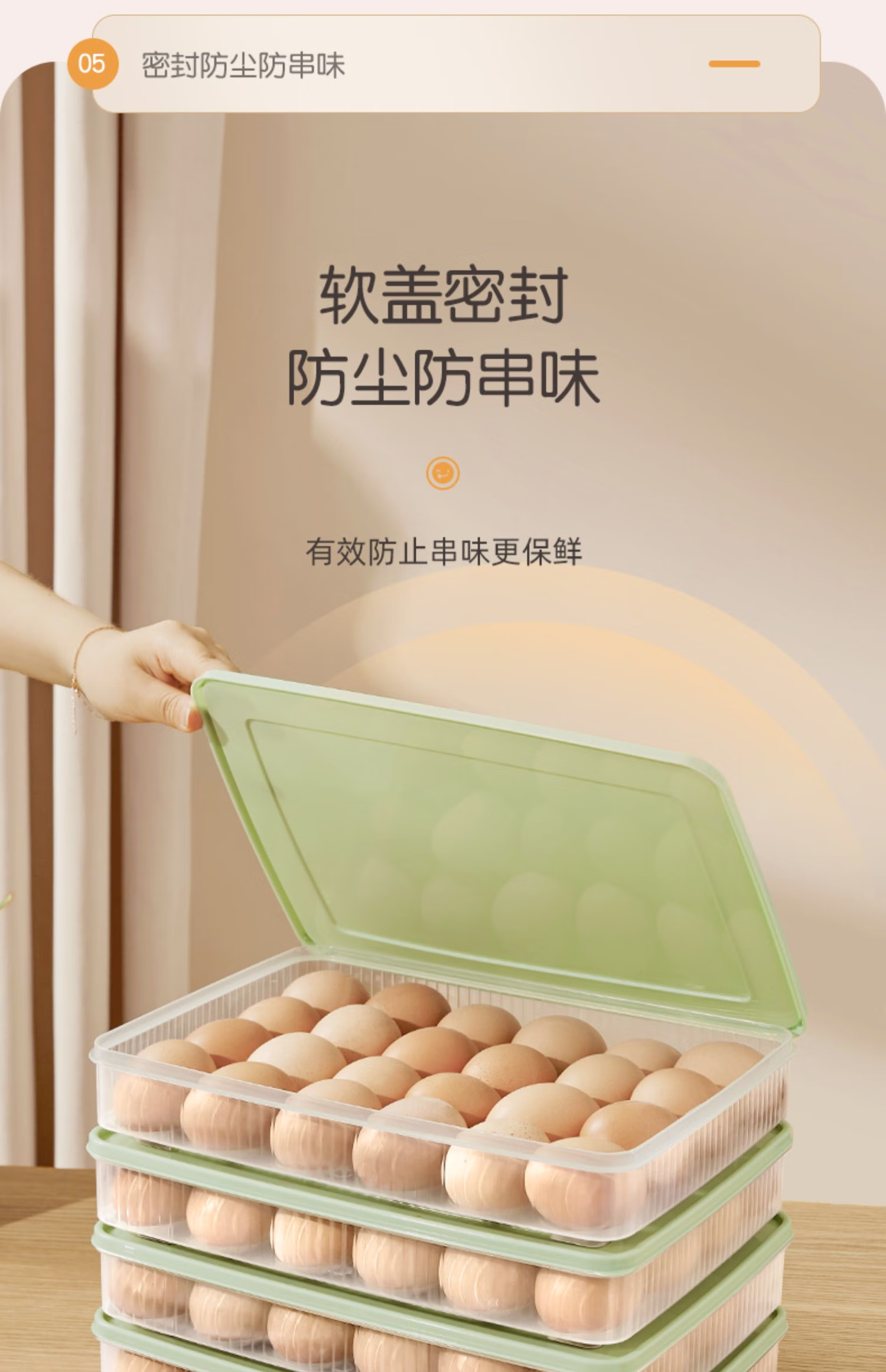 卡维瑞鸡蛋收纳盒冰箱食品级密封保鲜盒家用厨房防震可叠加鸡蛋托架 带盖储物盒浅绿色【一层24个装 】