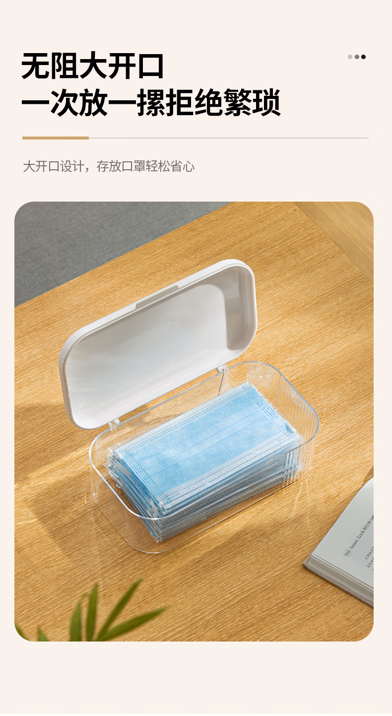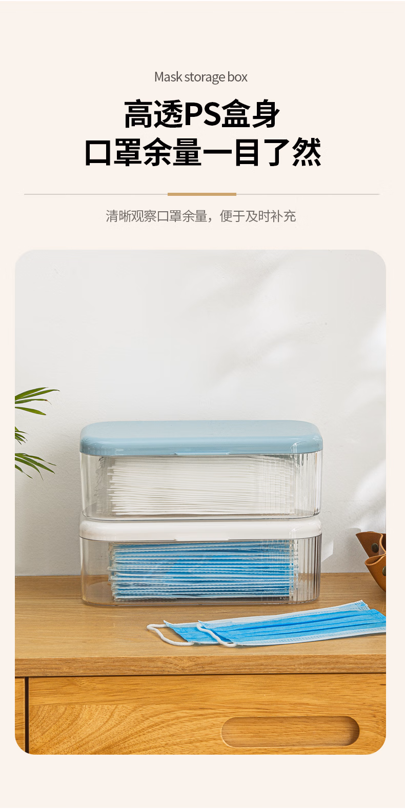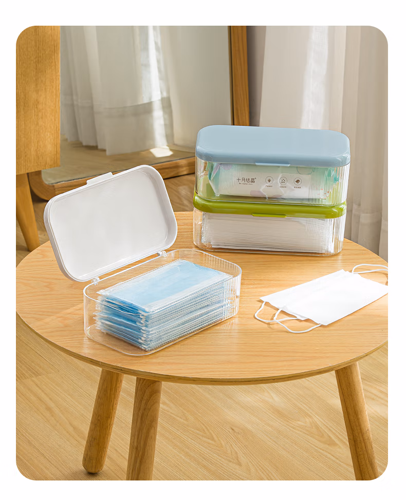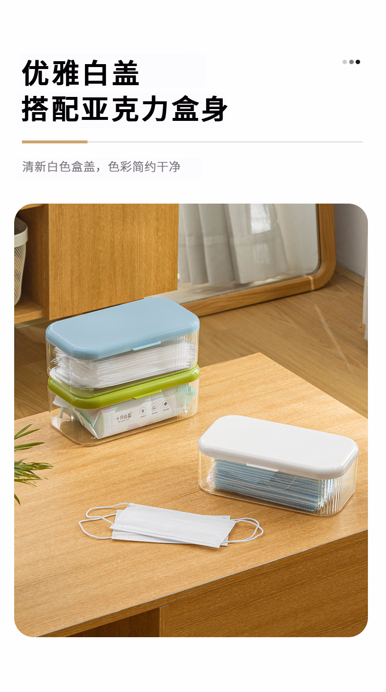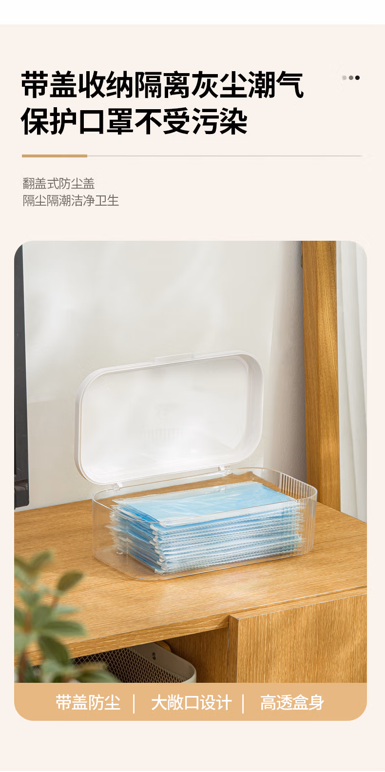 纳川(NC)口罩收纳盒带盖防尘纸巾盒桌面收纳盒透明带弹簧大容量车载便携湿巾密封收纳杂物储物盒透明