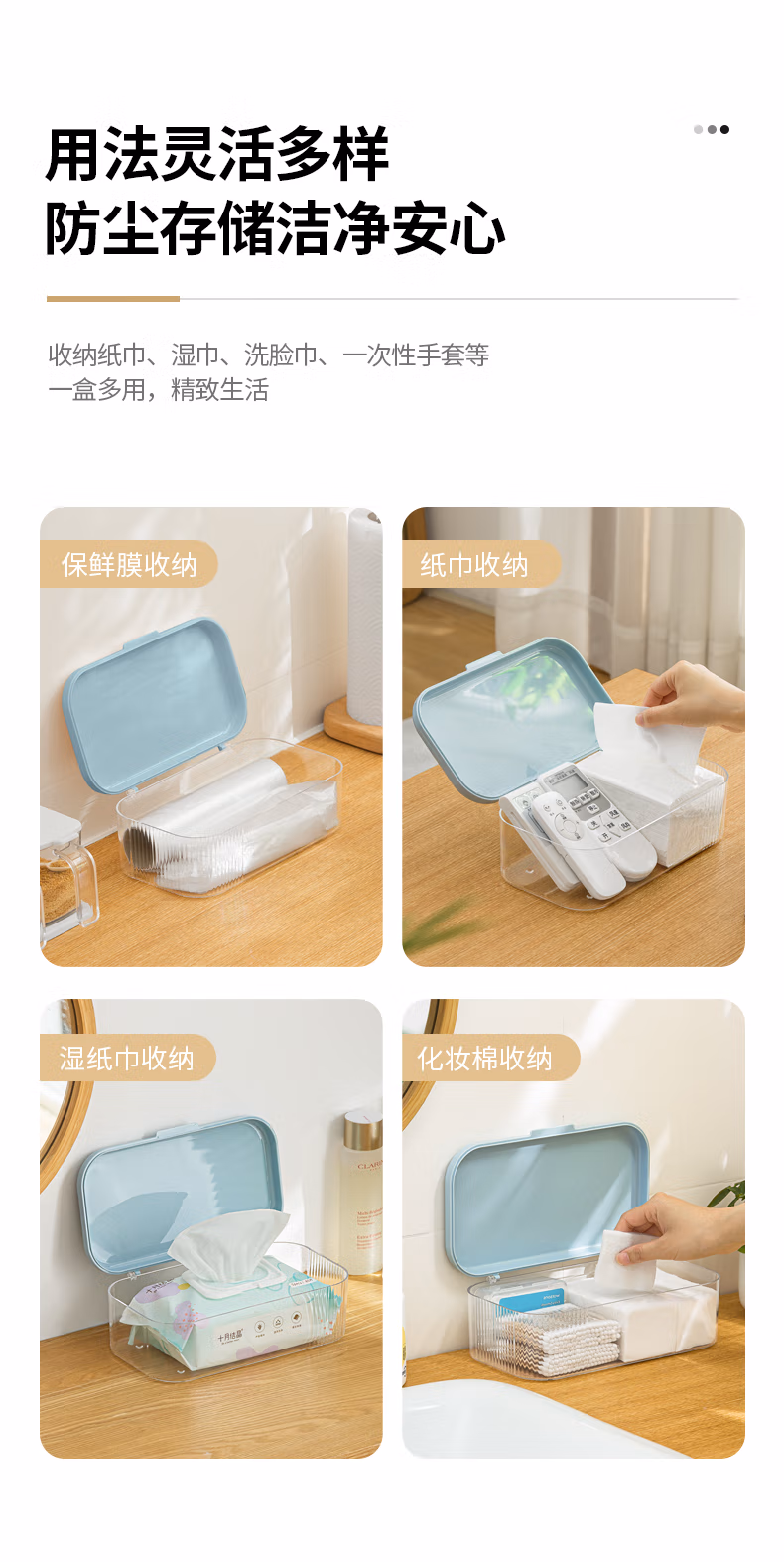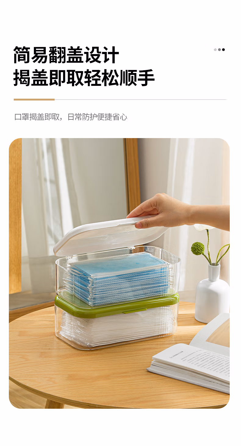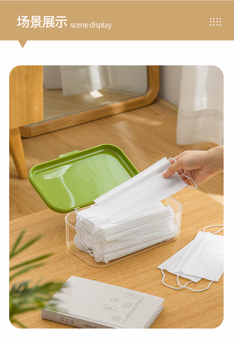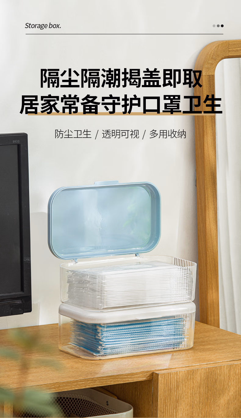 纳川(NC)口罩收纳盒带盖防尘纸巾盒桌面收纳盒透明带弹簧大容量车载便携湿巾密封收纳杂物储物盒透明
