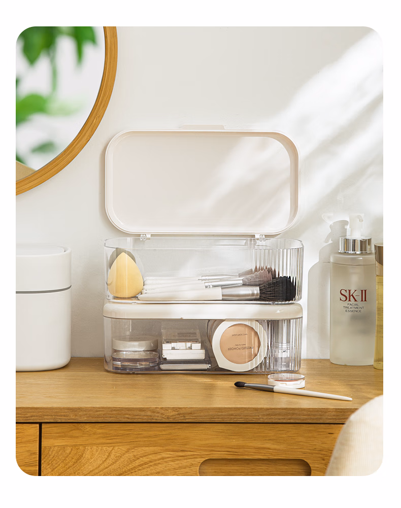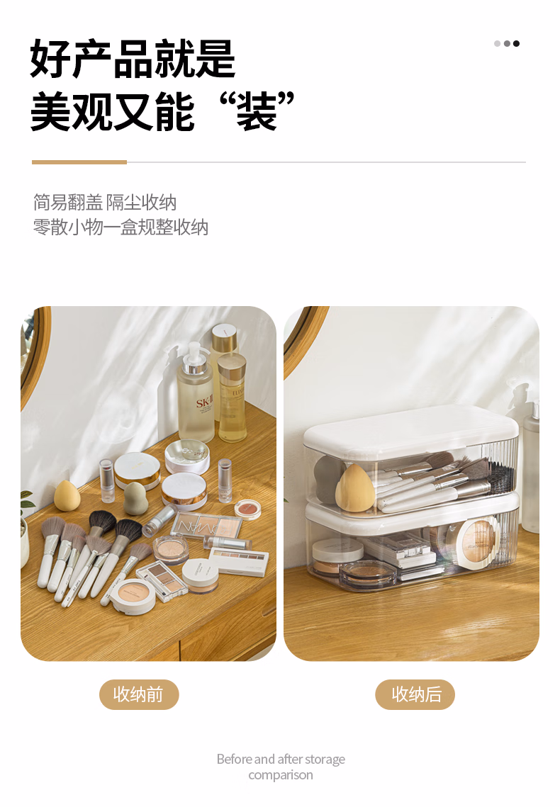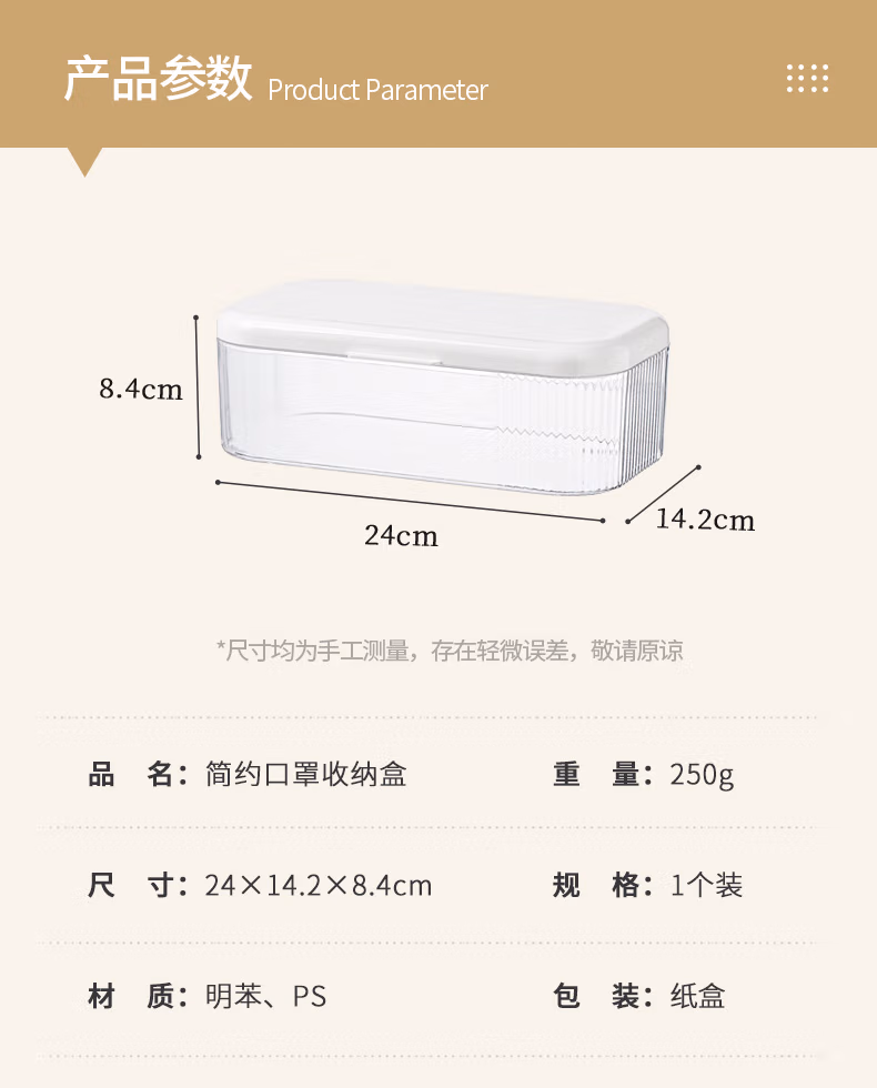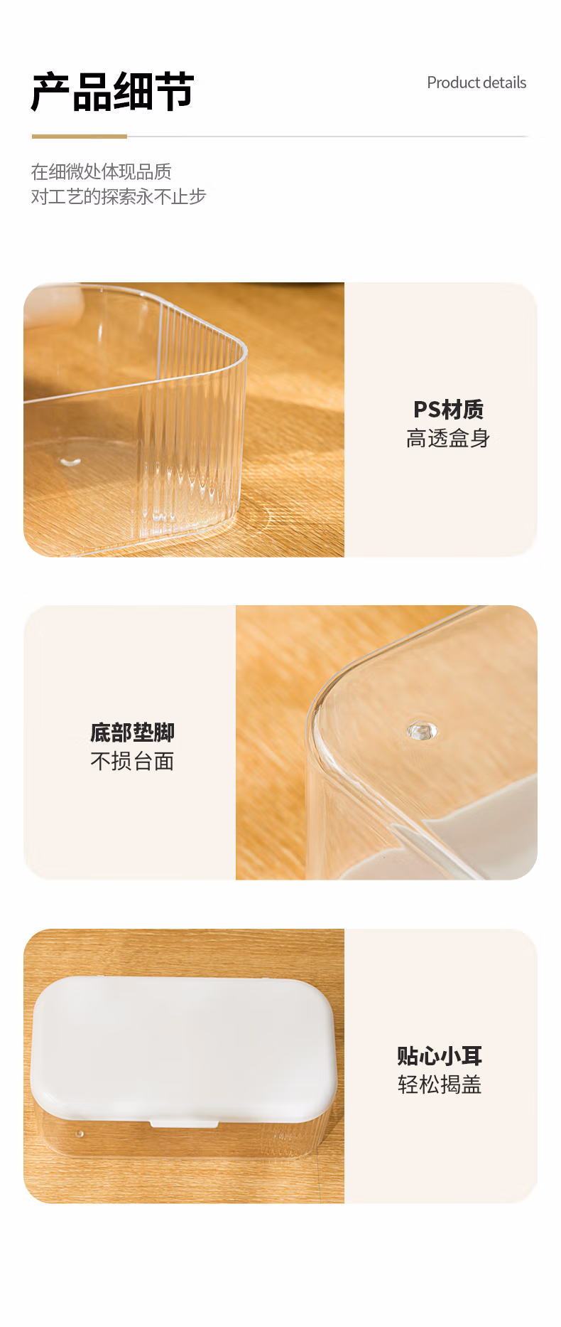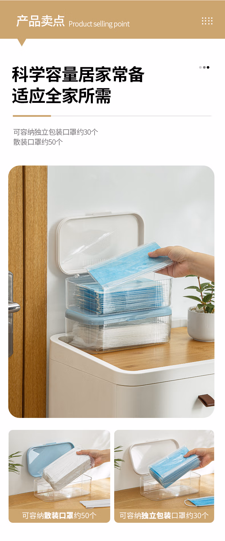 纳川(NC)口罩收纳盒带盖防尘纸巾盒桌面收纳盒透明带弹簧大容量车载便携湿巾密封收纳杂物储物盒透明