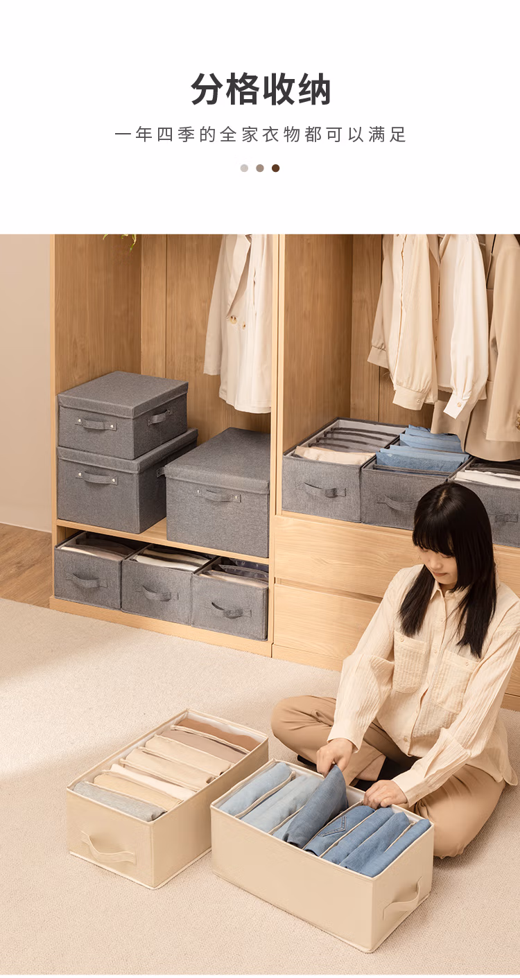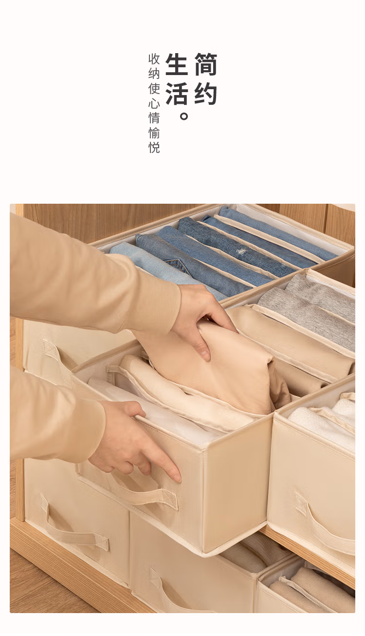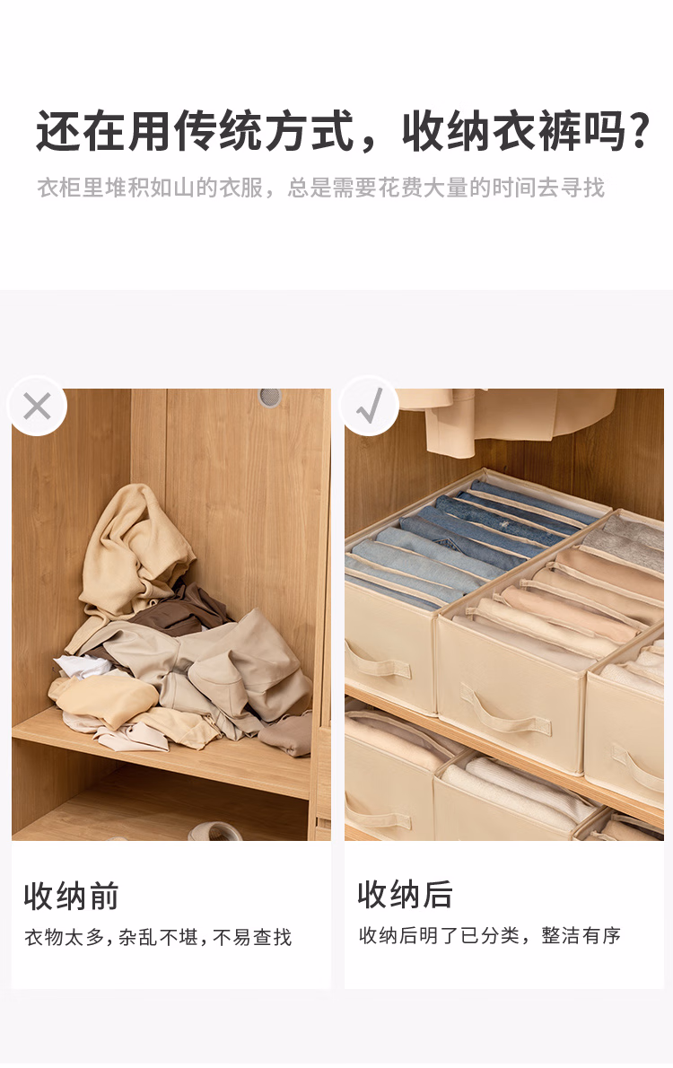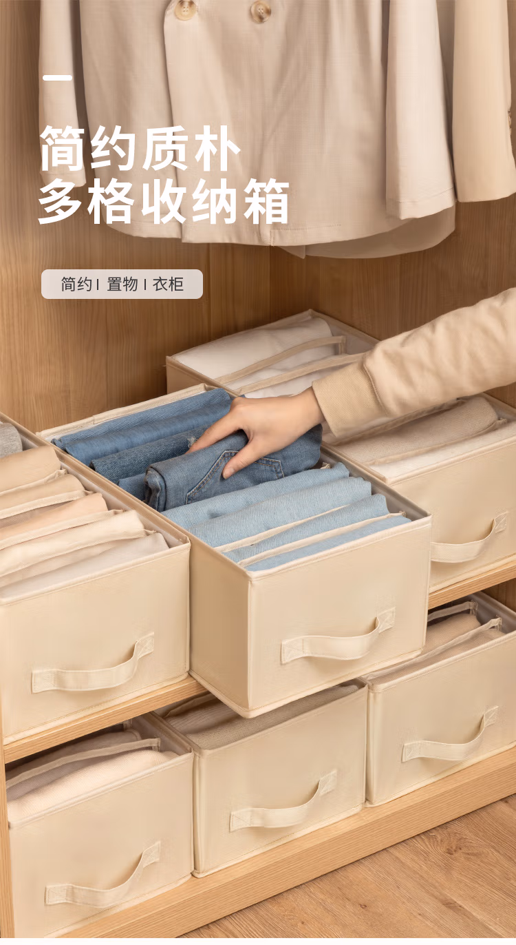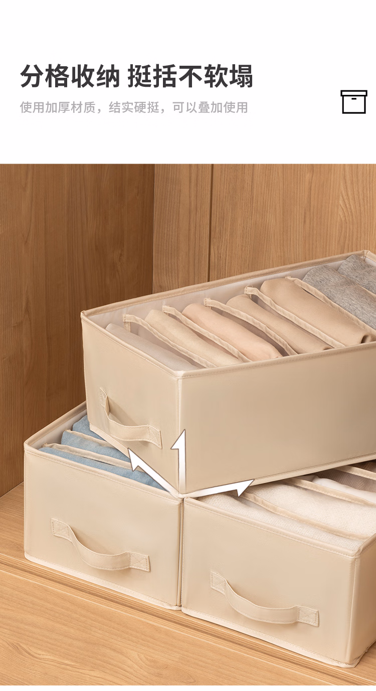EACHY衣服裤子收纳盒子衣柜收纳神器分隔牛仔裤分格整理收纳箱套装米色-9格【格宽5 收纳衬衫/T恤/打底衫】