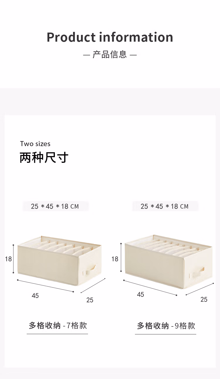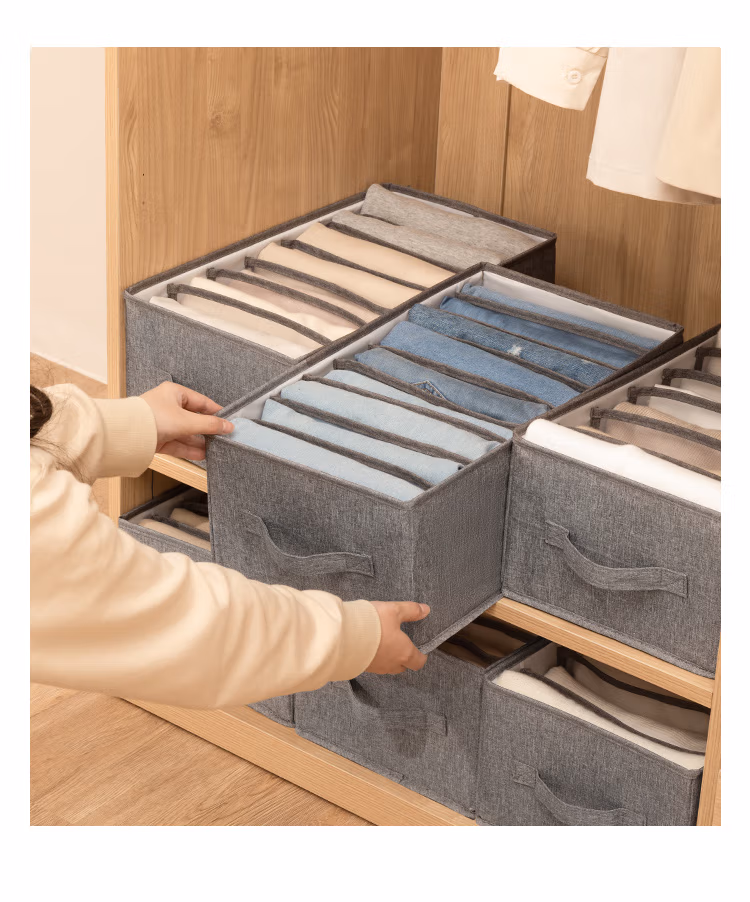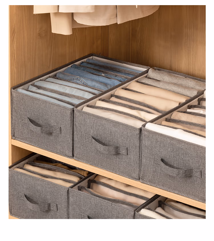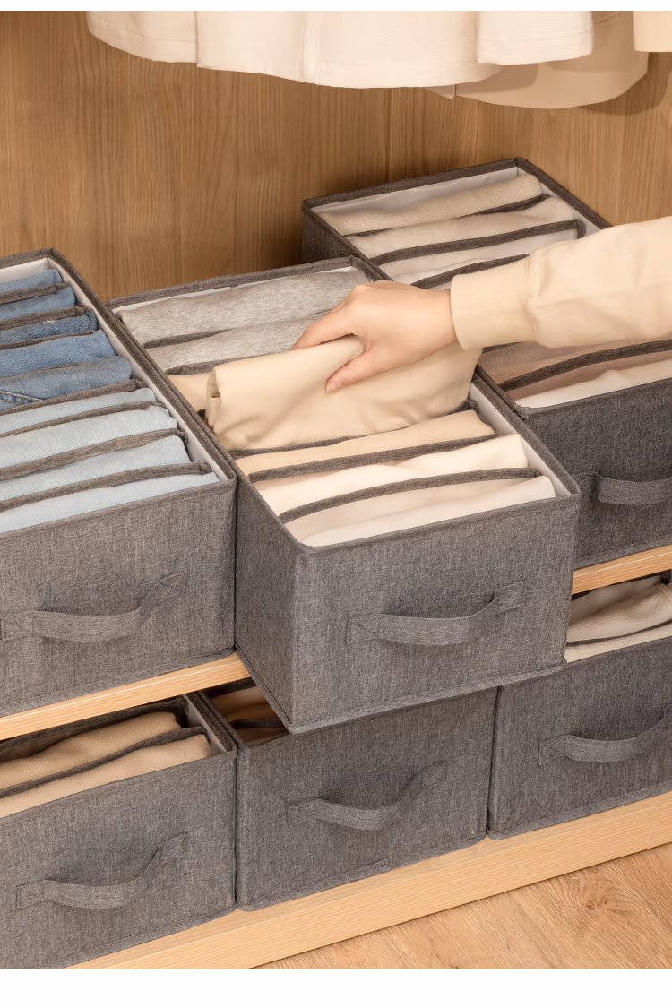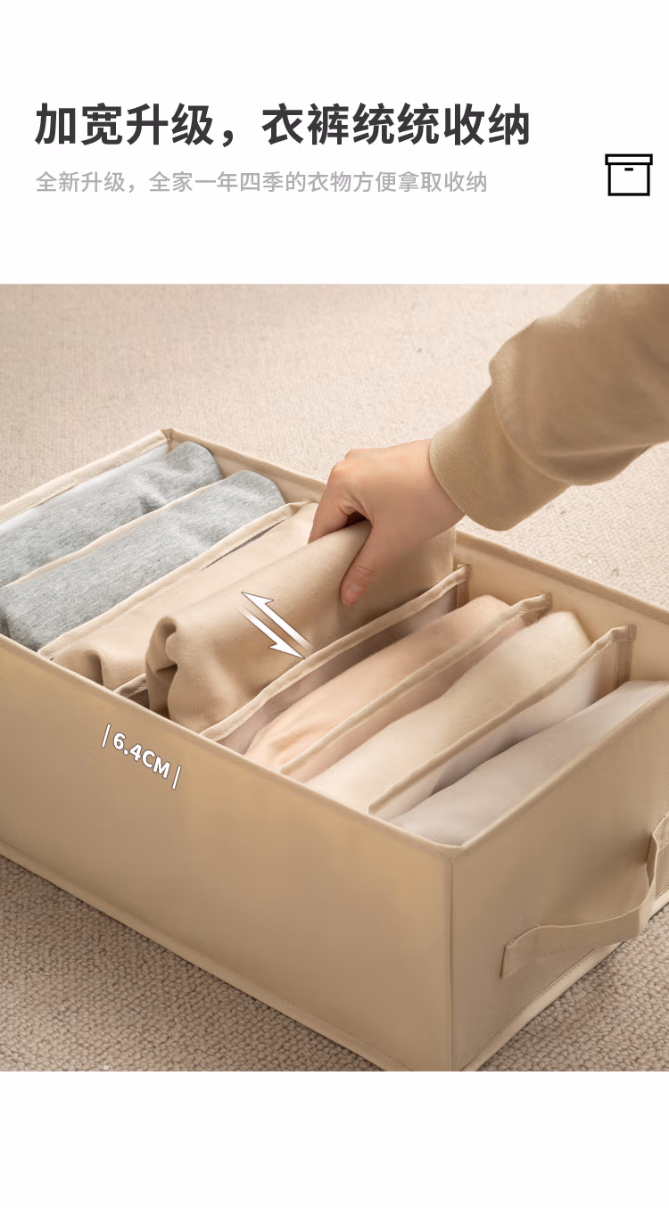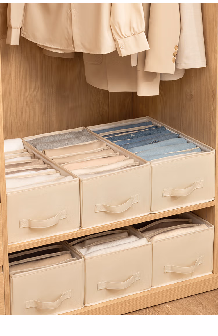 EACHY衣服裤子收纳盒子衣柜收纳神器分隔牛仔裤分格整理收纳箱套装米色-9格【格宽5 收纳衬衫/T恤/打底衫】