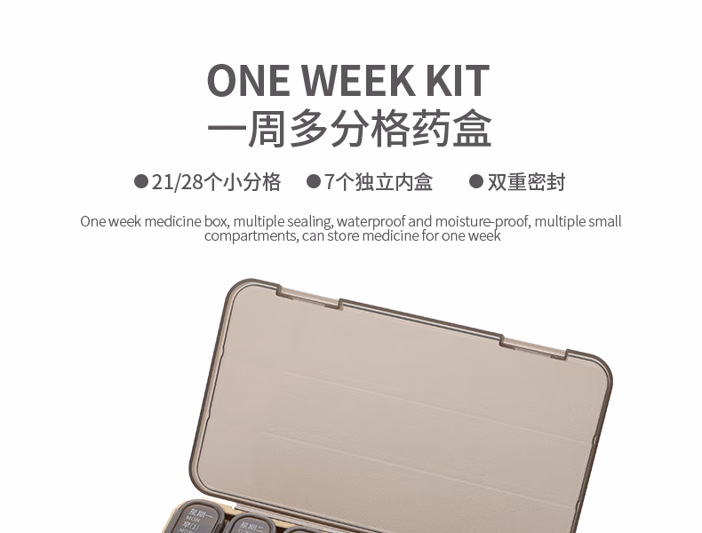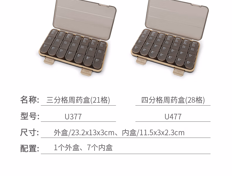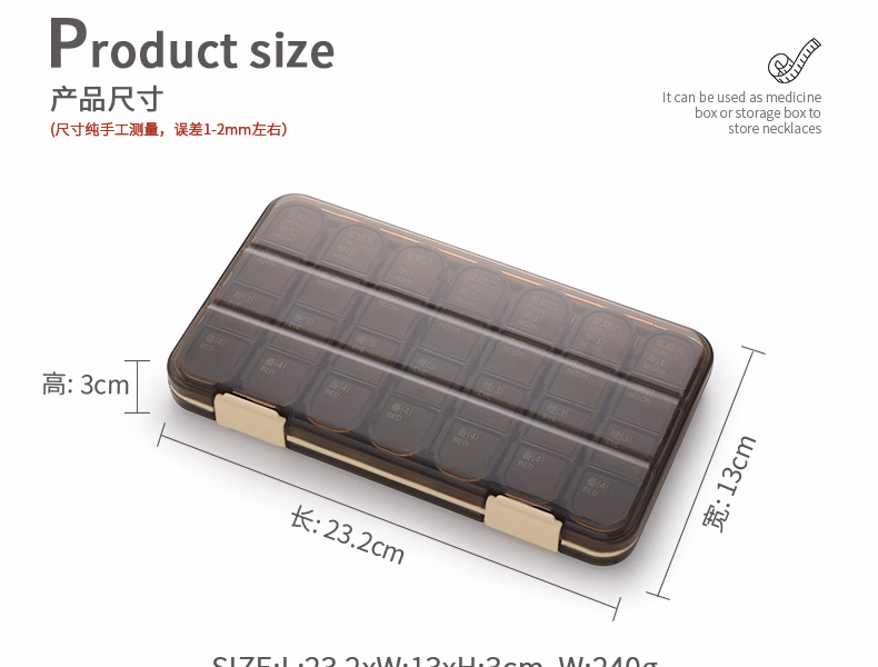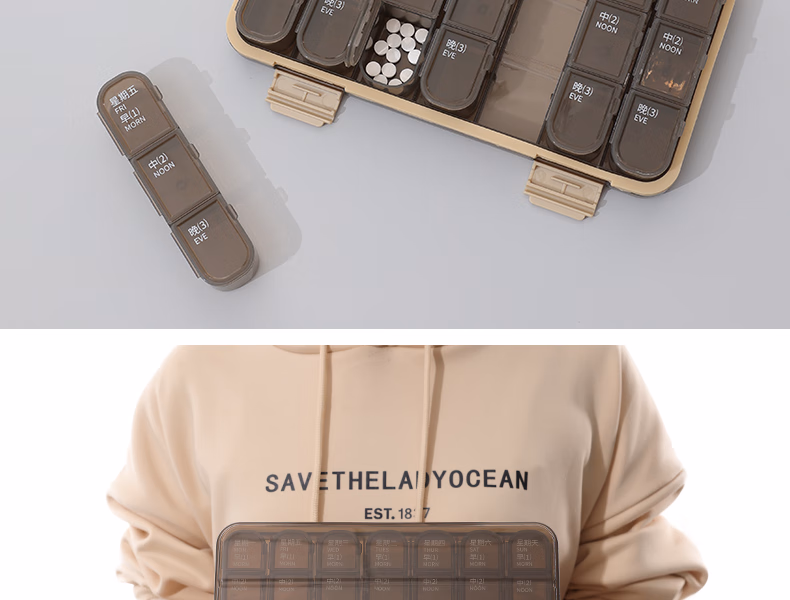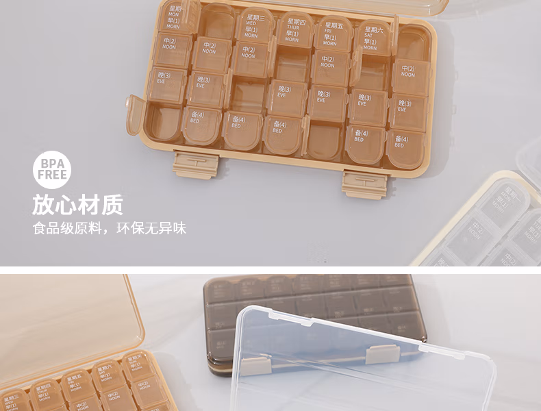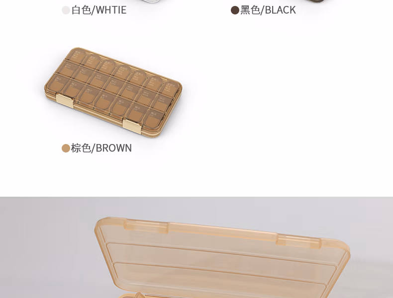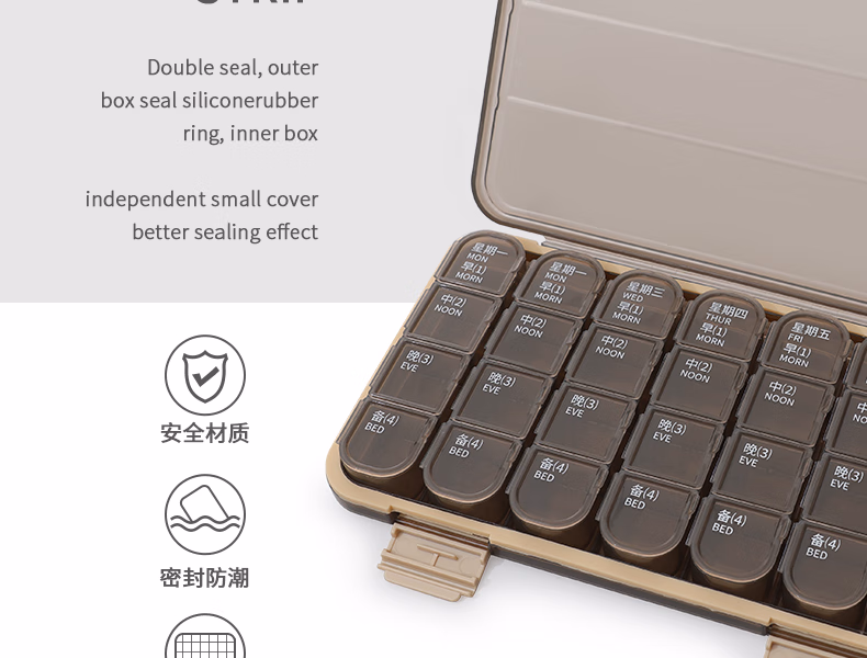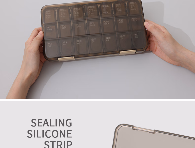 维简Vilscijon 大格分装药盒便携式一周七天旅行随身药品收纳盒密封防潮多功能 21分格大容量黑色