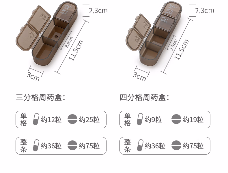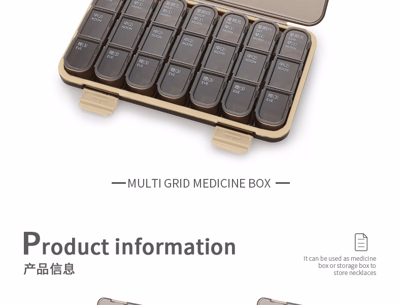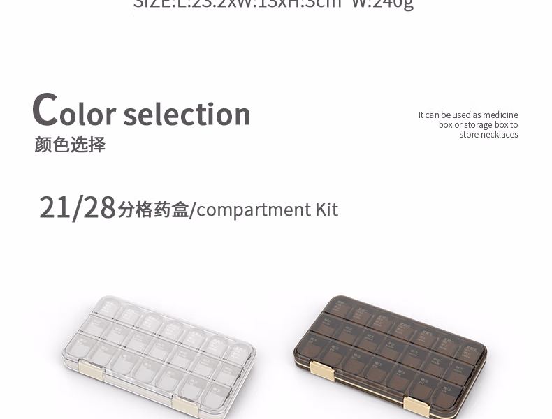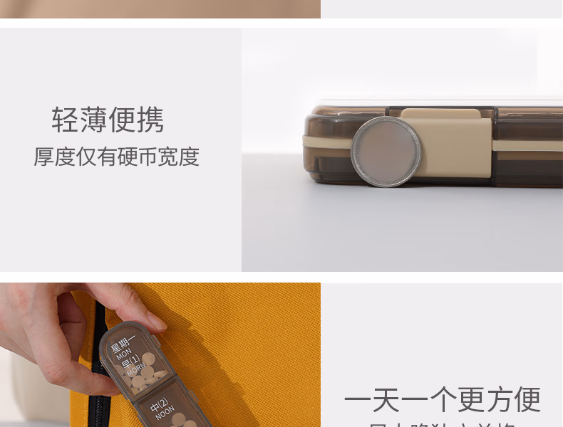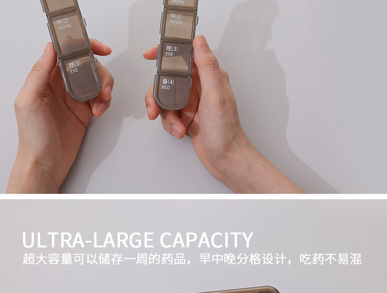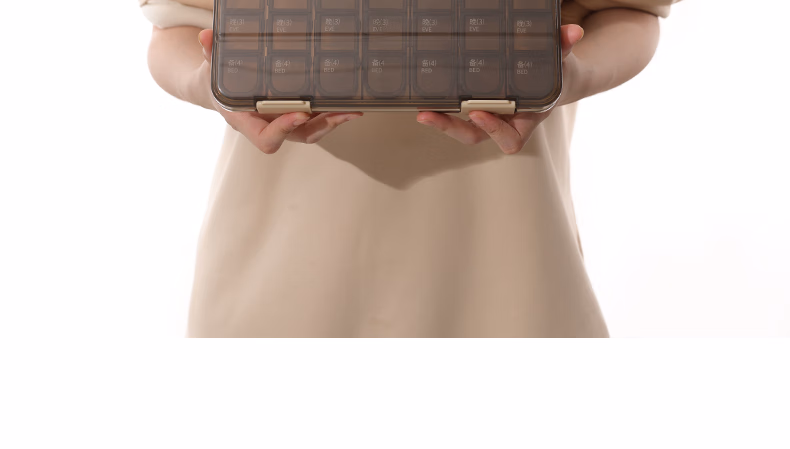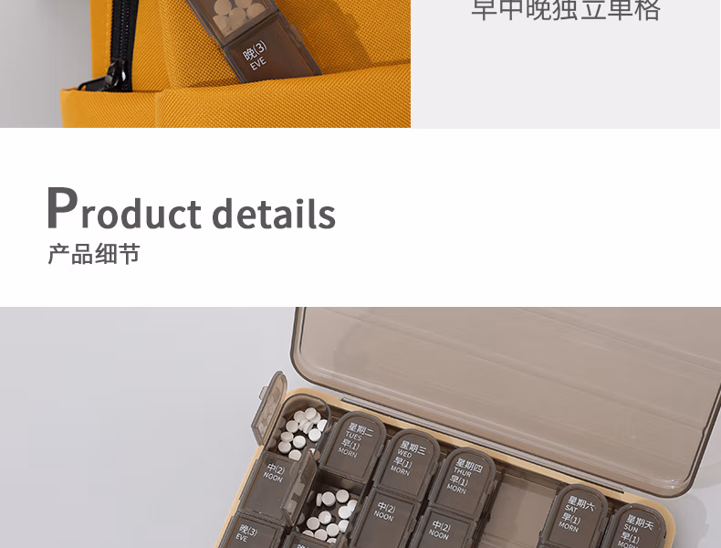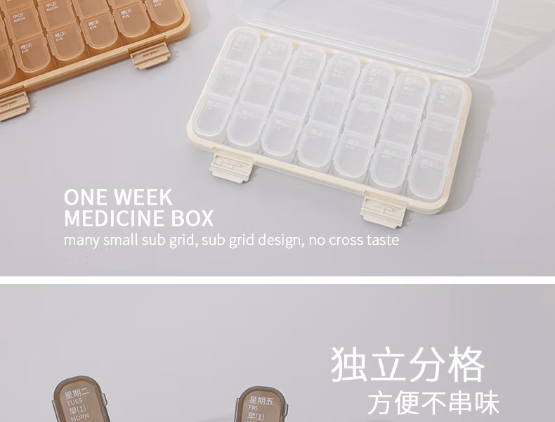 维简Vilscijon 大格分装药盒便携式一周七天旅行随身药品收纳盒密封防潮多功能 21分格大容量黑色