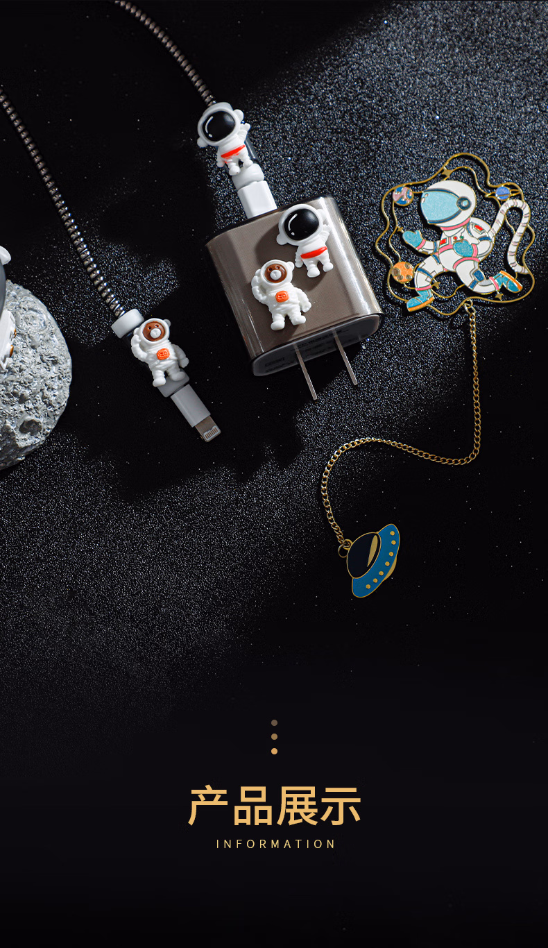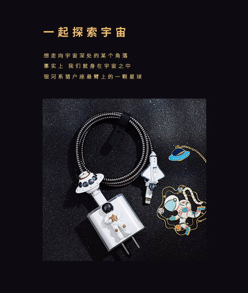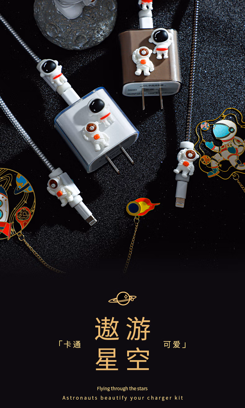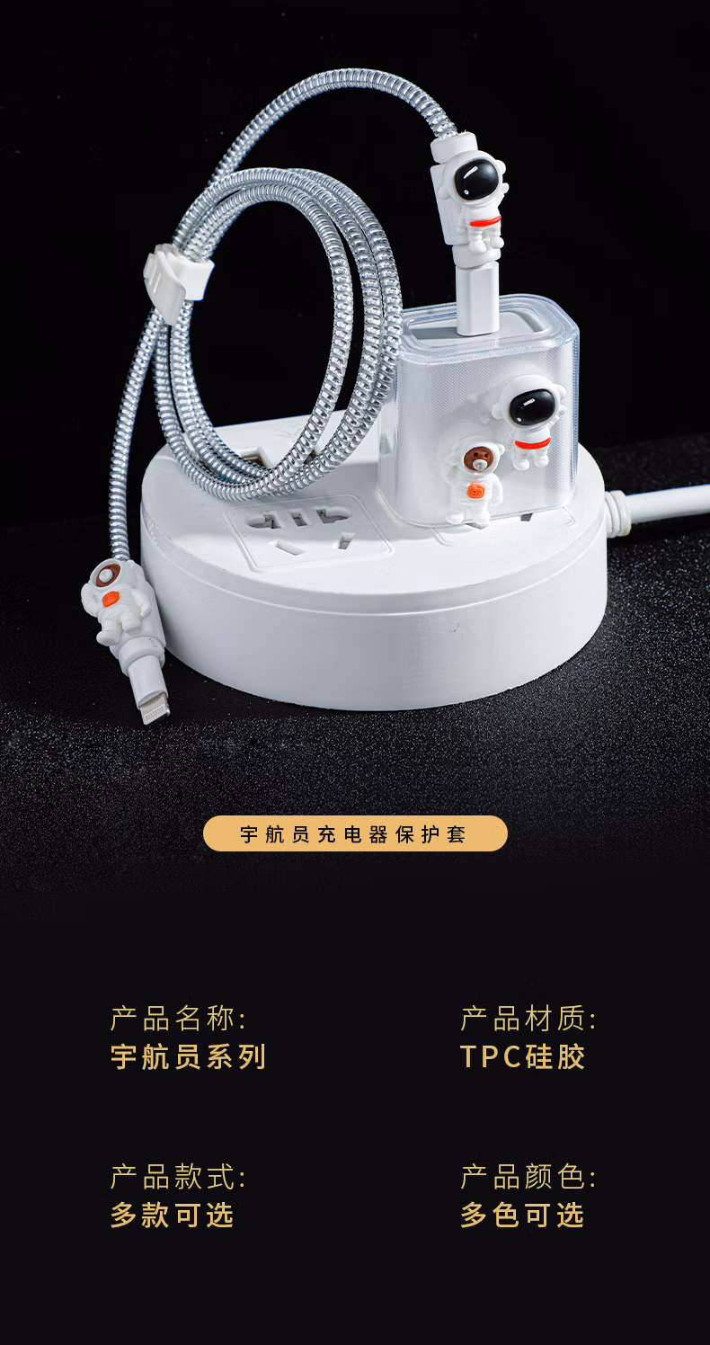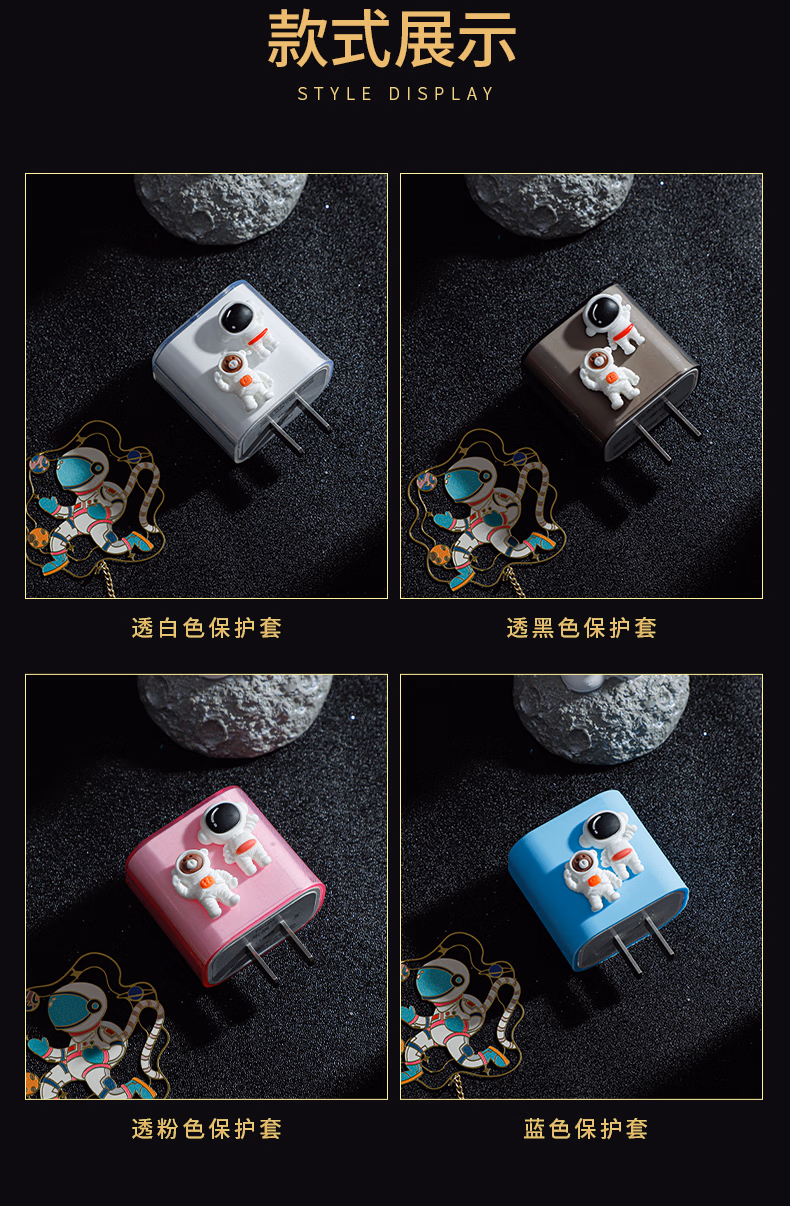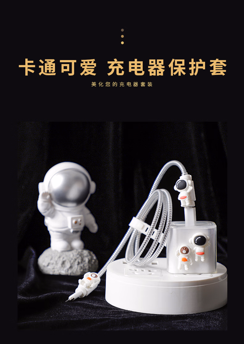 辰至尚品宇航员充电器保护套苹果20w数据线保护绳iPhone14 13 12 ProMax手机绕线 镭射银 宇航员【单壳数据线】