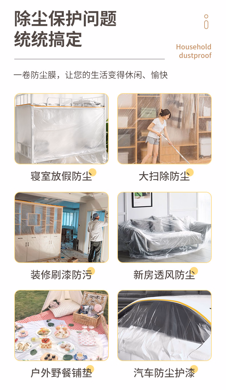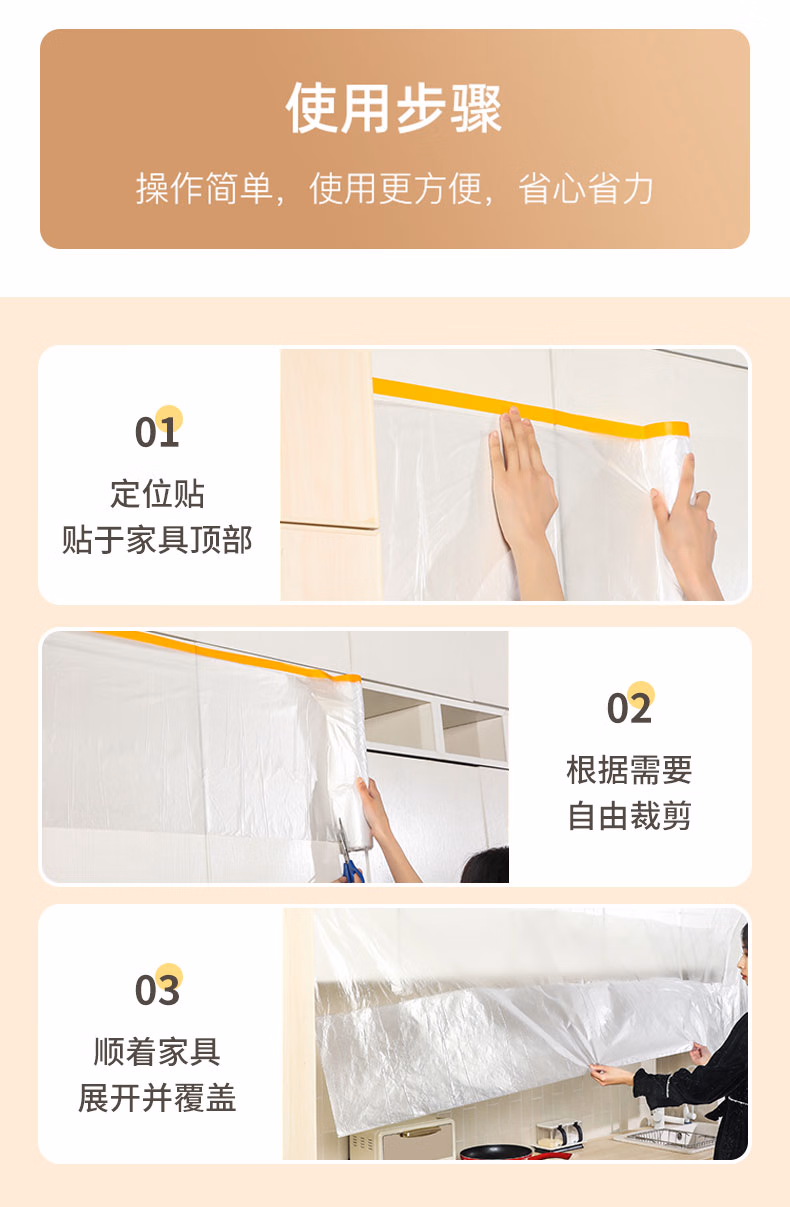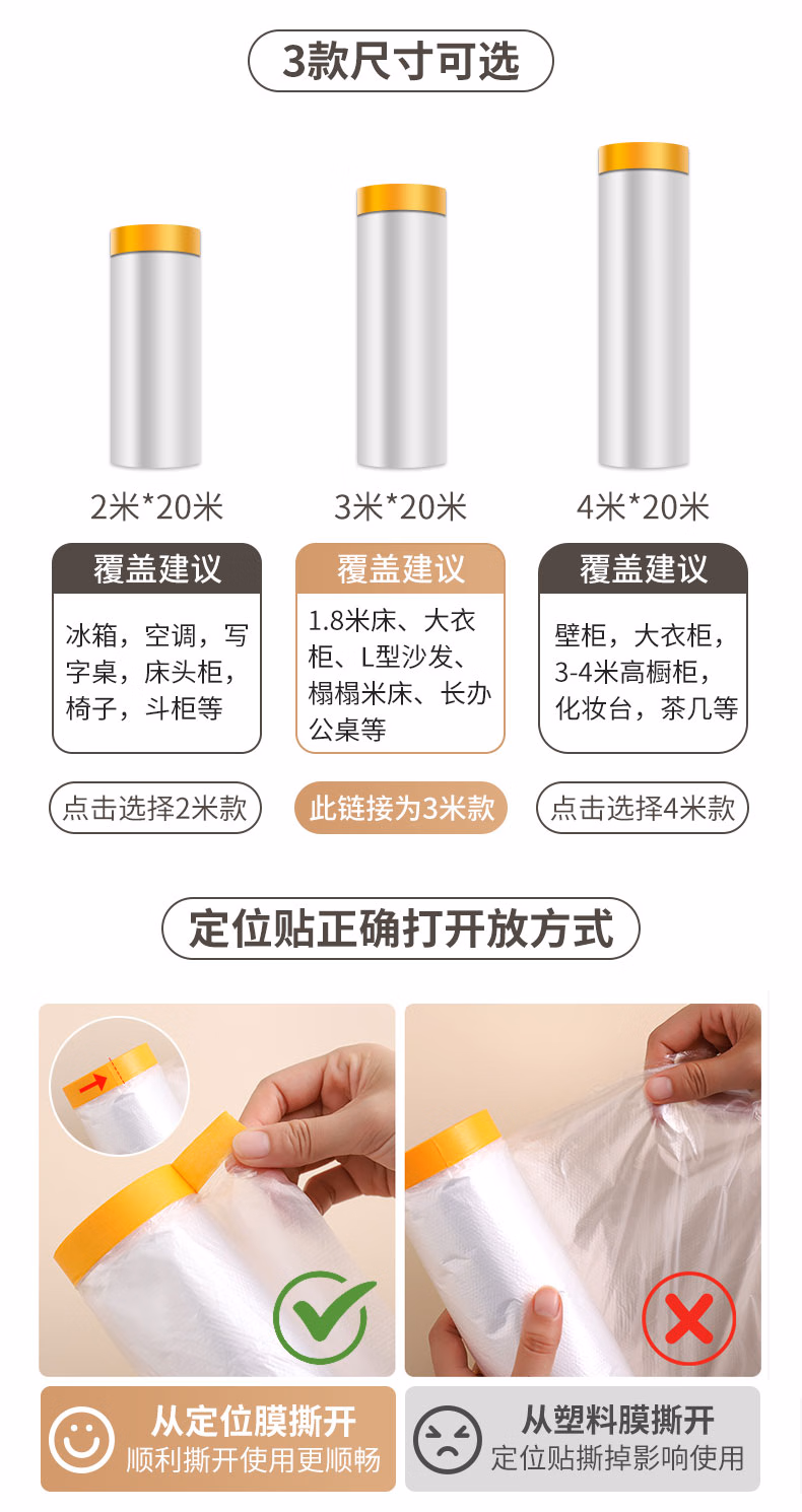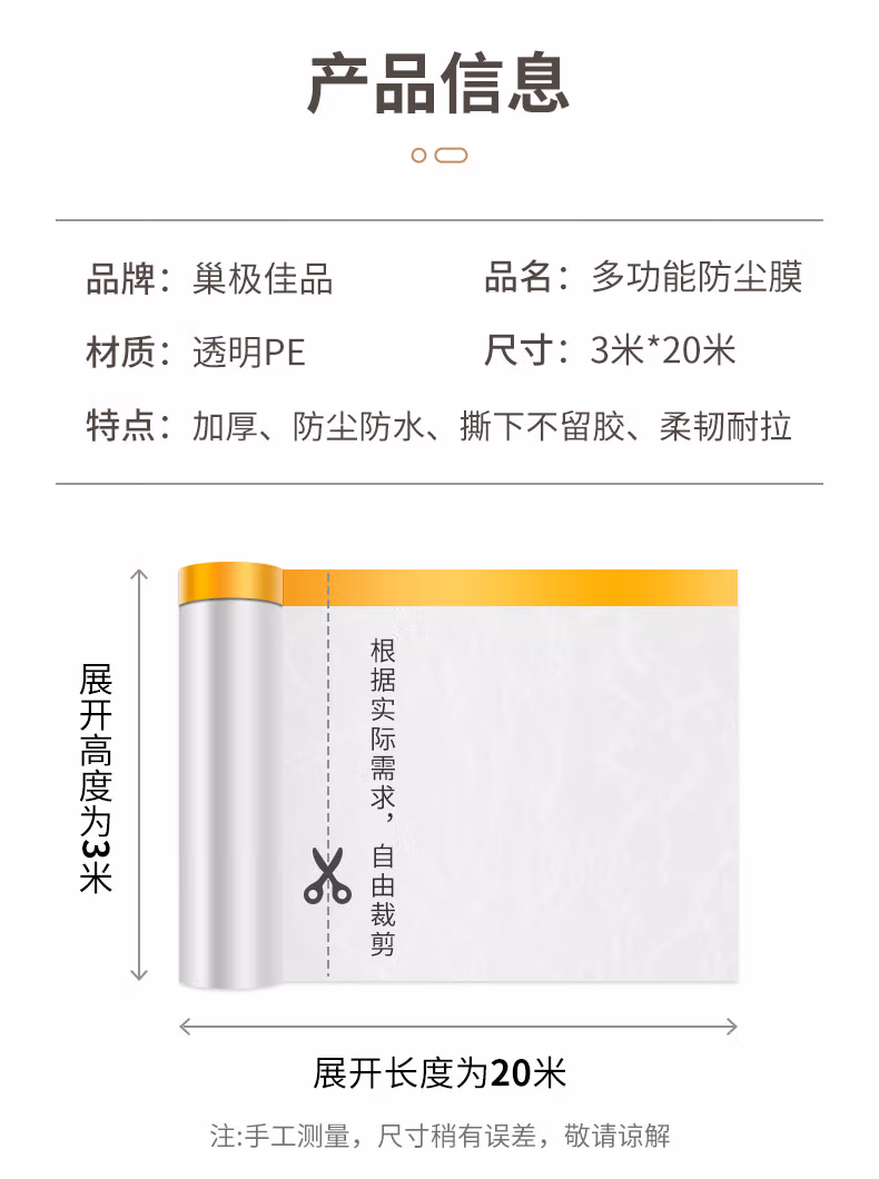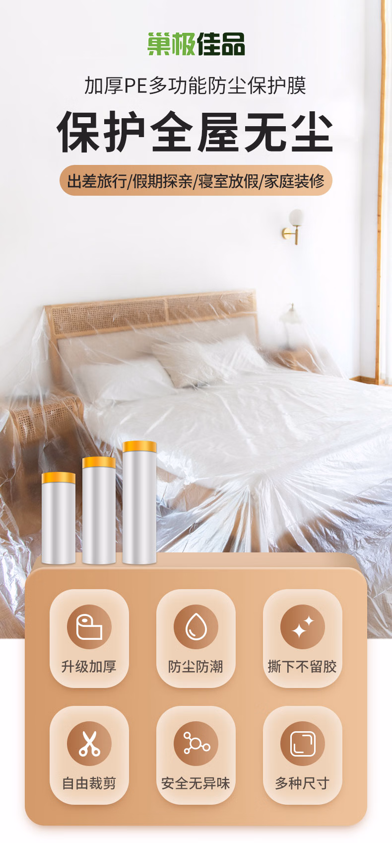 巢极佳品一次性防尘膜[20*3米]加厚装修防尘布家具保护膜塑料薄膜床挡灰盖布沙发遮盖防灰尘罩遮灰尘塑料布