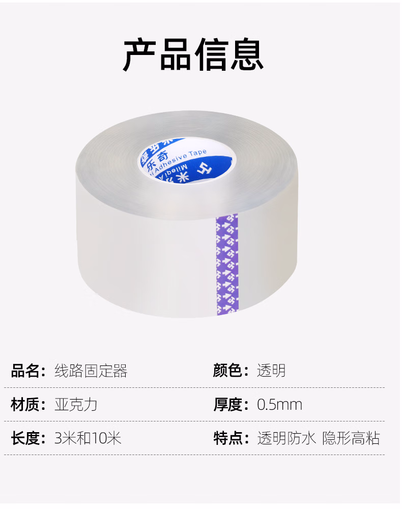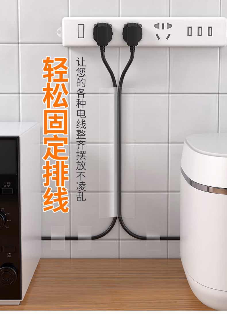 米乐奇网线走线神器理线卡子无痕电线固定器自粘墙面卡扣排插数据线收纳 电线收纳 30mm宽*3米长【0.5mm厚】